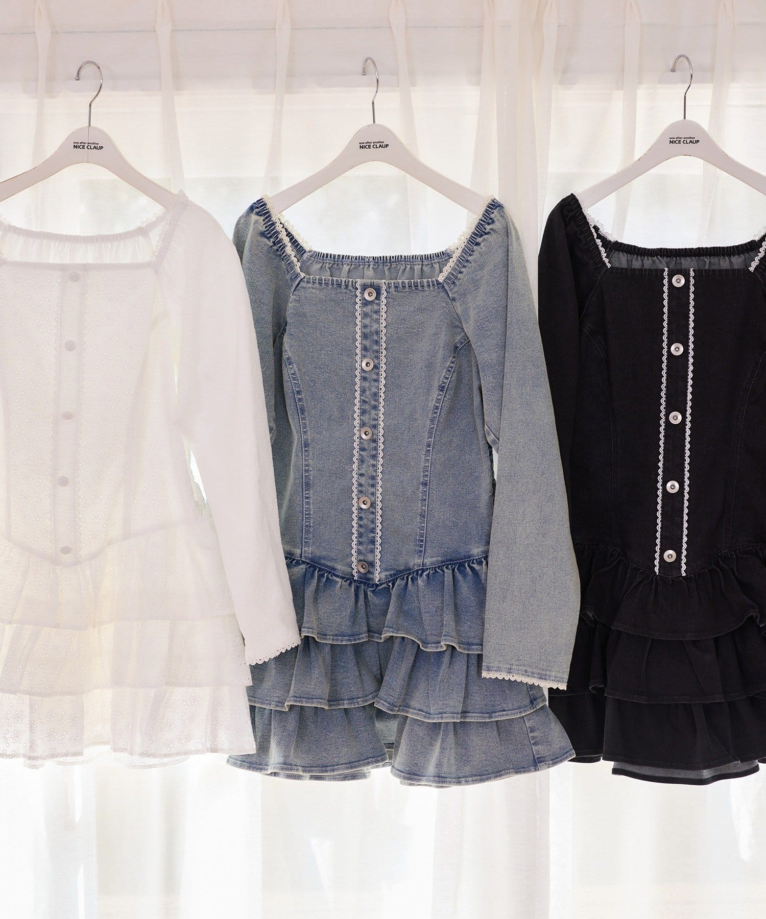 one after another NICE CLAUP(ワンアフターアナザー ナイスクラップ) 【Denim Collection】ティアードミニワンピ