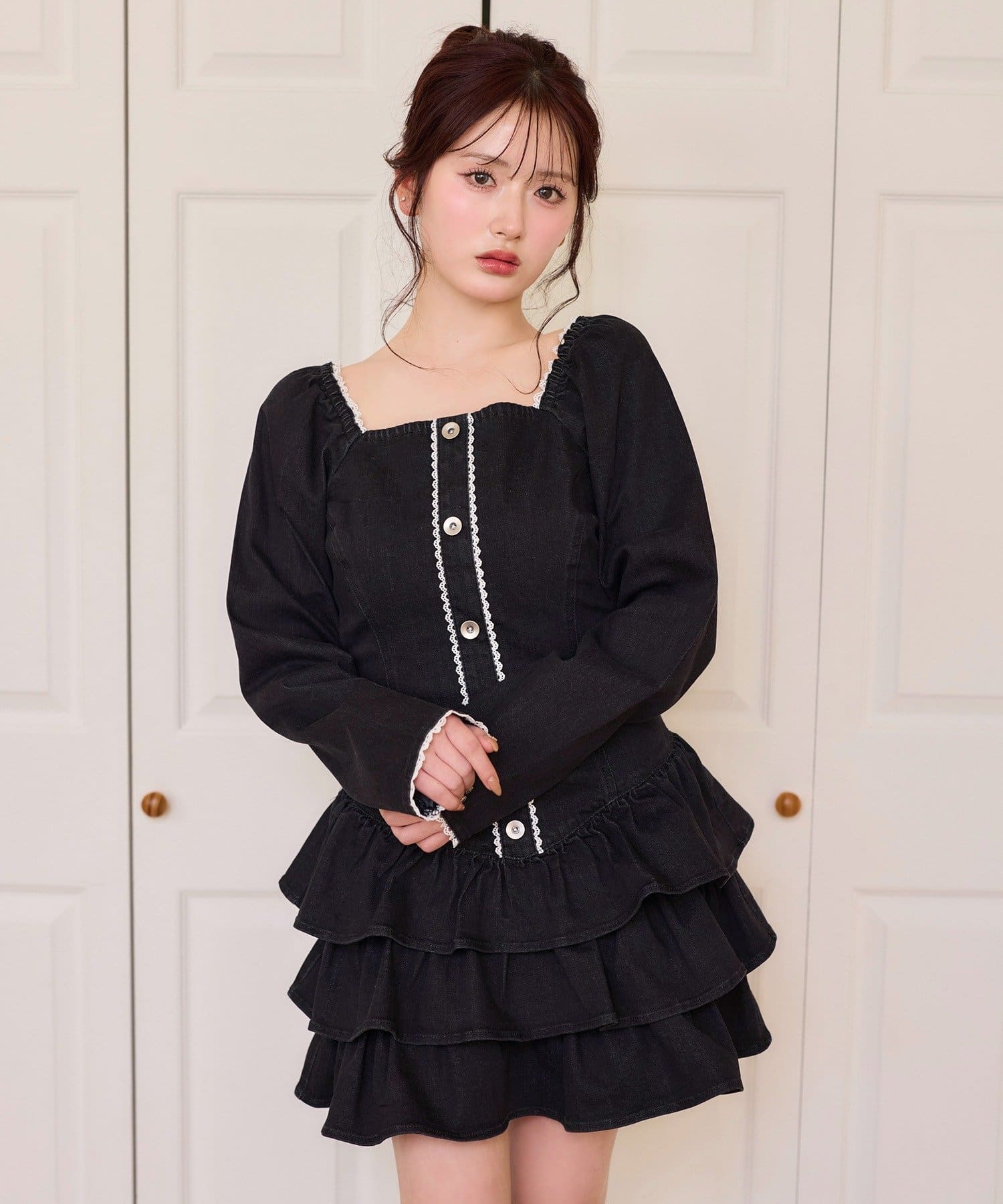 【Denim Collection】ティアードミニワンピ