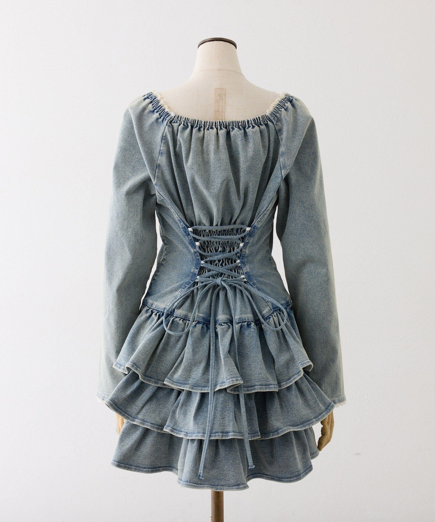 後ろはレースアップ仕様で、シルエットをきれいに見せつつさりげなくスタイルアップ♡