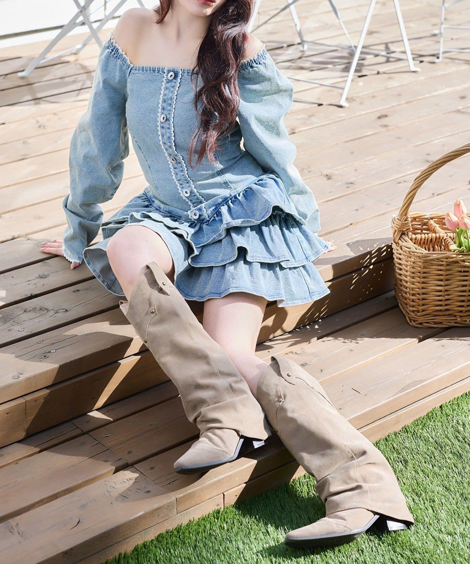 ロングブーツを合わせて王道ガーリーコーデに♡