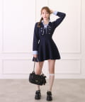 きちんと感のあるシャツデザインと、ふんわり広がるスカート部分のバランスが可愛い1枚です。