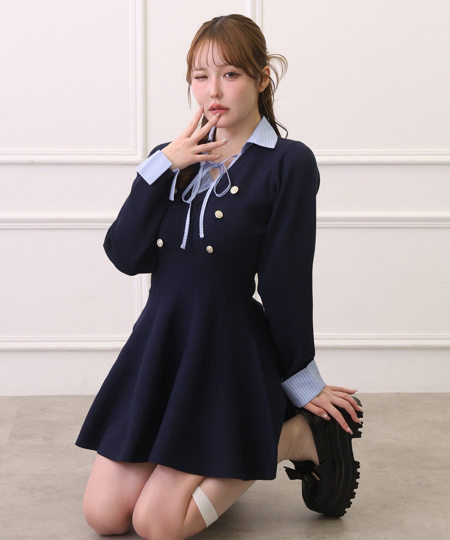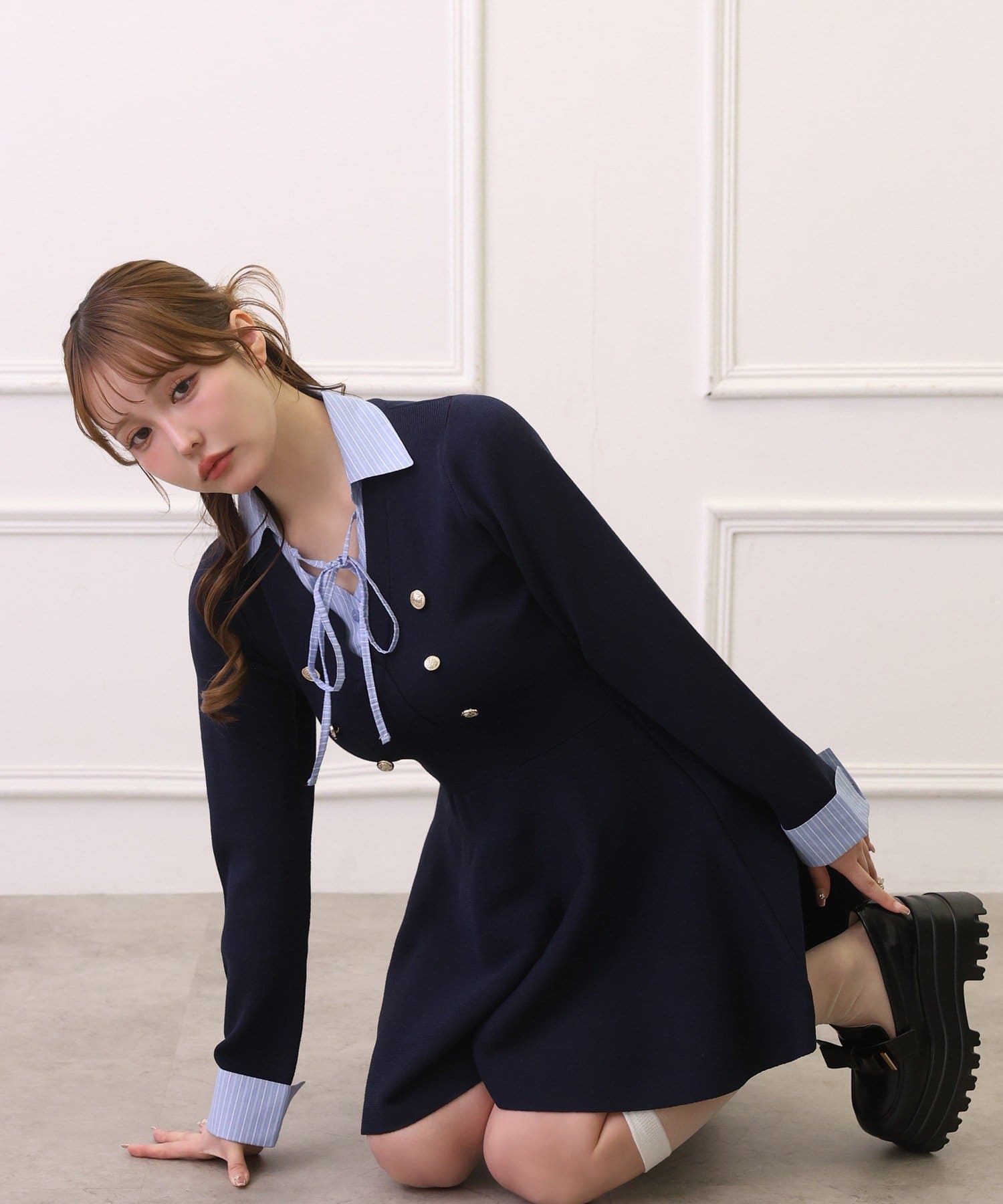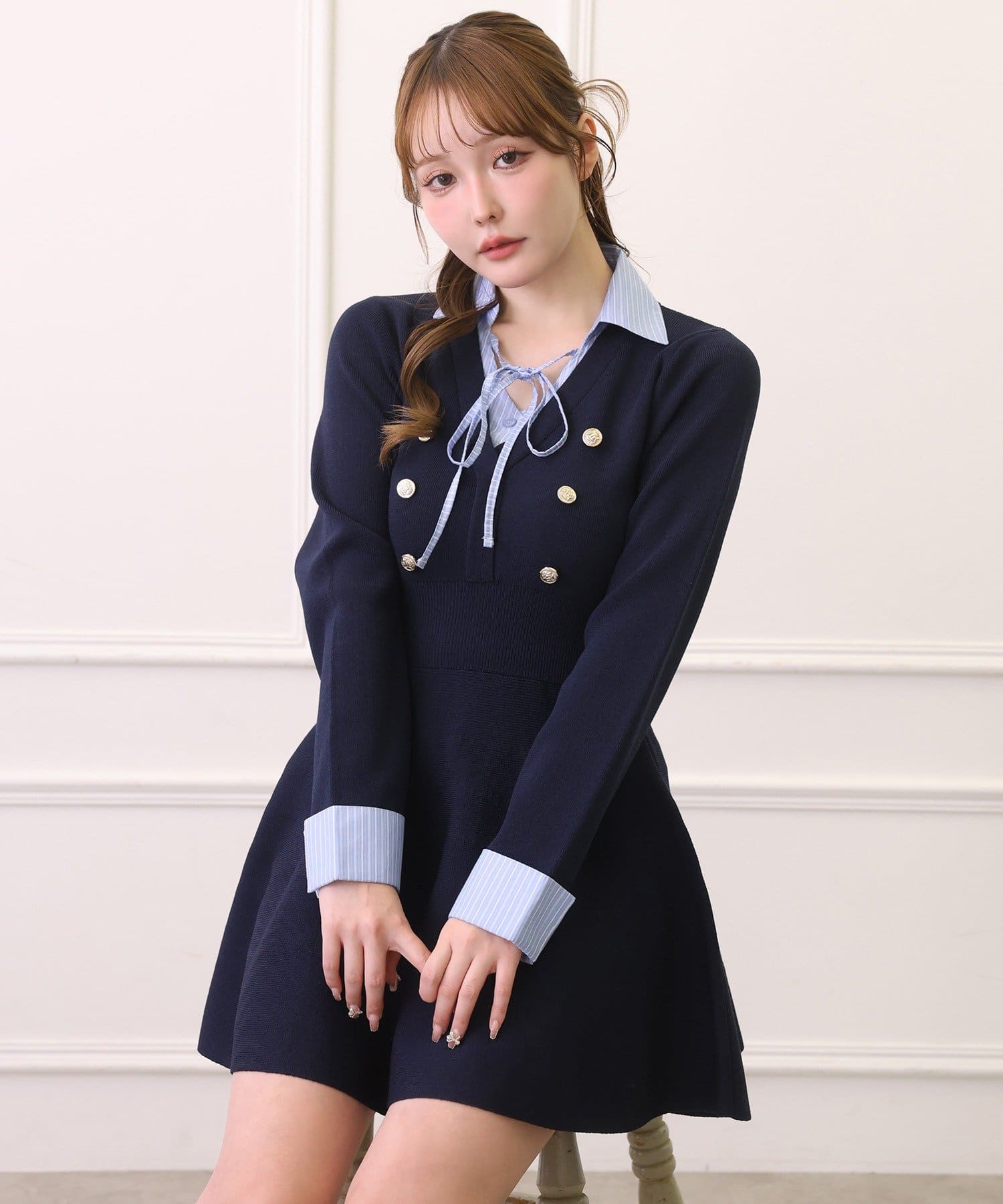 ウエスト切替でスタイルアップが叶うシャツドッキングミニワンピース♡