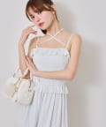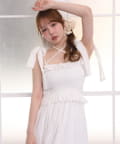 肩リボンとシャーリングデザインが可愛いキャミワンピース♡