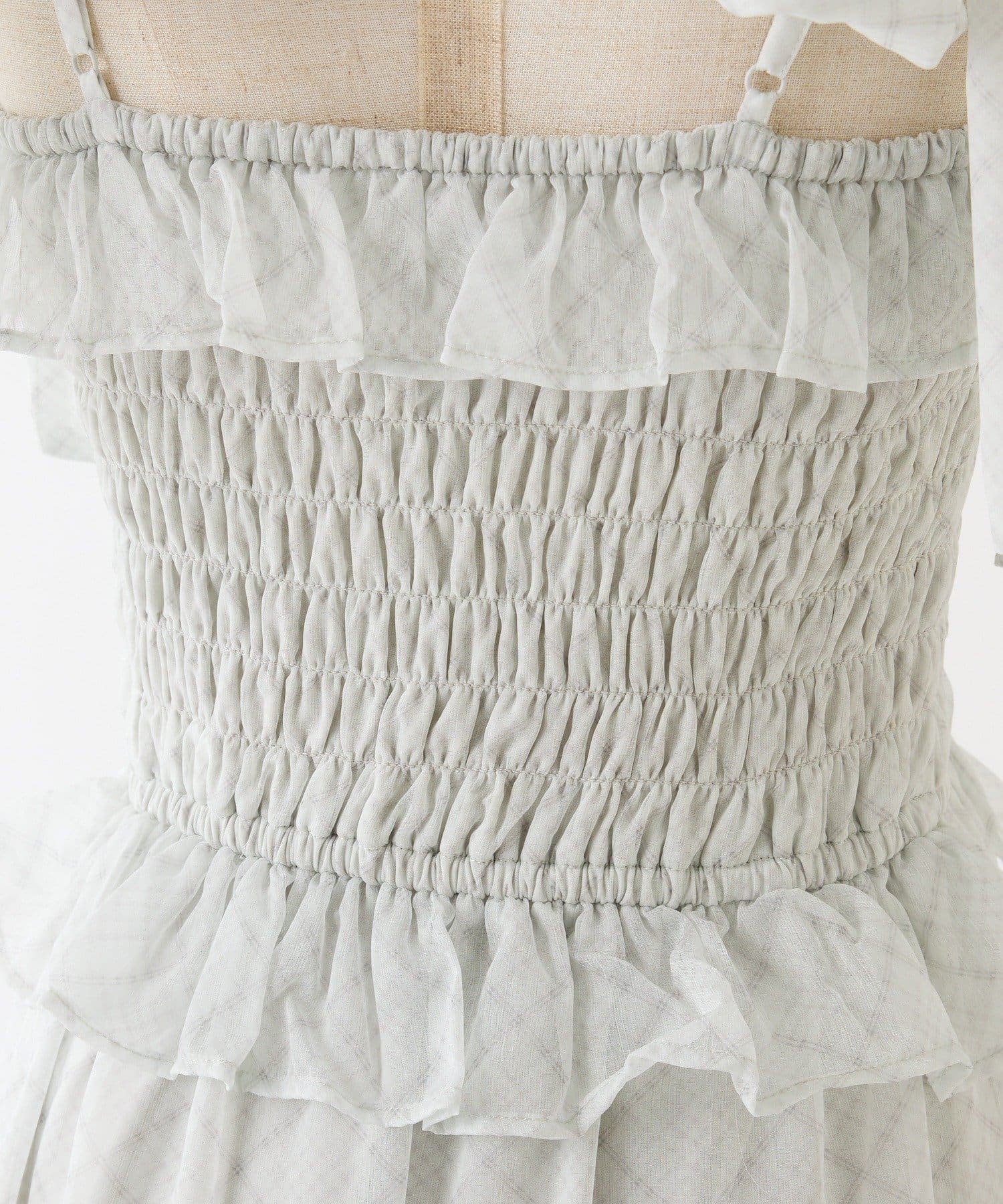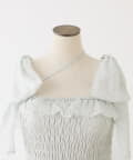 胸元はシャーリング仕様で程よくフィットし、ウエスト位置を高く見せてくれるので自然とスタイルアップが叶います。