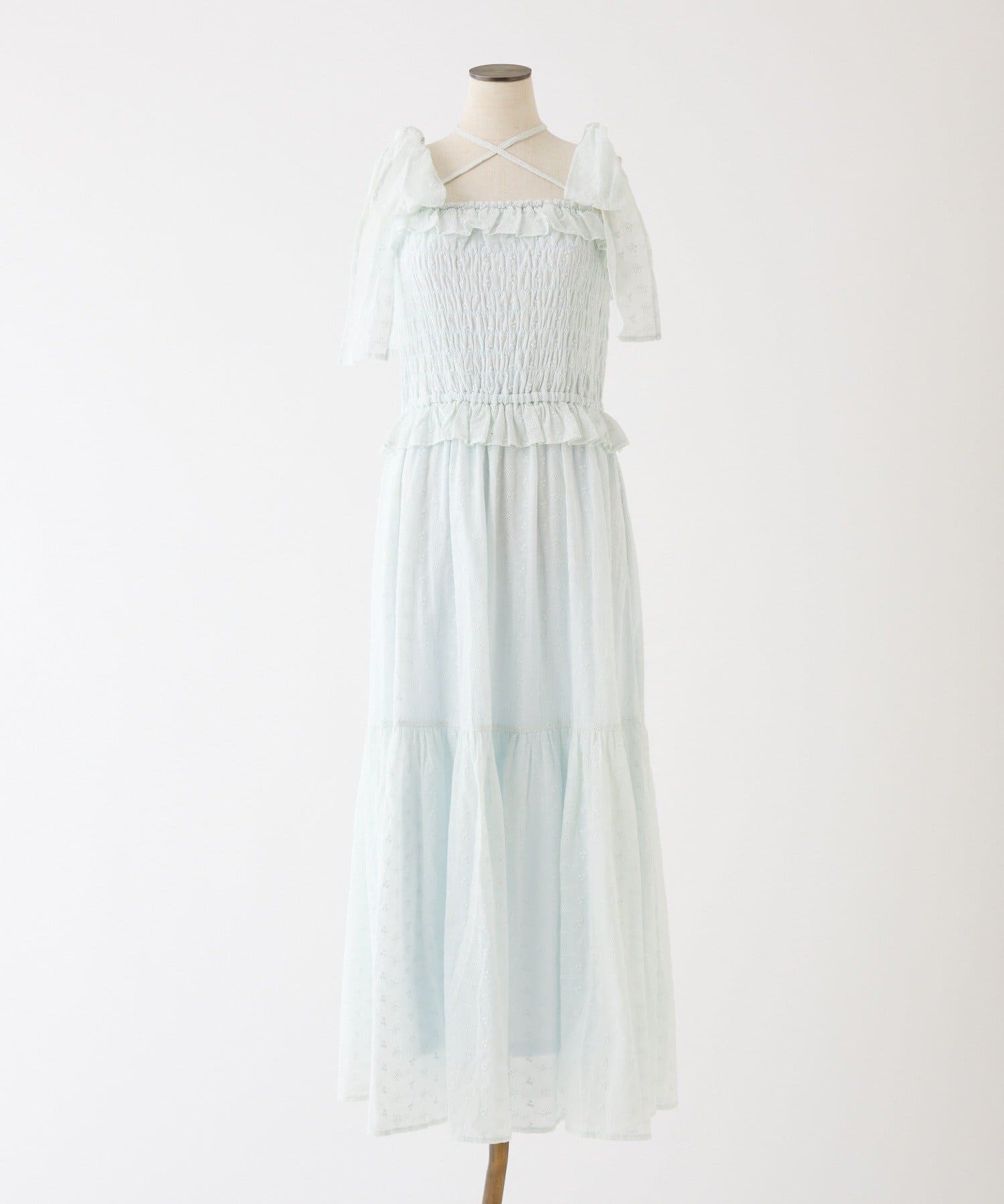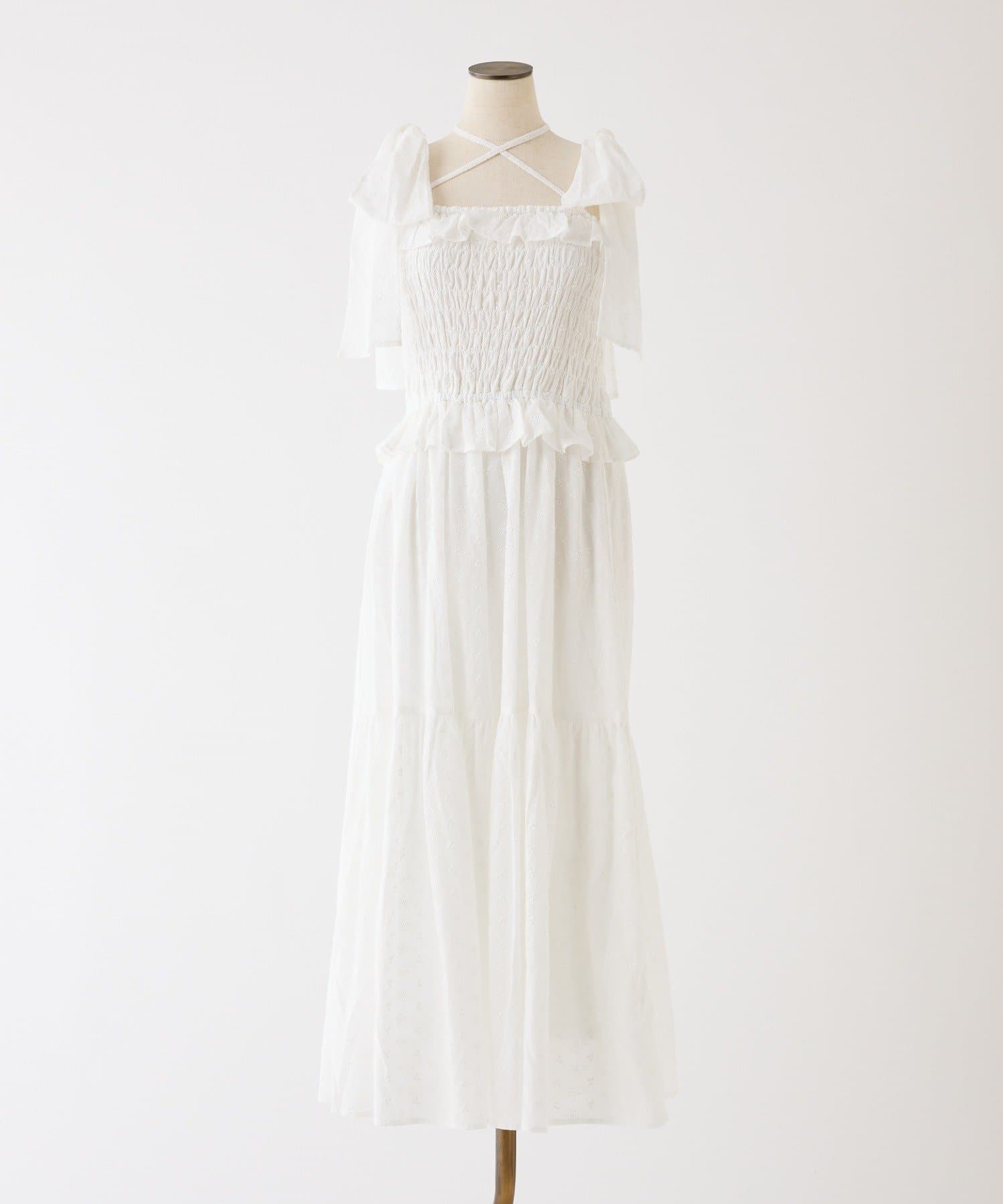 【SMサイズ展開あり】肩リボンシャーリングワンピース