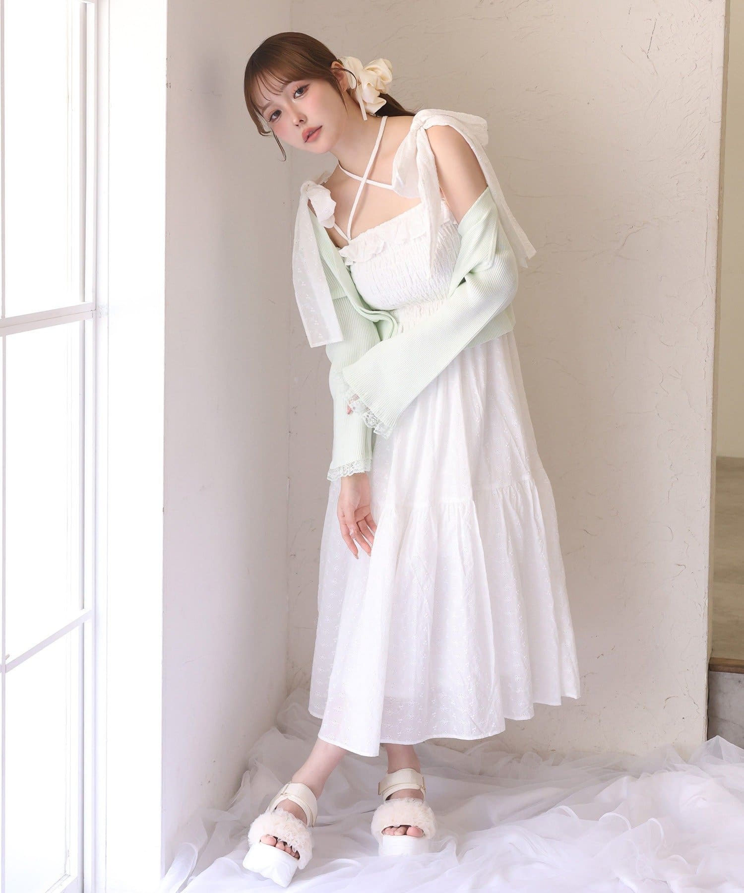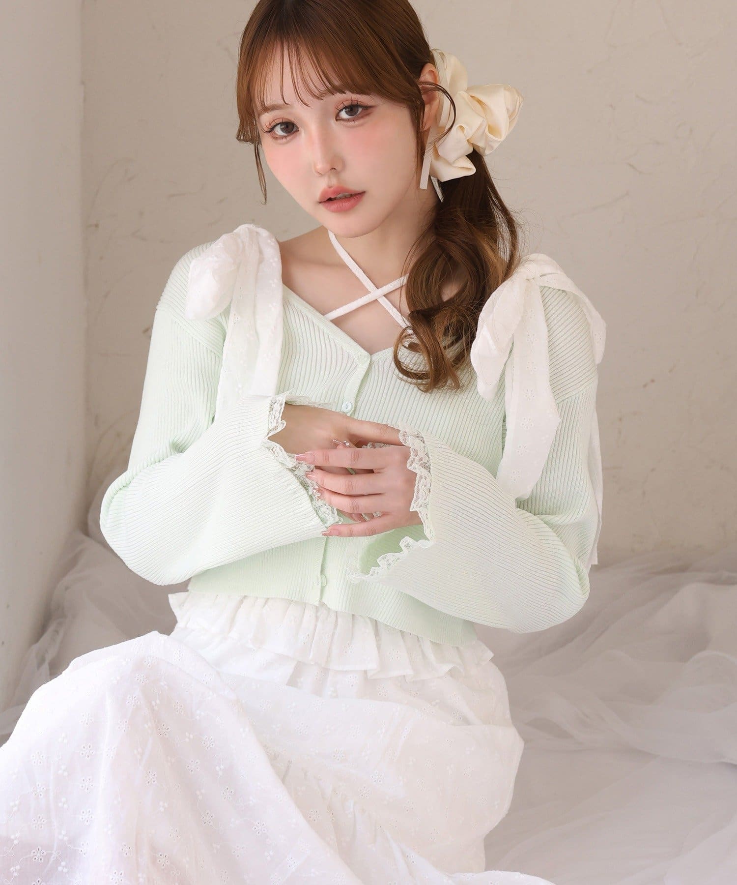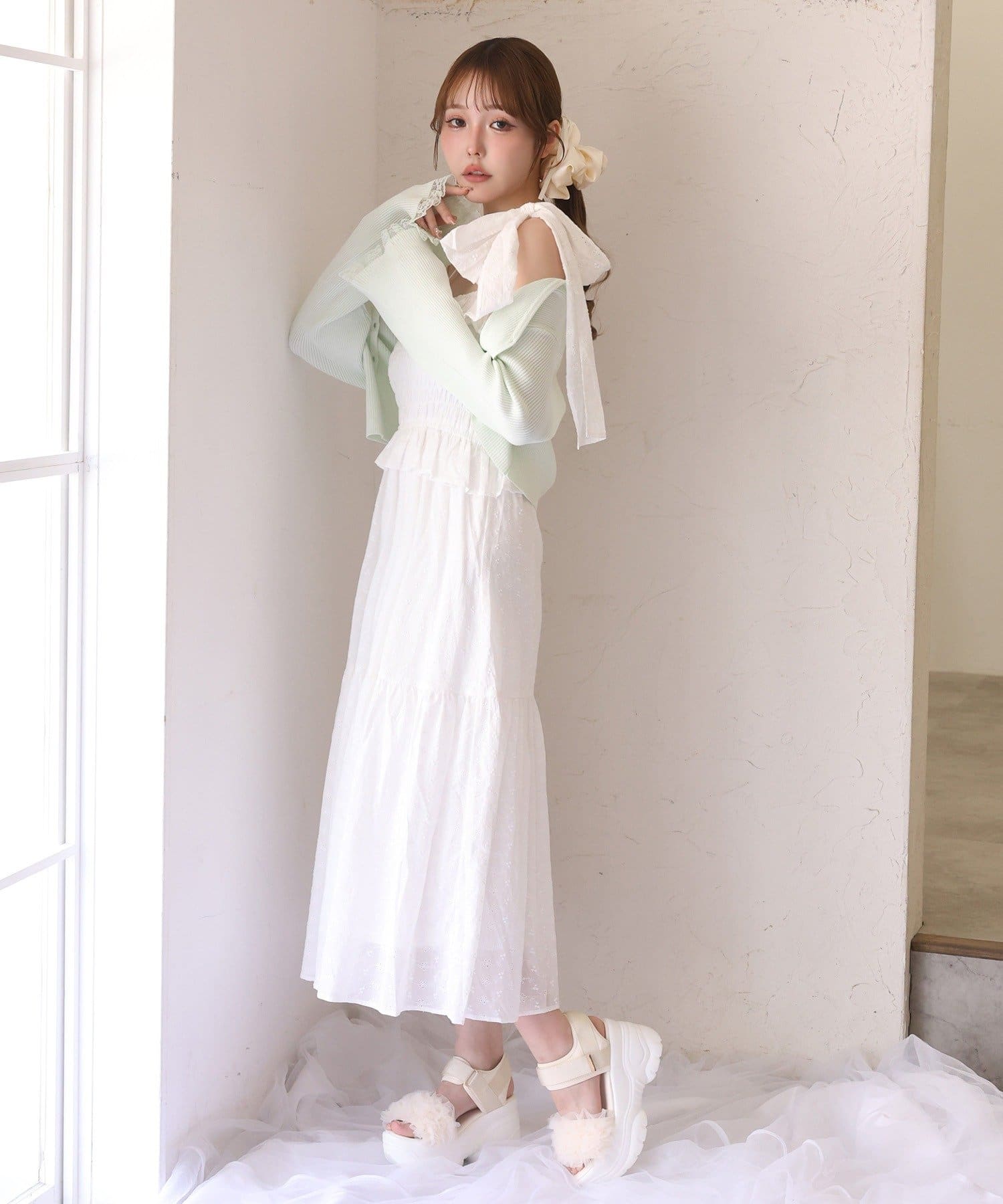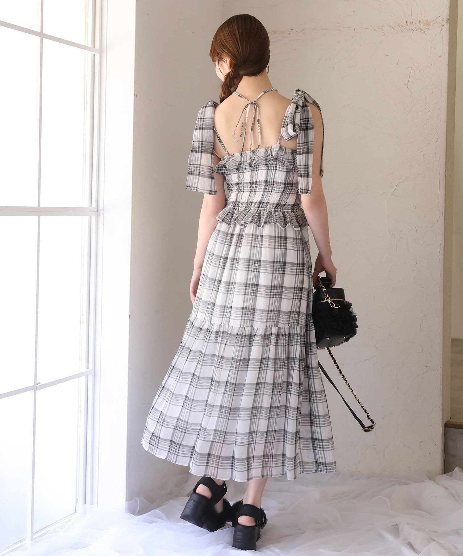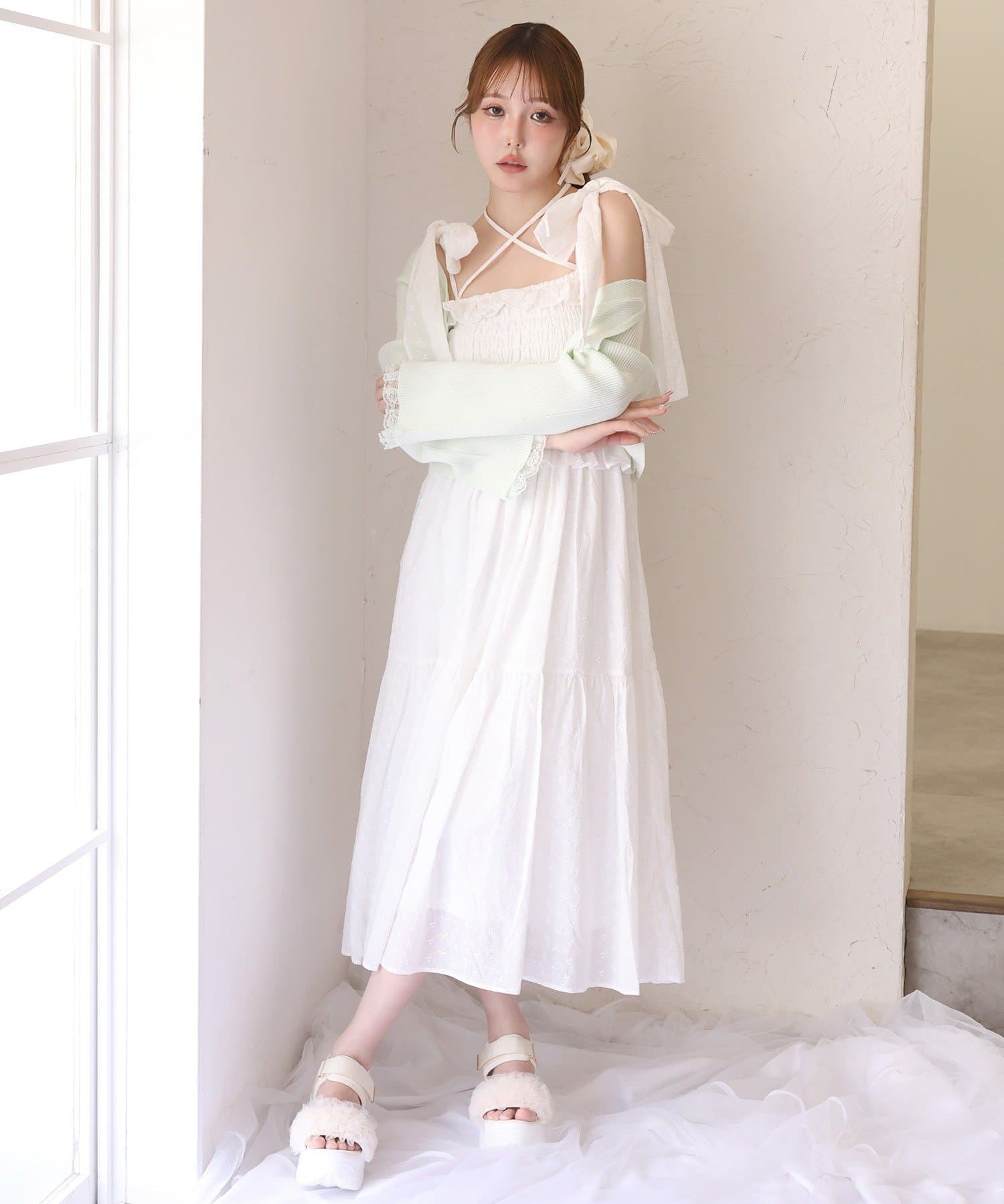S・Mサイズ展開なので着丈のお好みに合わせて選んでいただけます。肩のリボンは取り外し可能です。