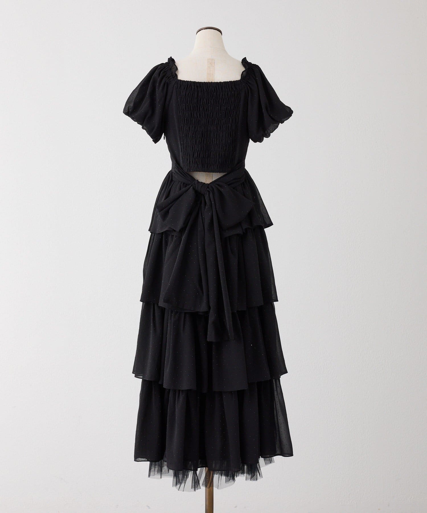 【Black Ribbon Collection】バックリボンティアードワンピ