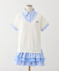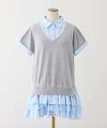 ふんわりニットに、シャツワンピをドッキングしたレイヤード風ミニワンピース。