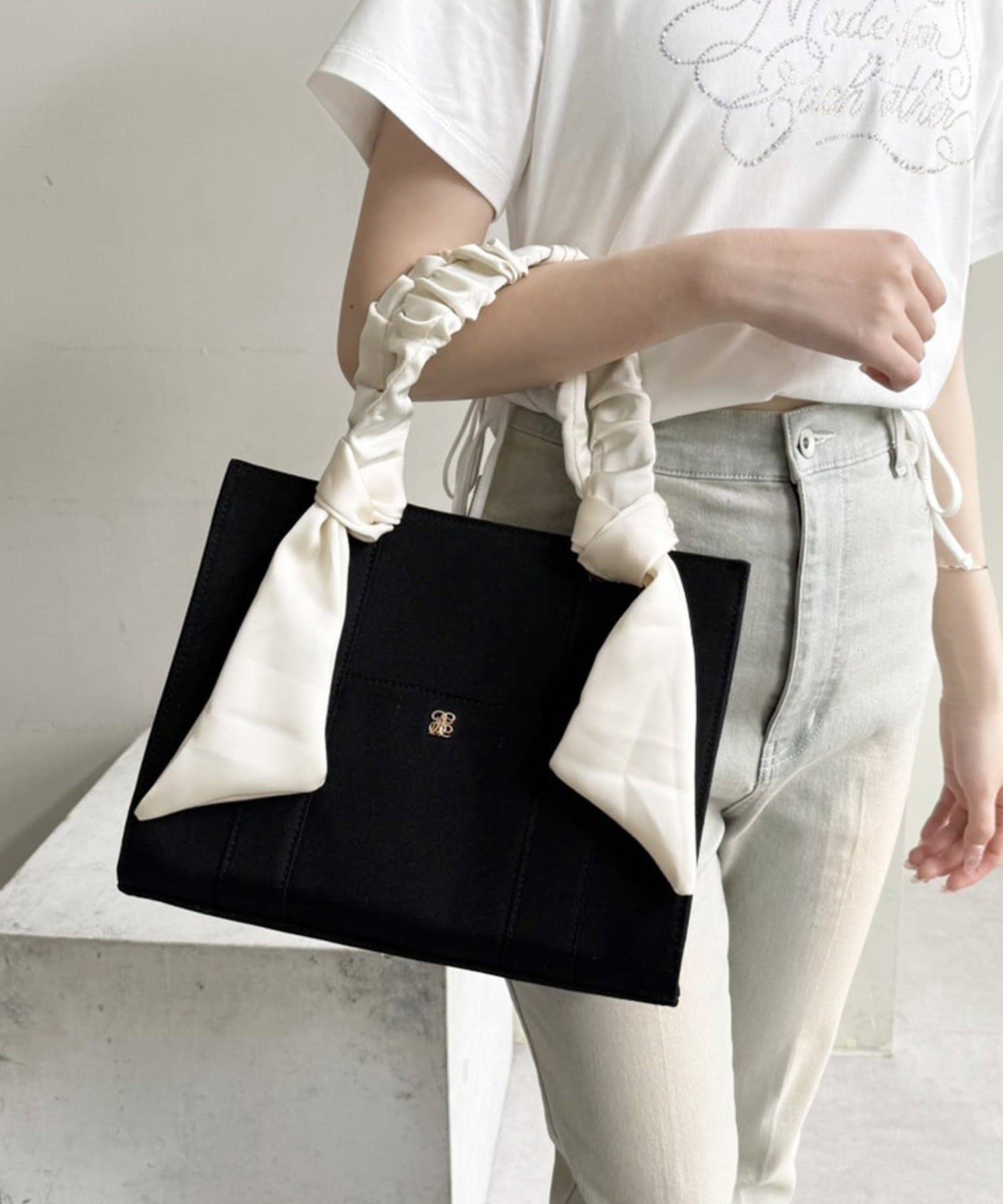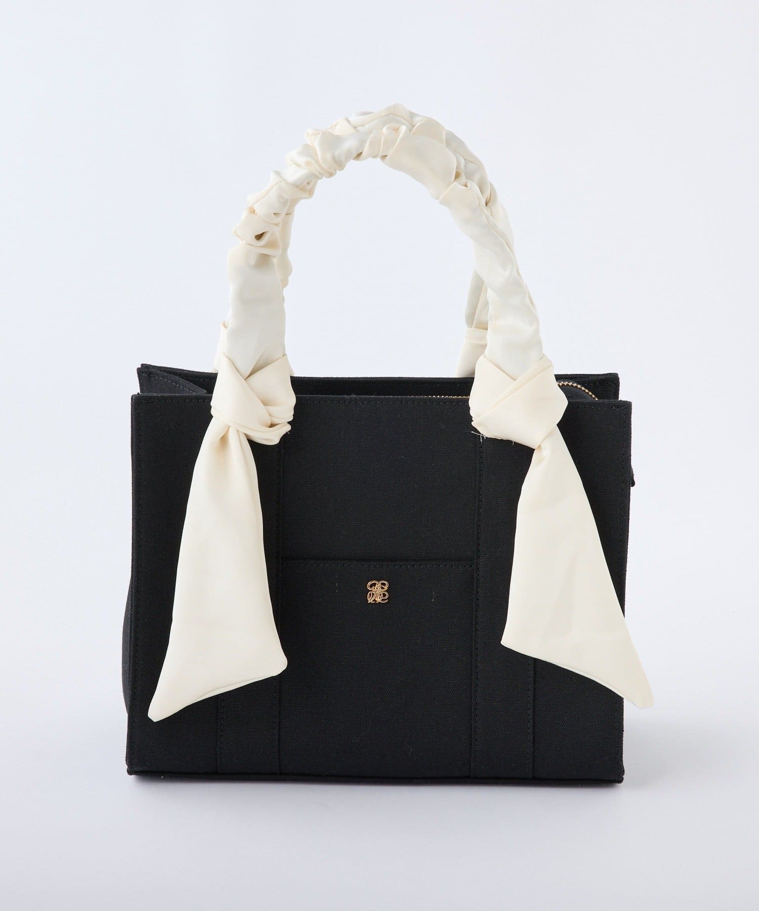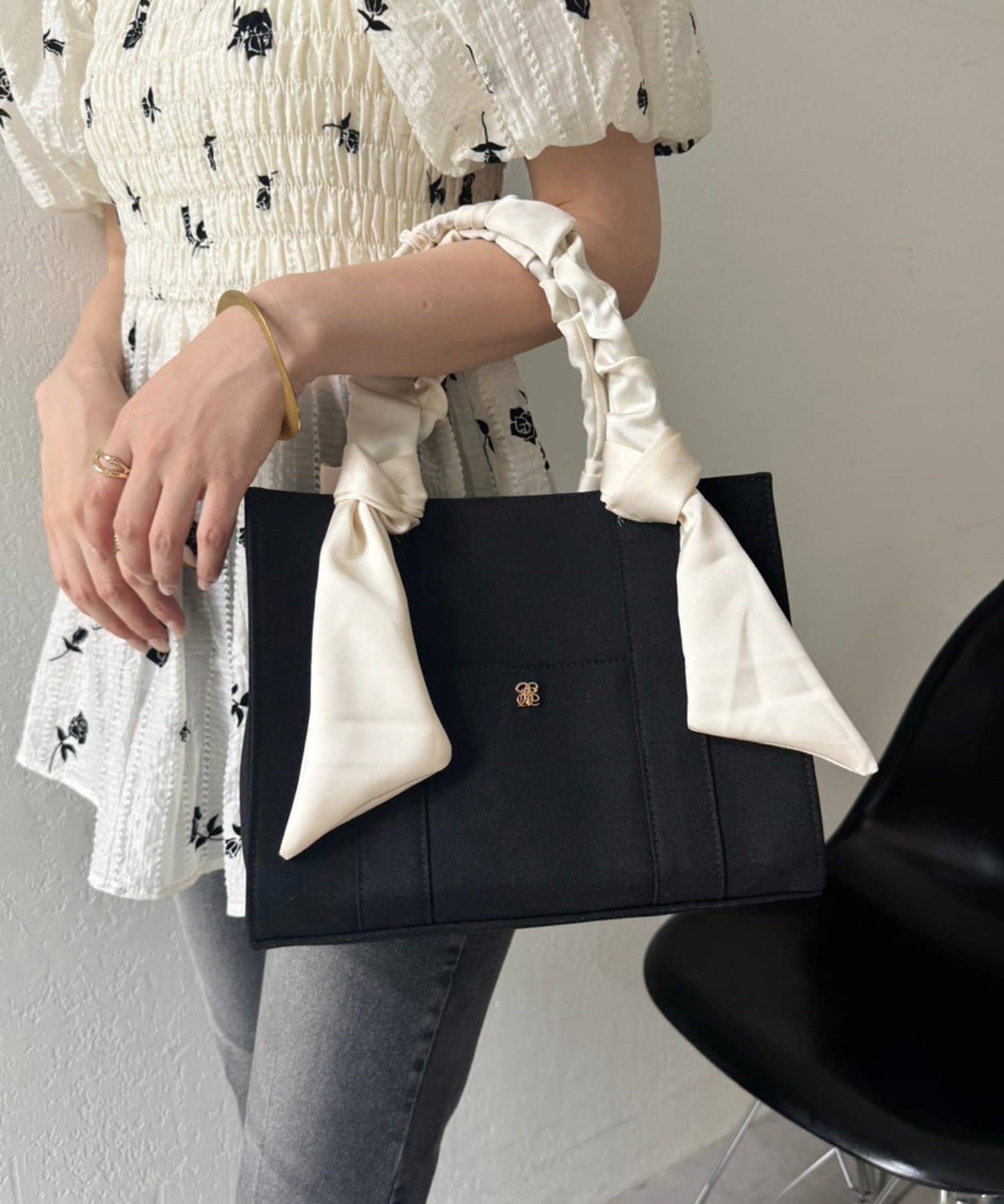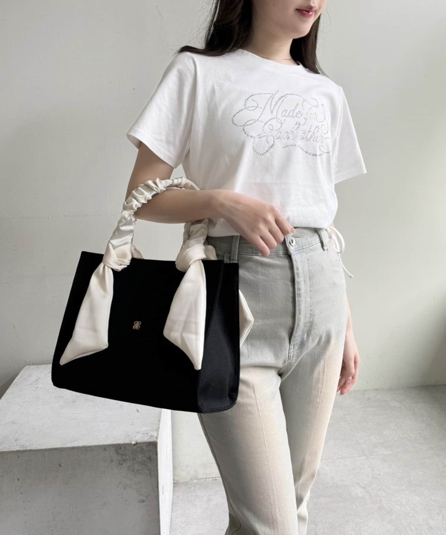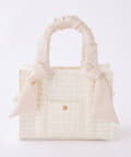 ギャザーを寄せた持ち手や大きなリボンがポイントのトートバッグ