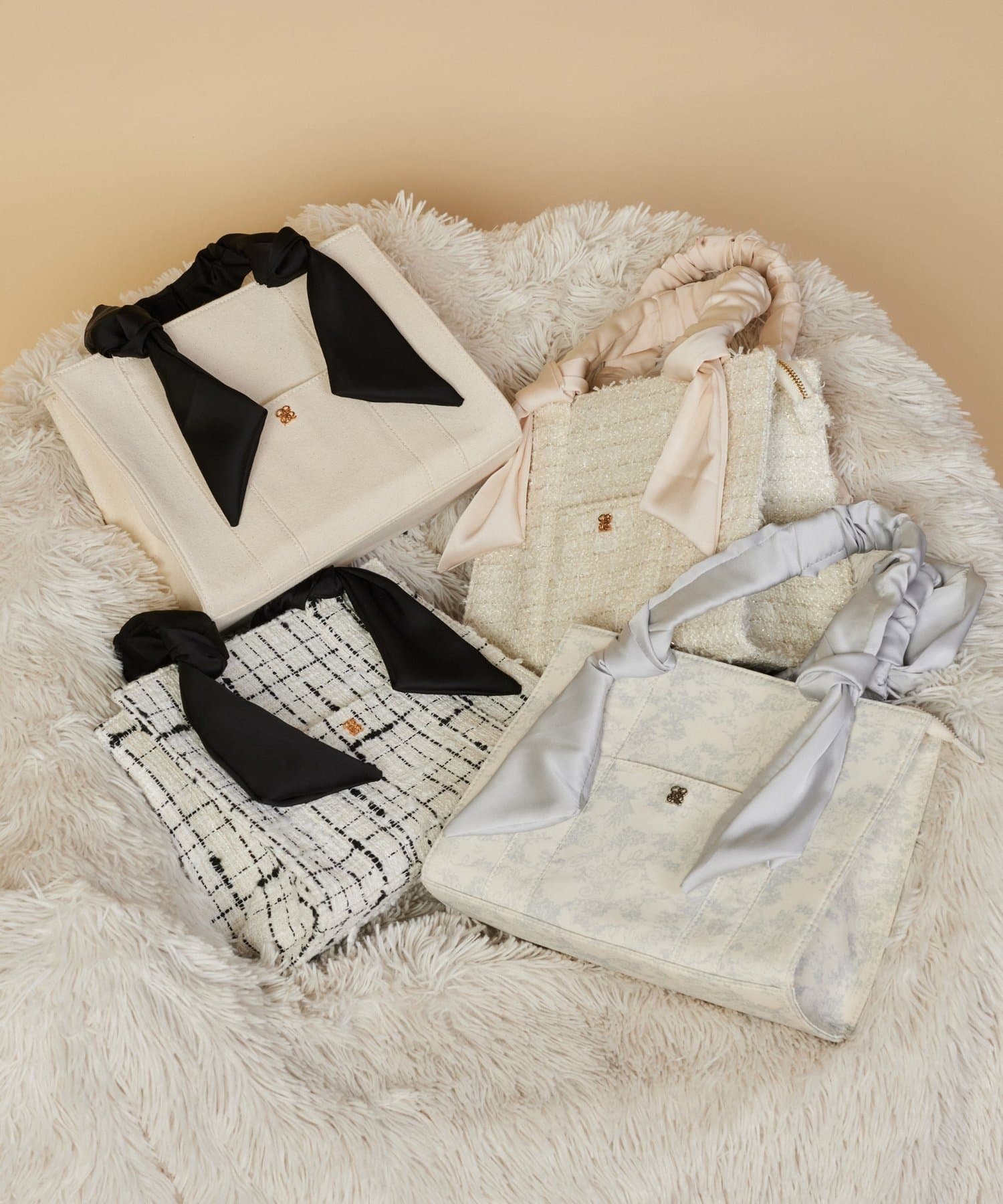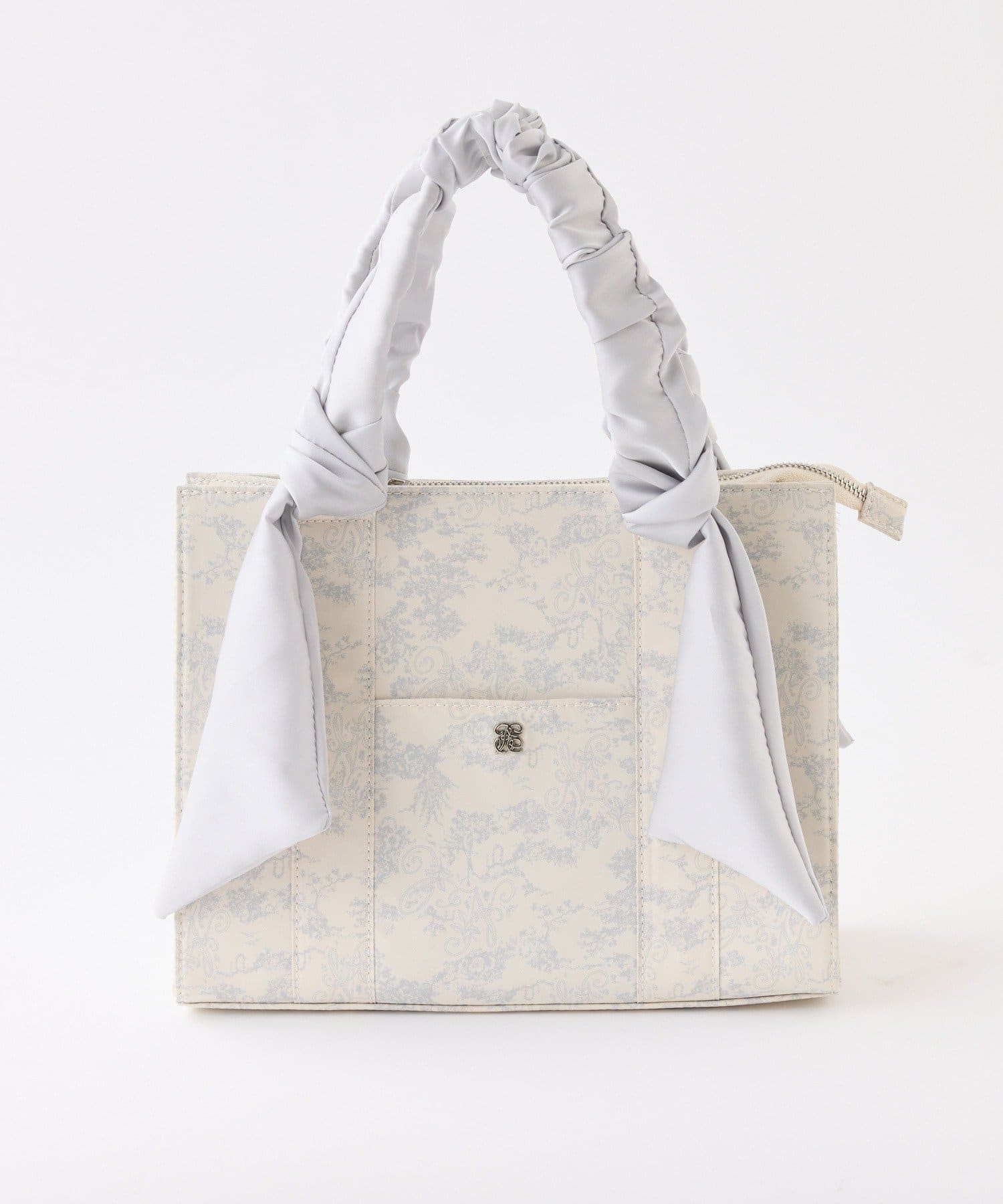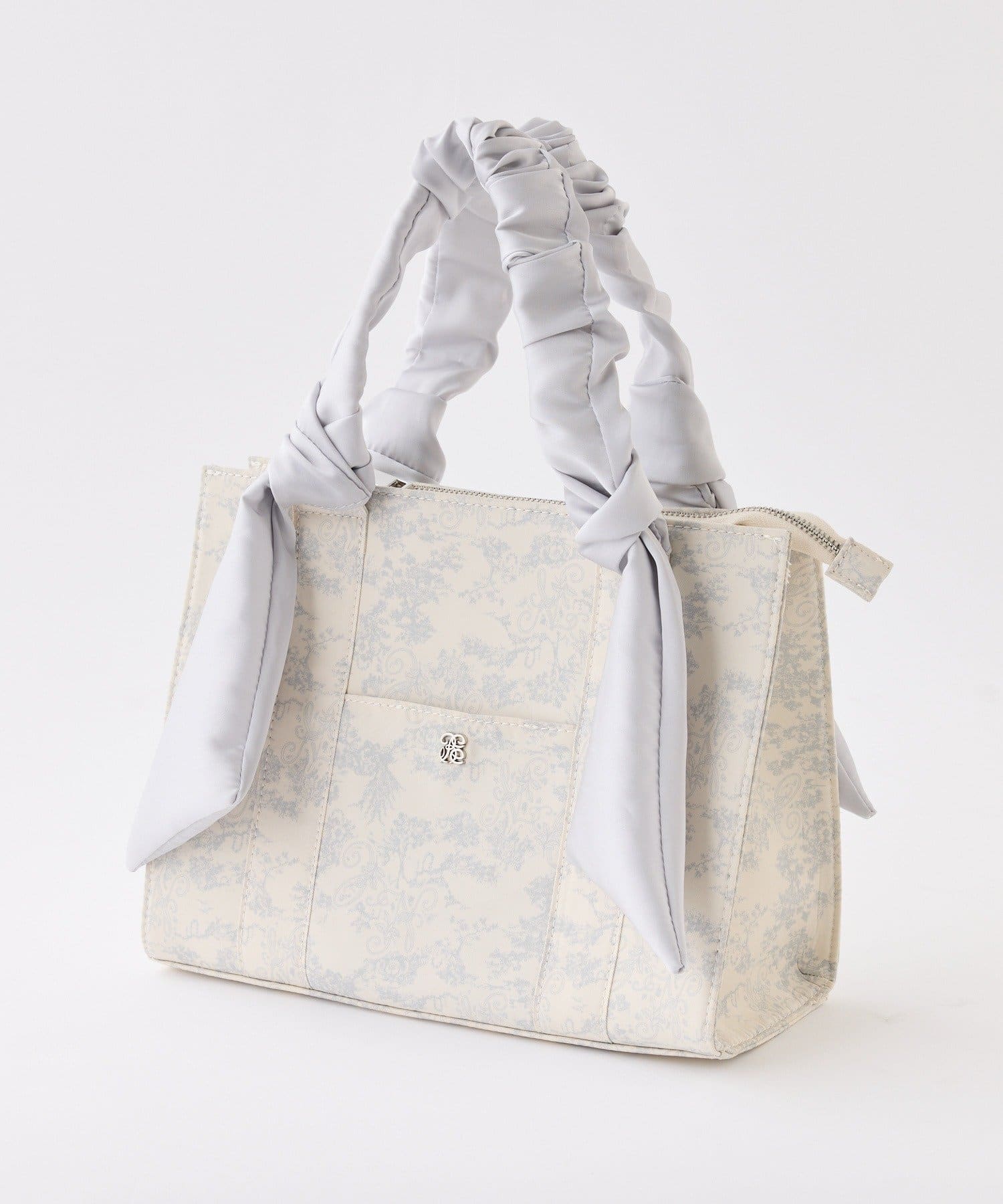 ギャザーを寄せた持ち手や大きなリボンがポイントのトートバッグ