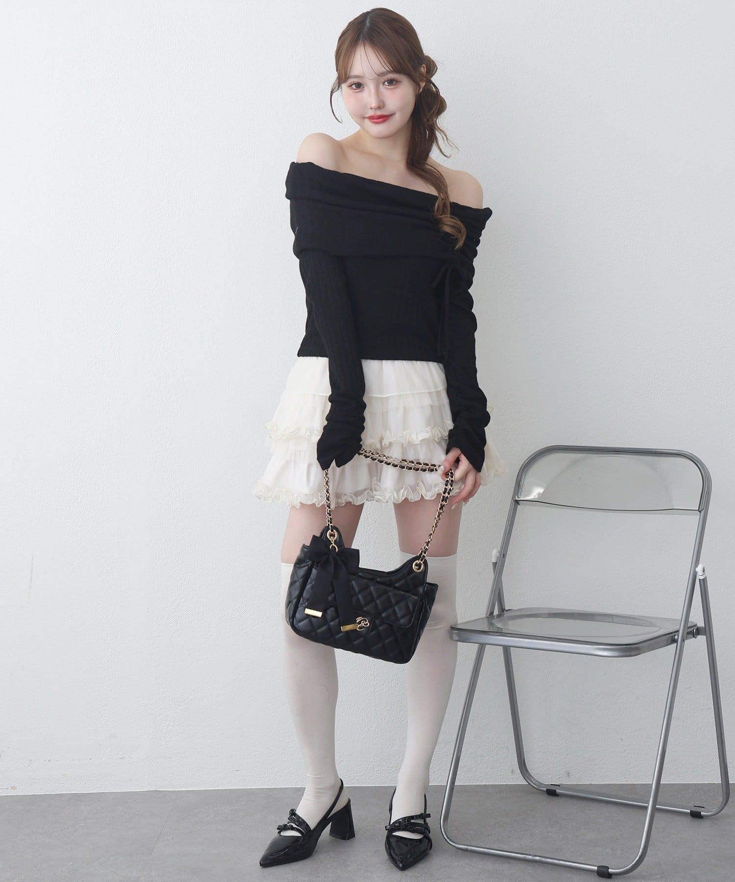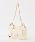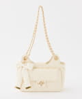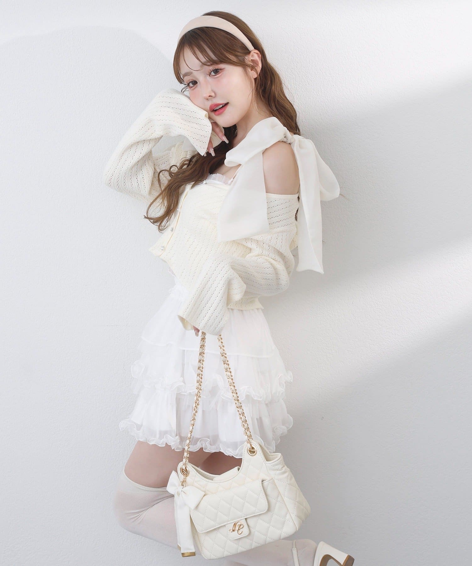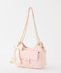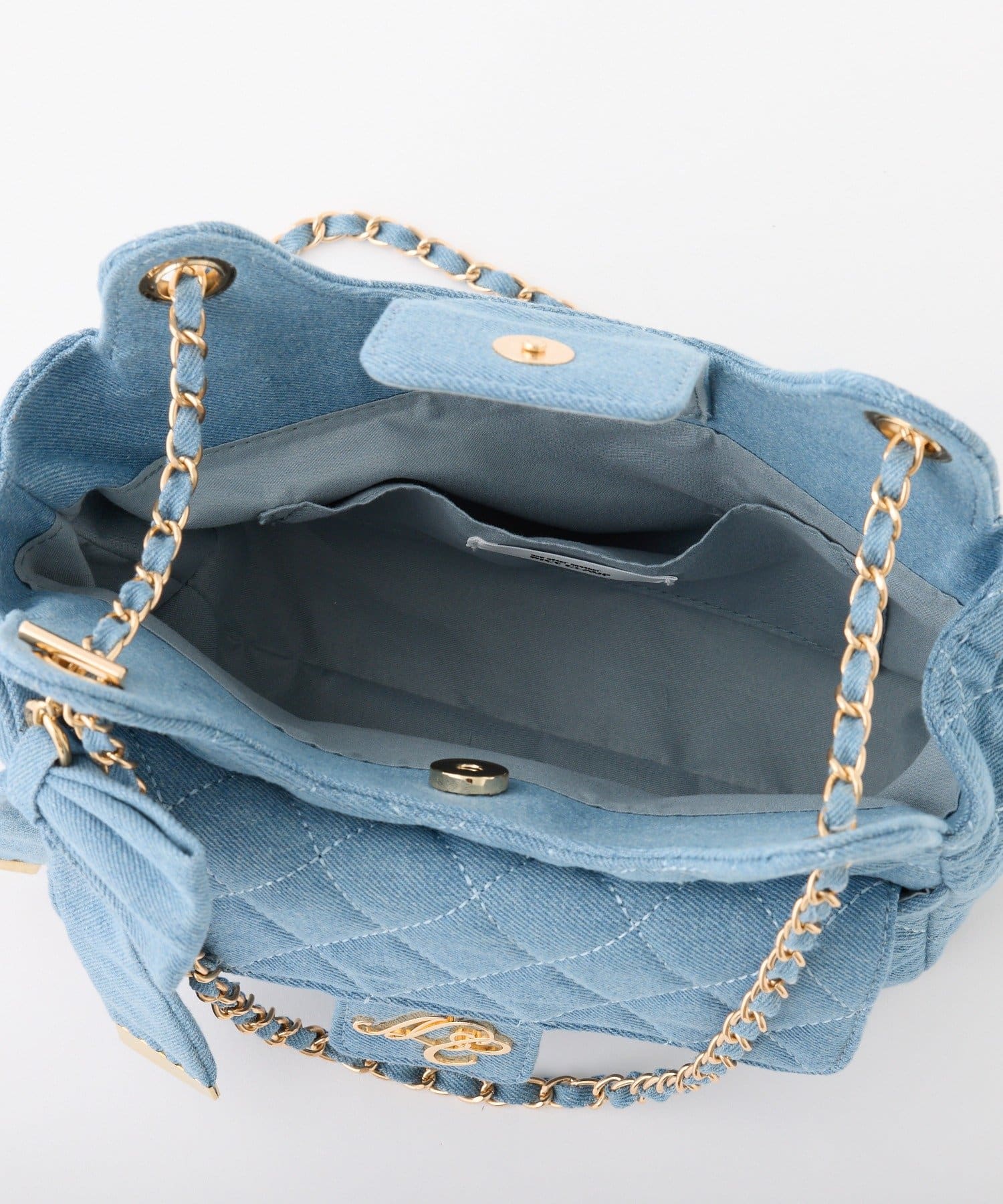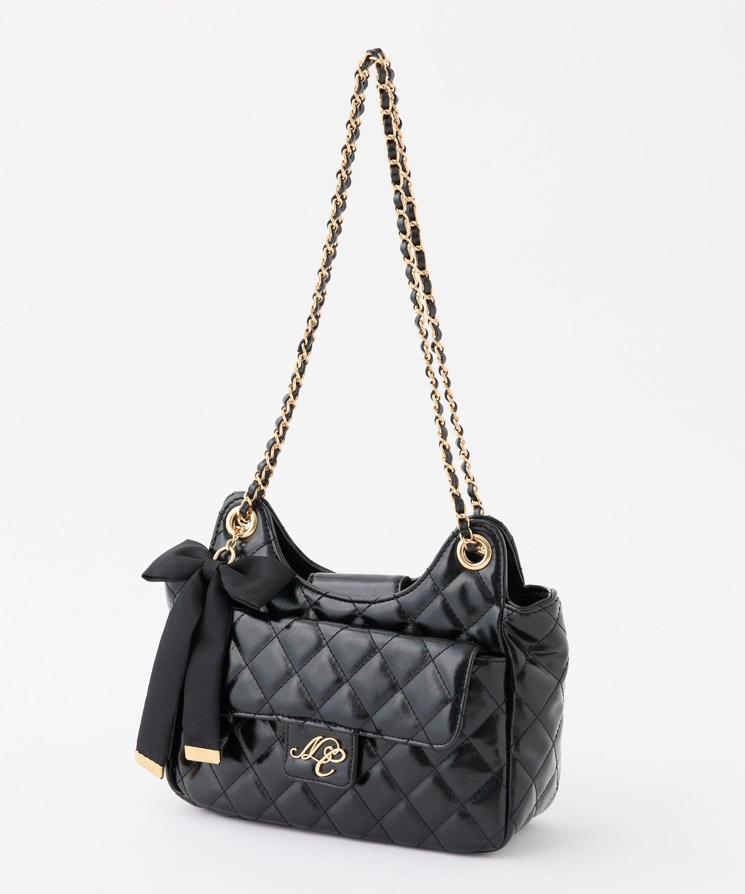 キルティングデザインと大きめリボンのチャームが目を惹く、チェーンショルダーミニバッグ。