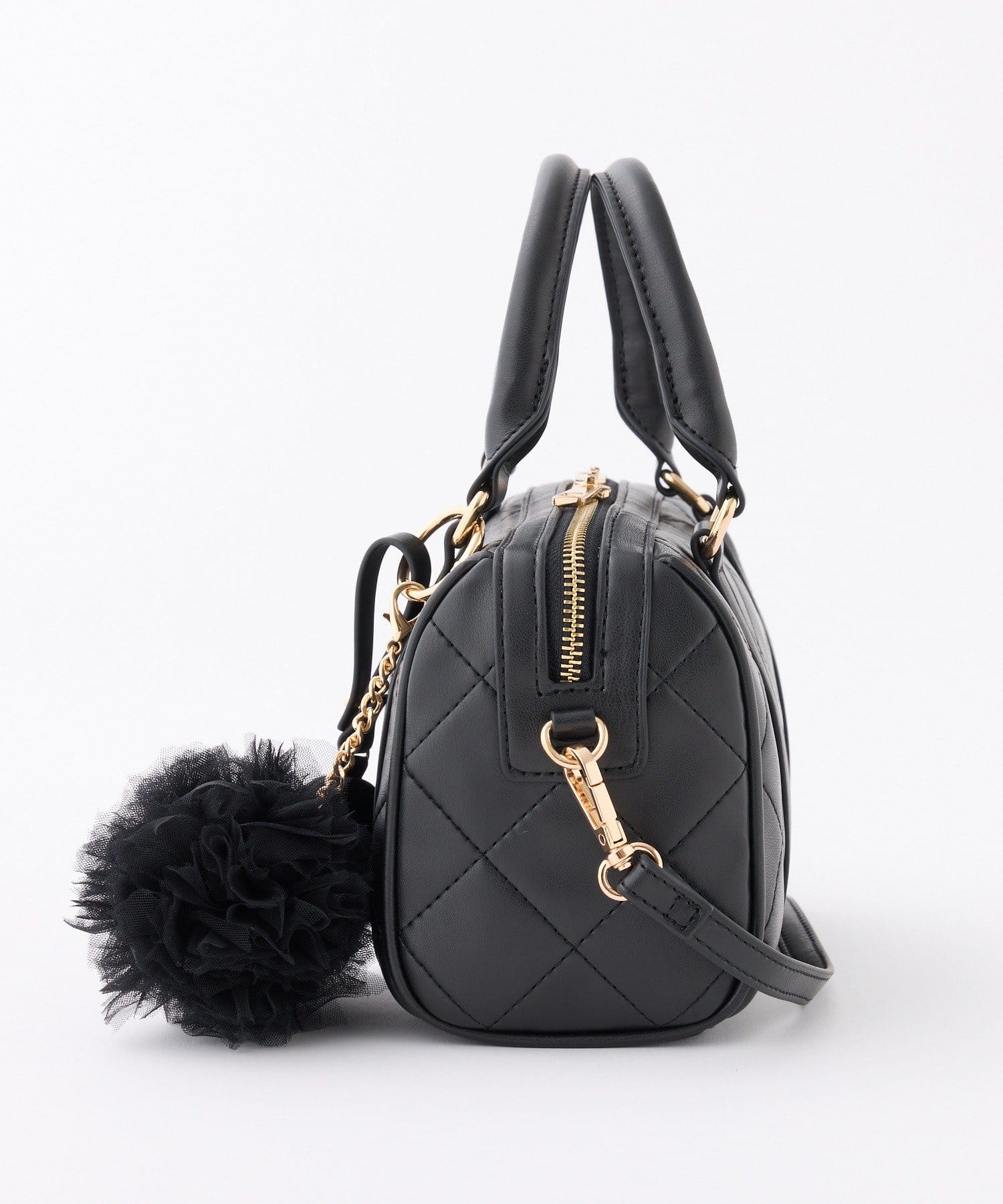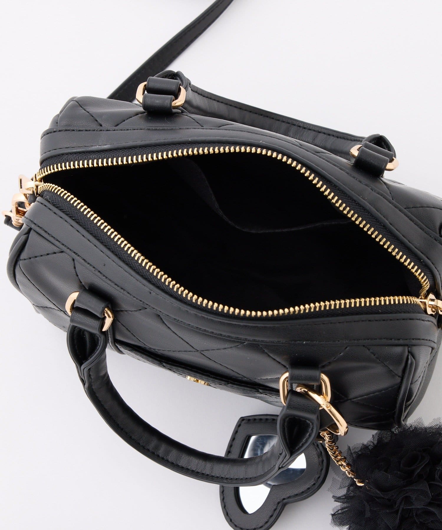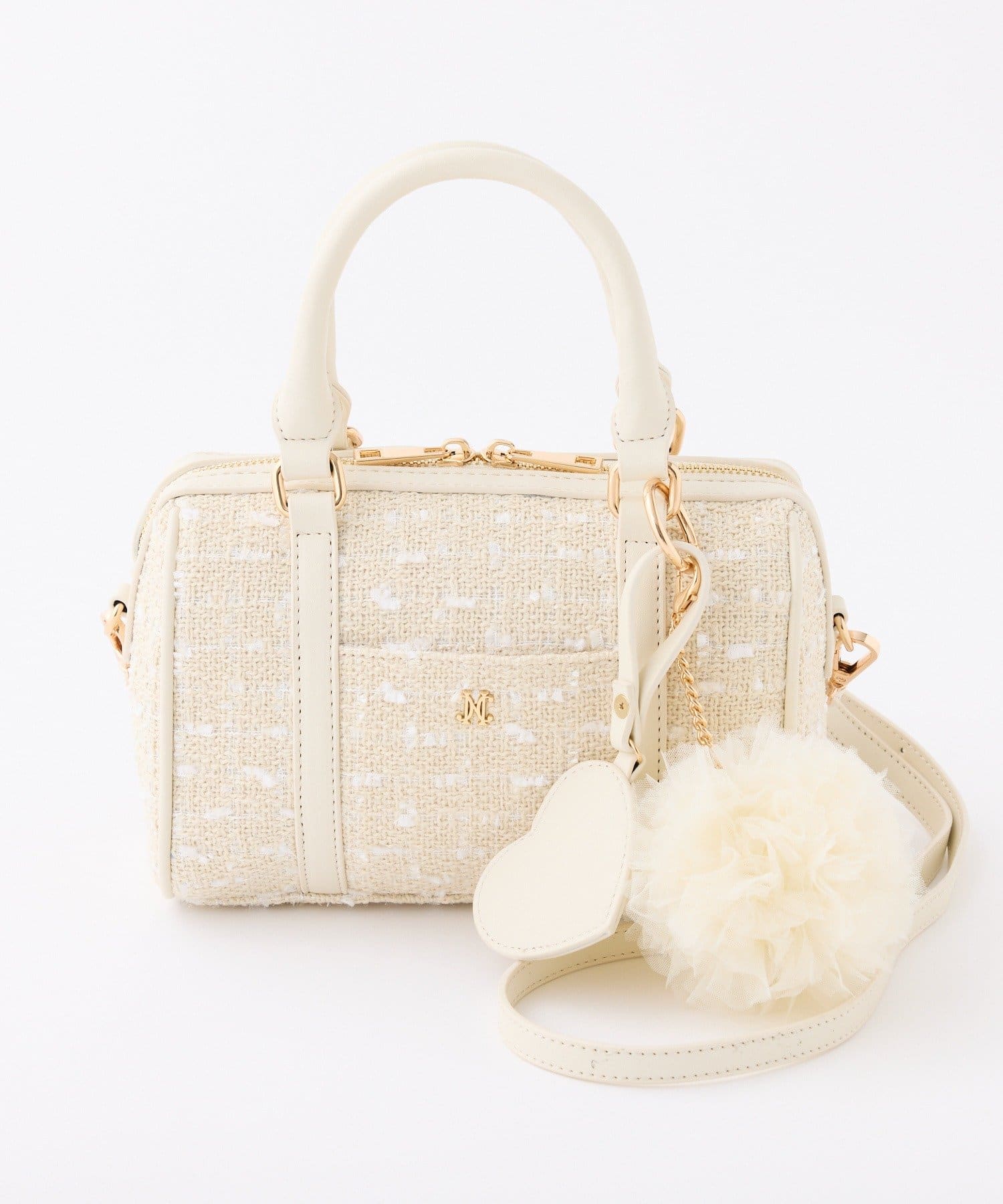 フロントのハートチャームとチュールのボンボンがアクセントになり、持つだけでガーリーな雰囲気に。
