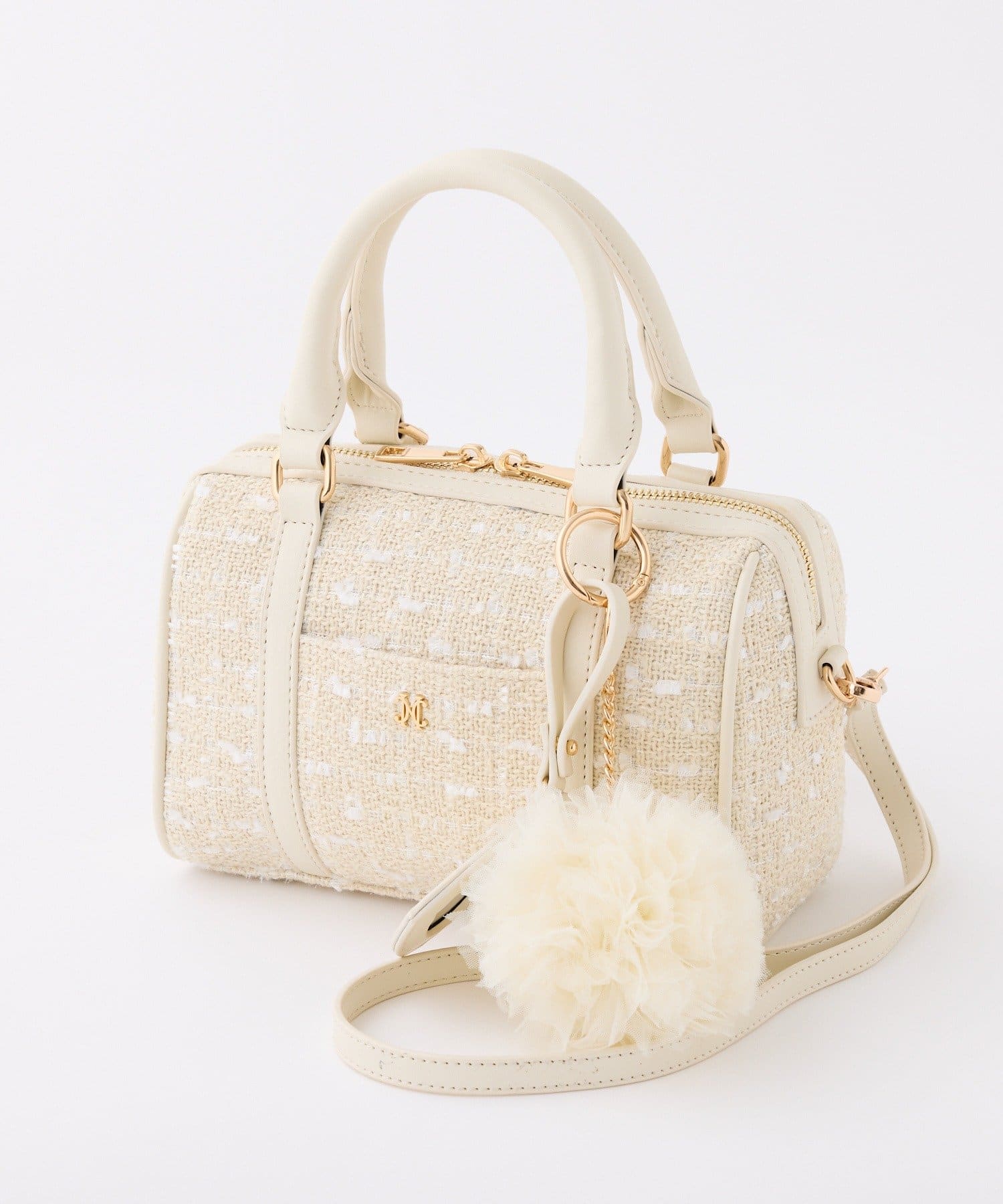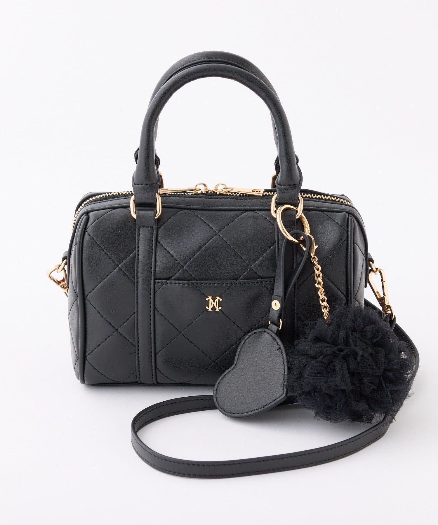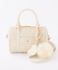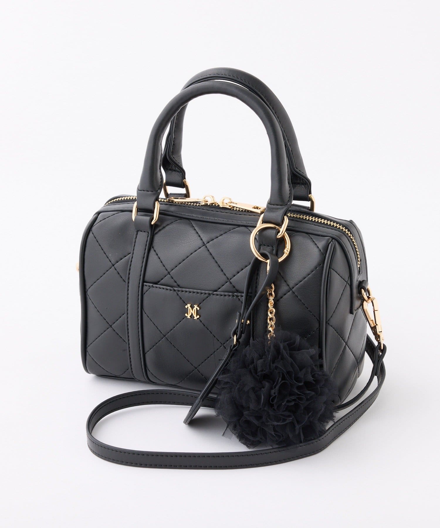 フロントのハートチャームとチュールのボンボンがアクセントになり、持つだけでガーリーな雰囲気に。