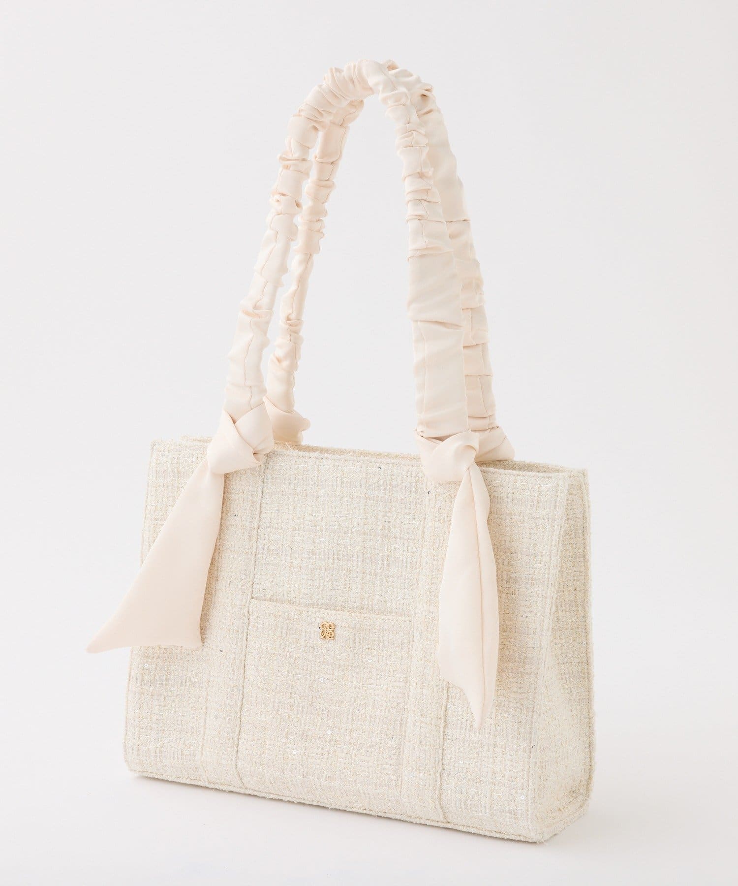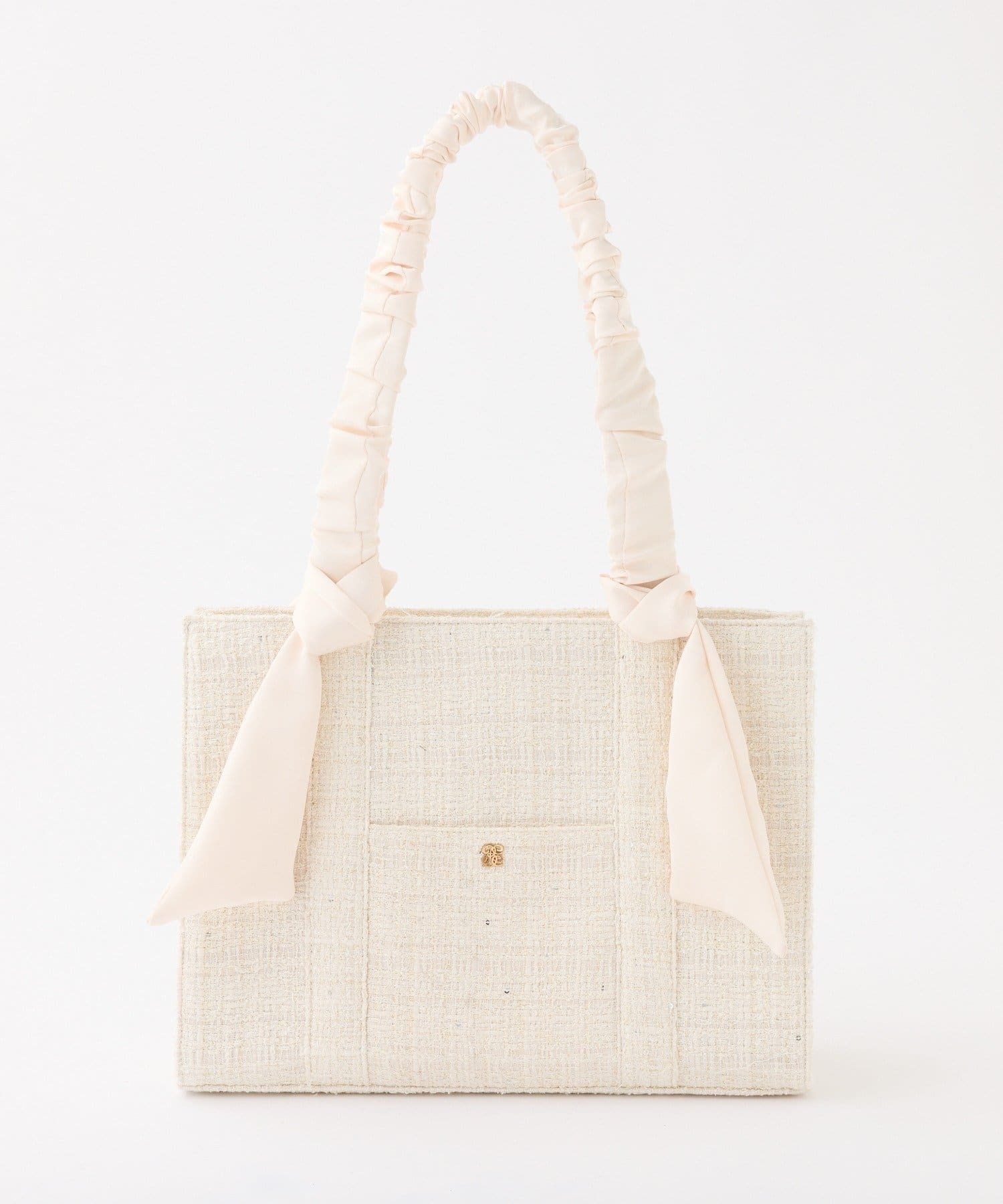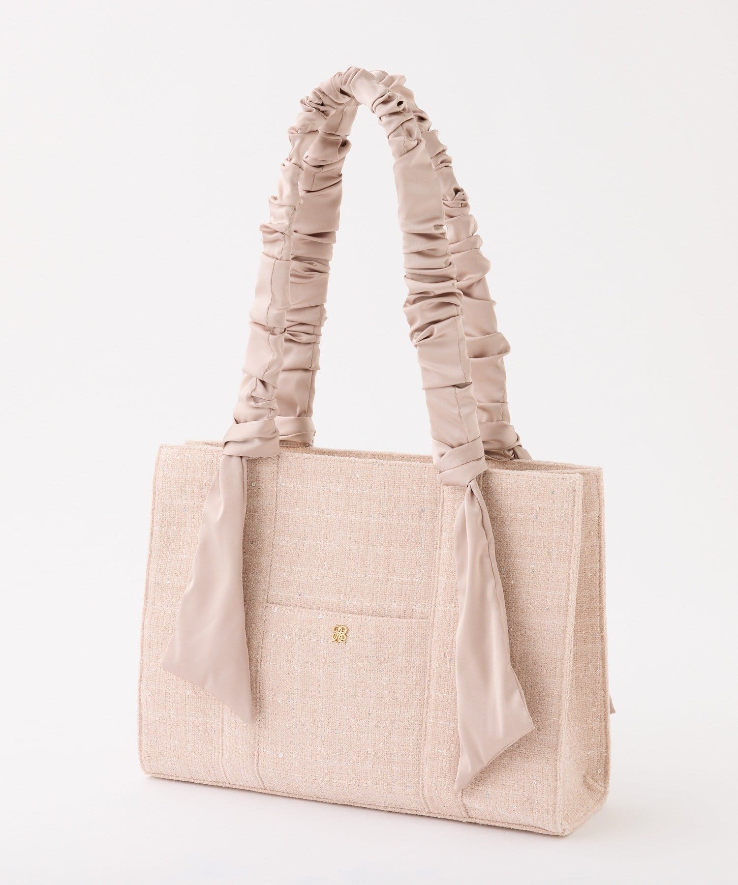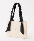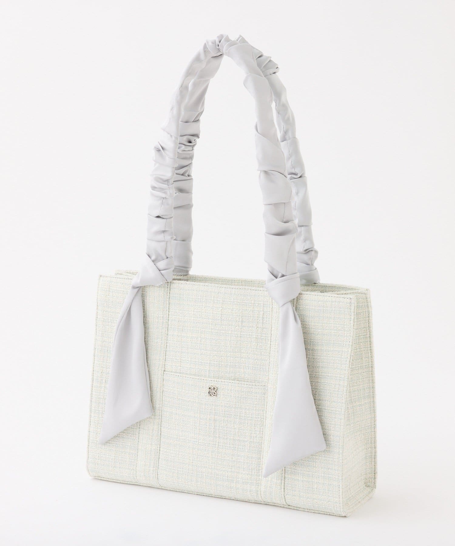 ギャザーを寄せた持ち手や大きなリボンがポイント。