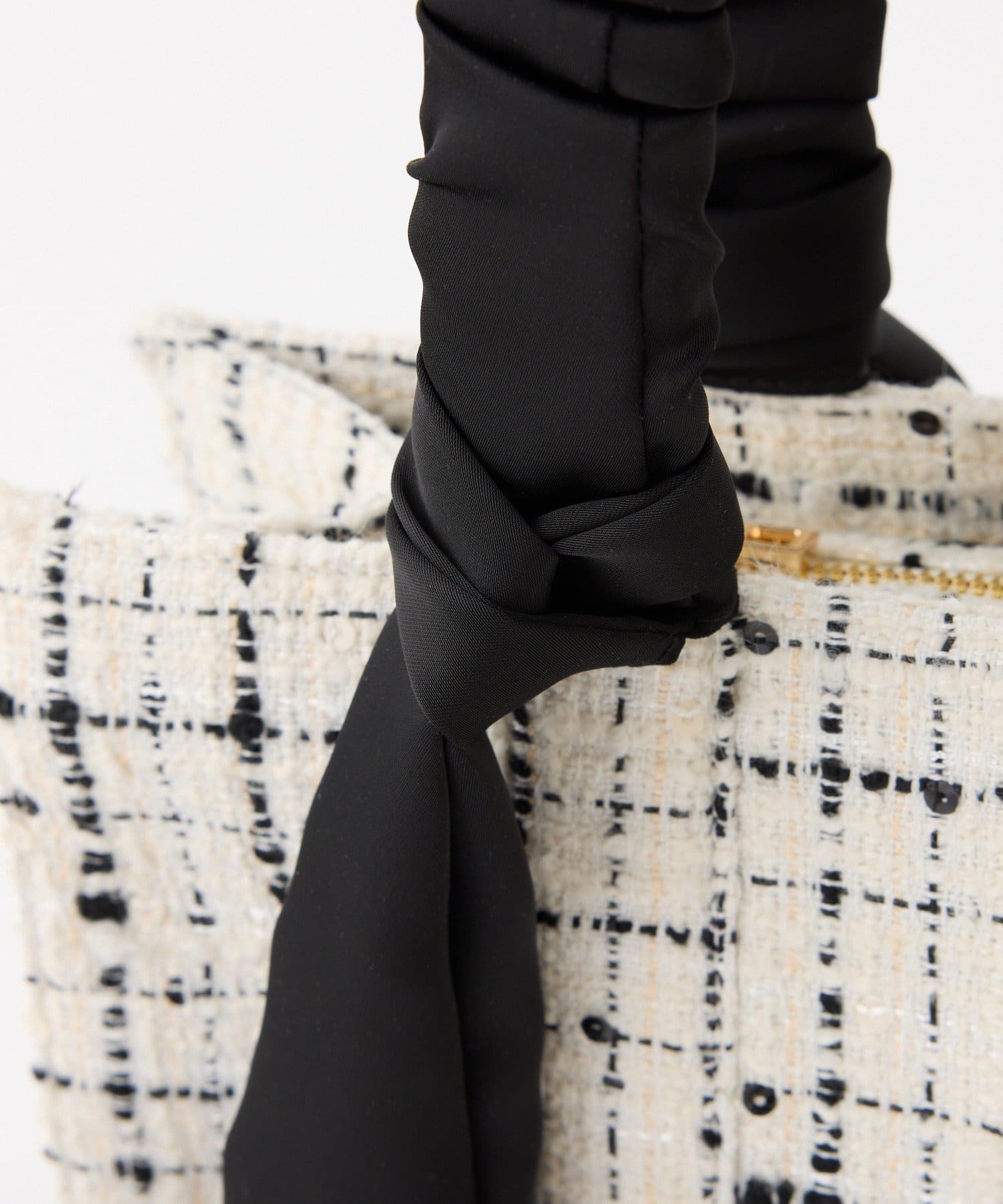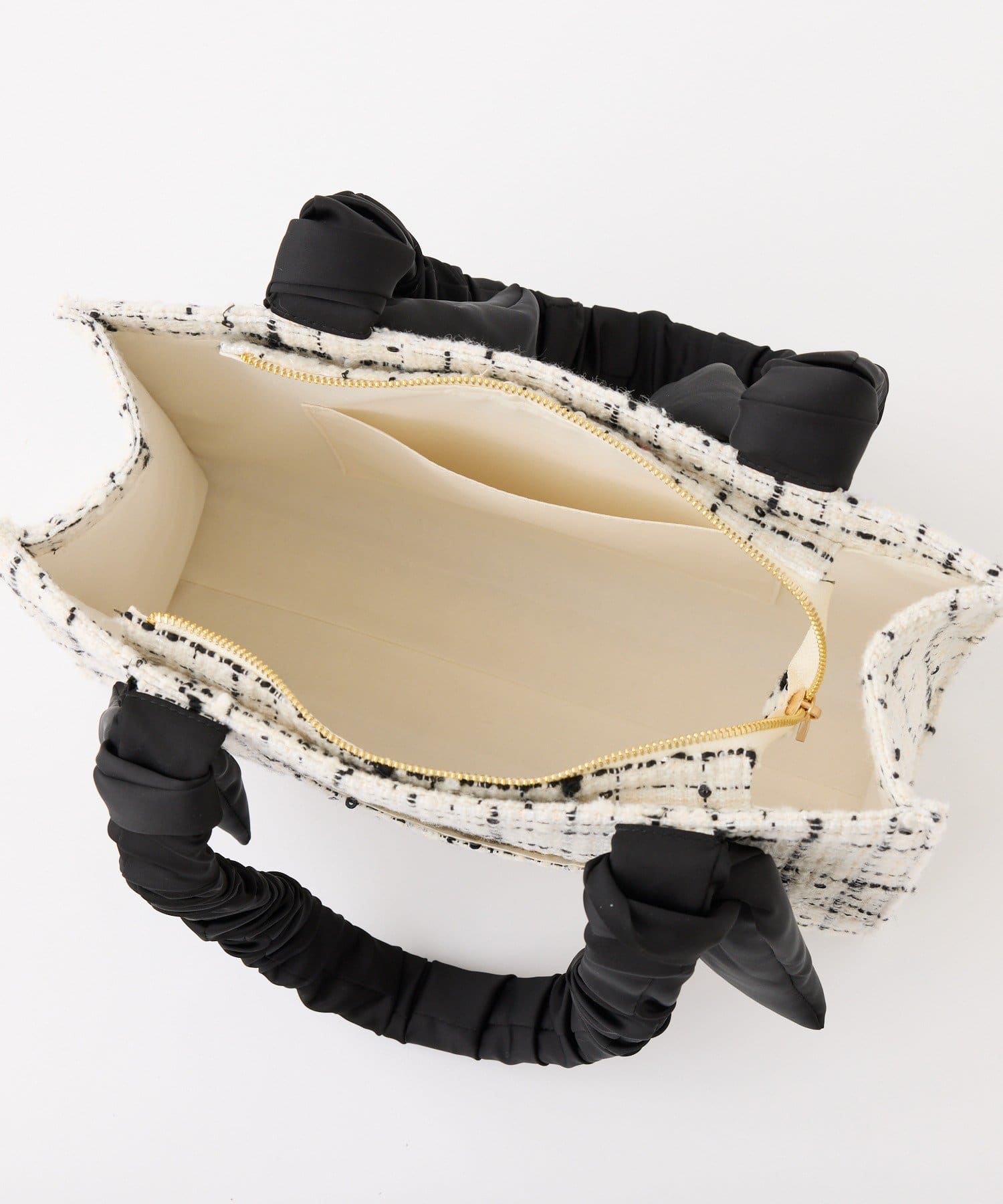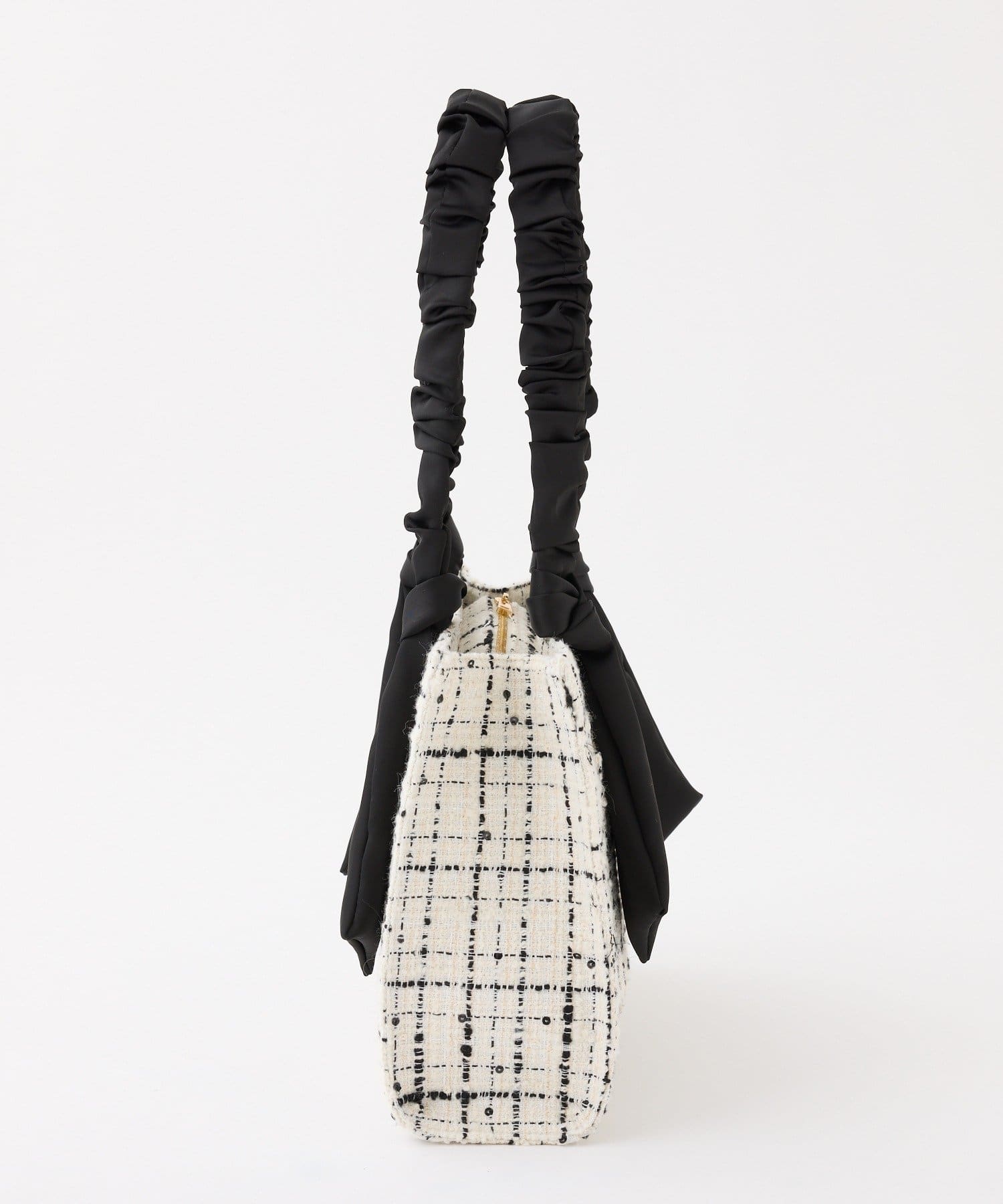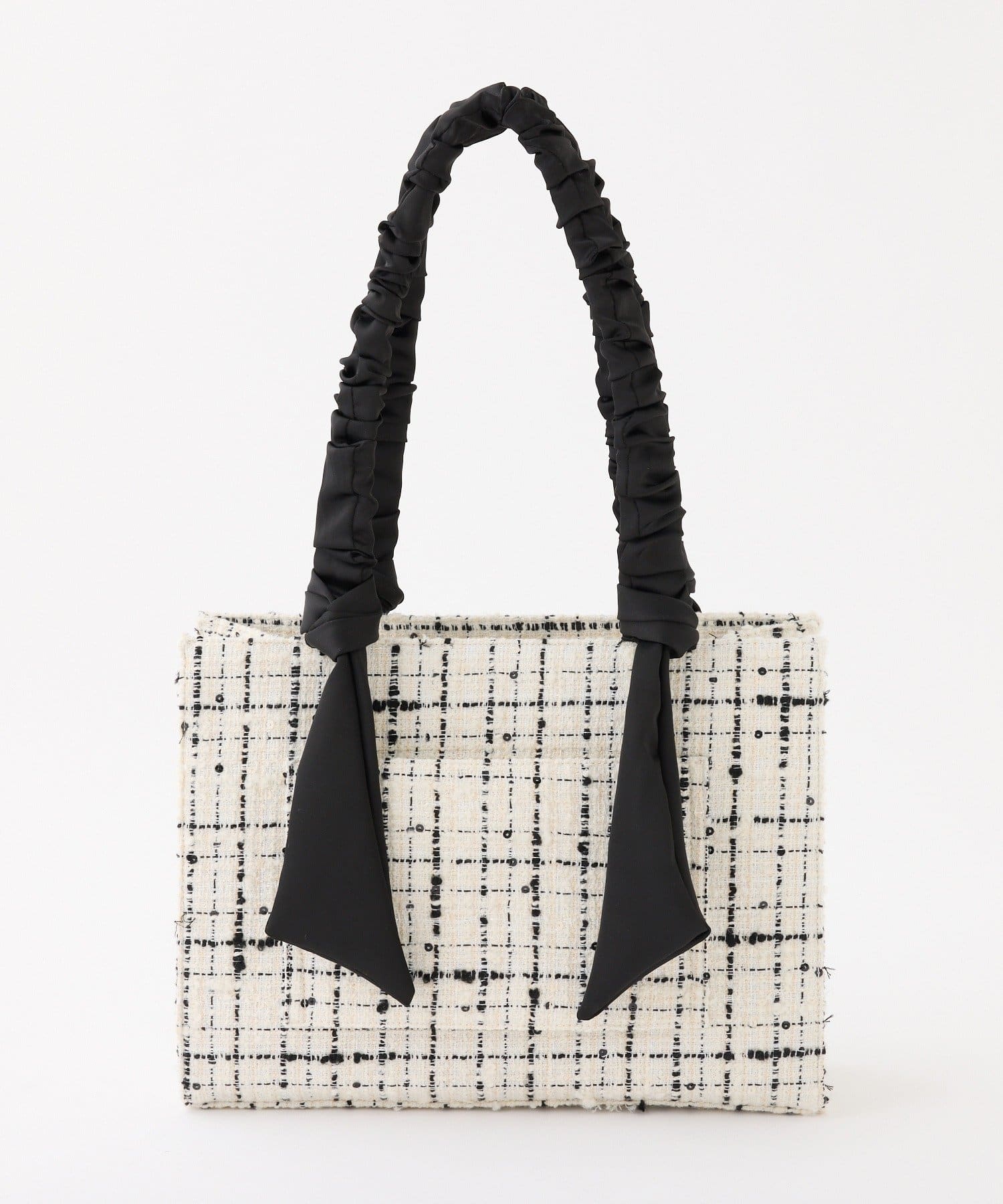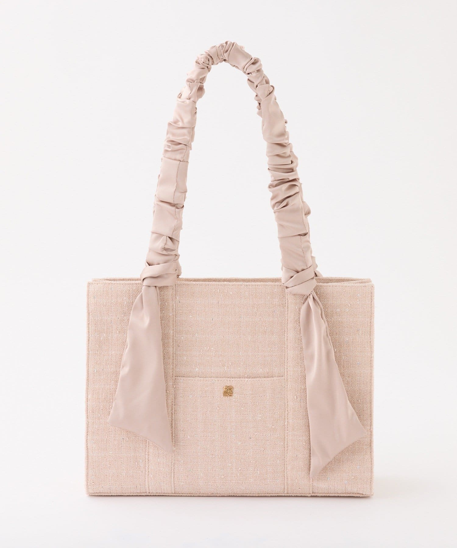 ギャザーを寄せた持ち手や大きなリボンがポイント。