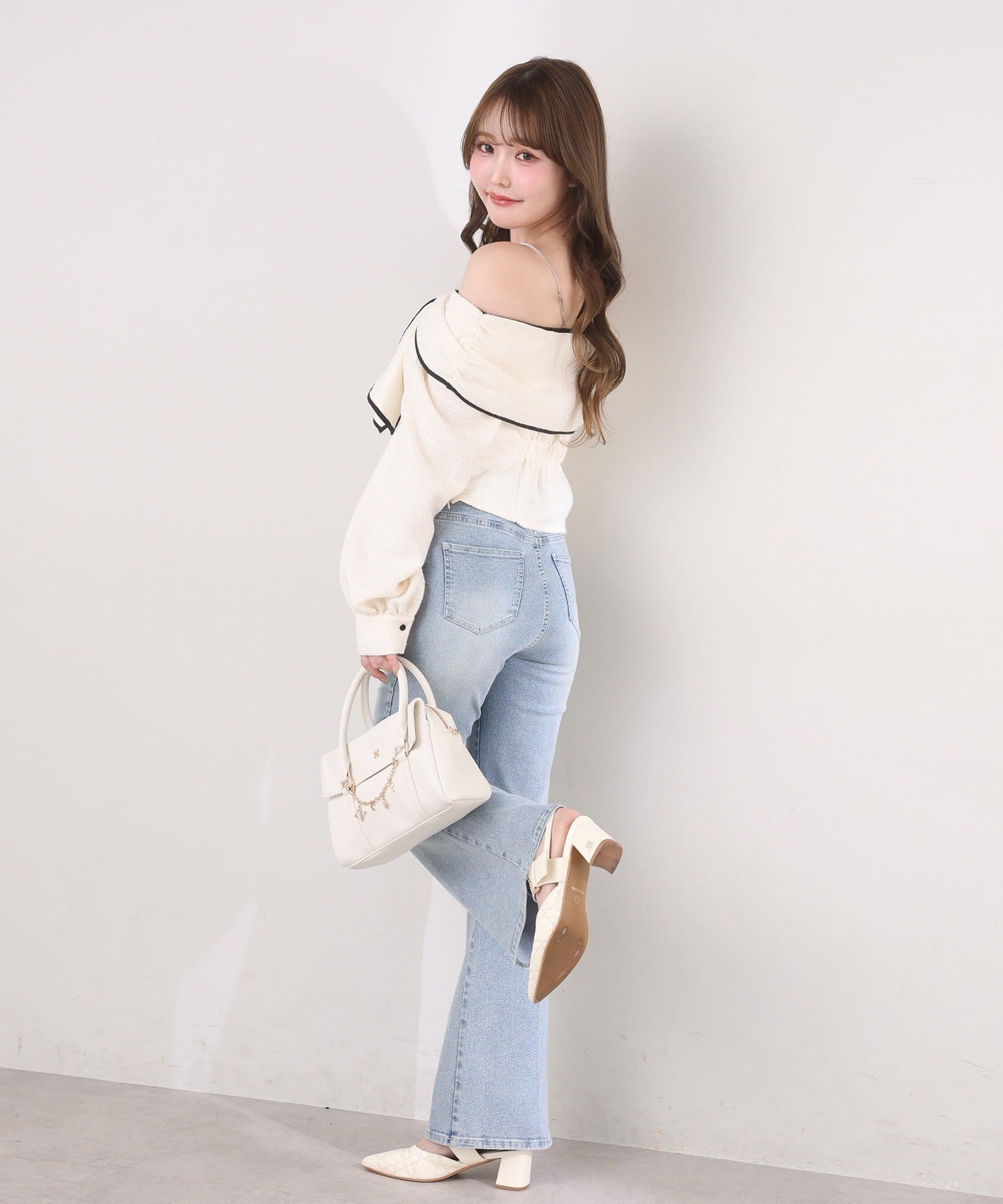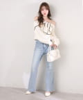 デニムコーデにプラスして甘さを足すのもおすすめ。