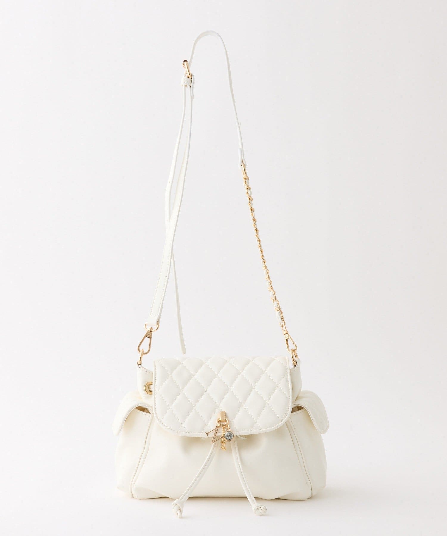 品番 0161120340 素材 【アイボリー/ベージュ】表地:合成皮革 裏地:ポリエステル100% 【ブラック】表地/裏地:ポリエステル100% 原産国 中国 サイズ FREE カテゴリ バッグ > ショルダーバッグ タイプ レディース ギフト ラッピング 可 取り扱い - アイテムサイズ