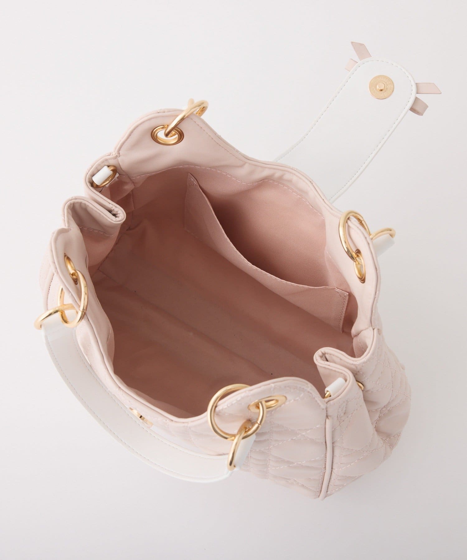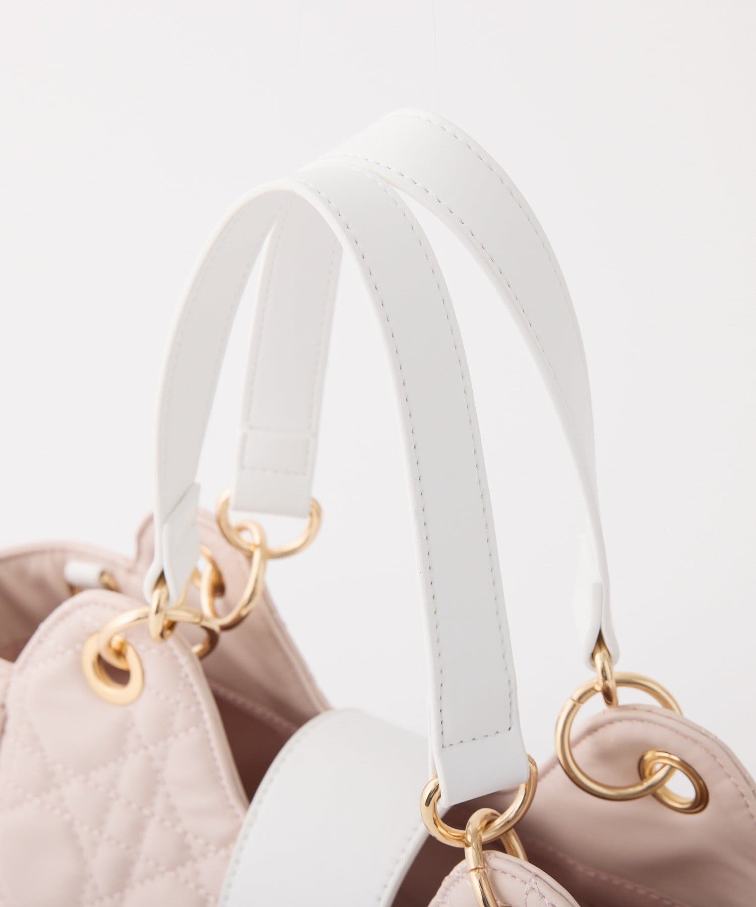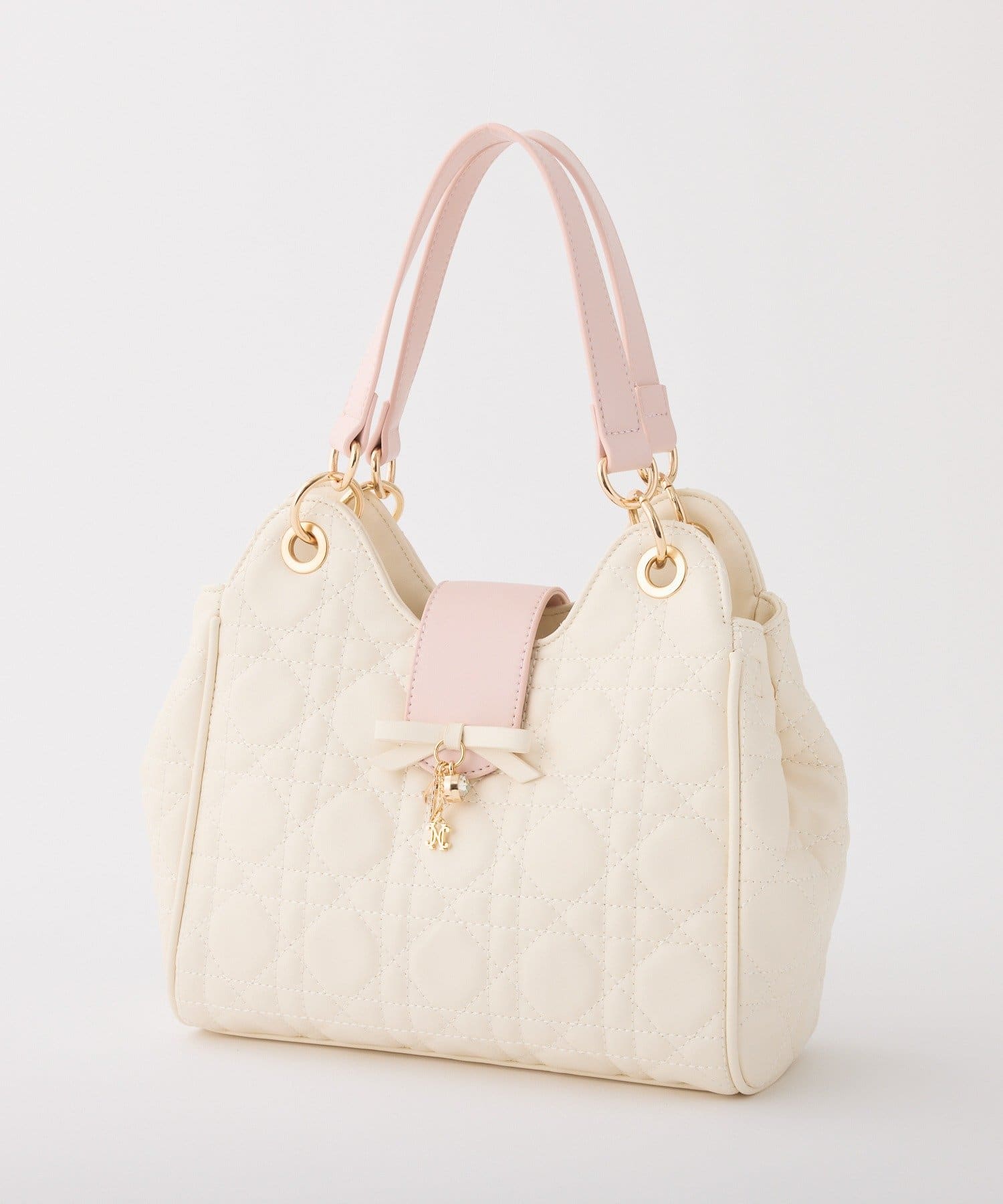 配色デザインとフロントのリボンとチャームがアクセントになり、上品で可愛らしい印象に仕上げました。