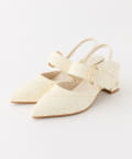 ヒール部分にはオリジナルロゴの金具をあしらい、後ろ姿まで抜かりなく可愛く。