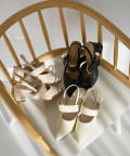ベルト部分のビジュー使いで足元を華やかにしてくれ、