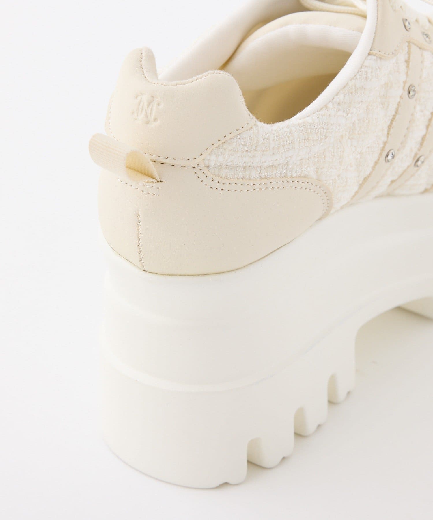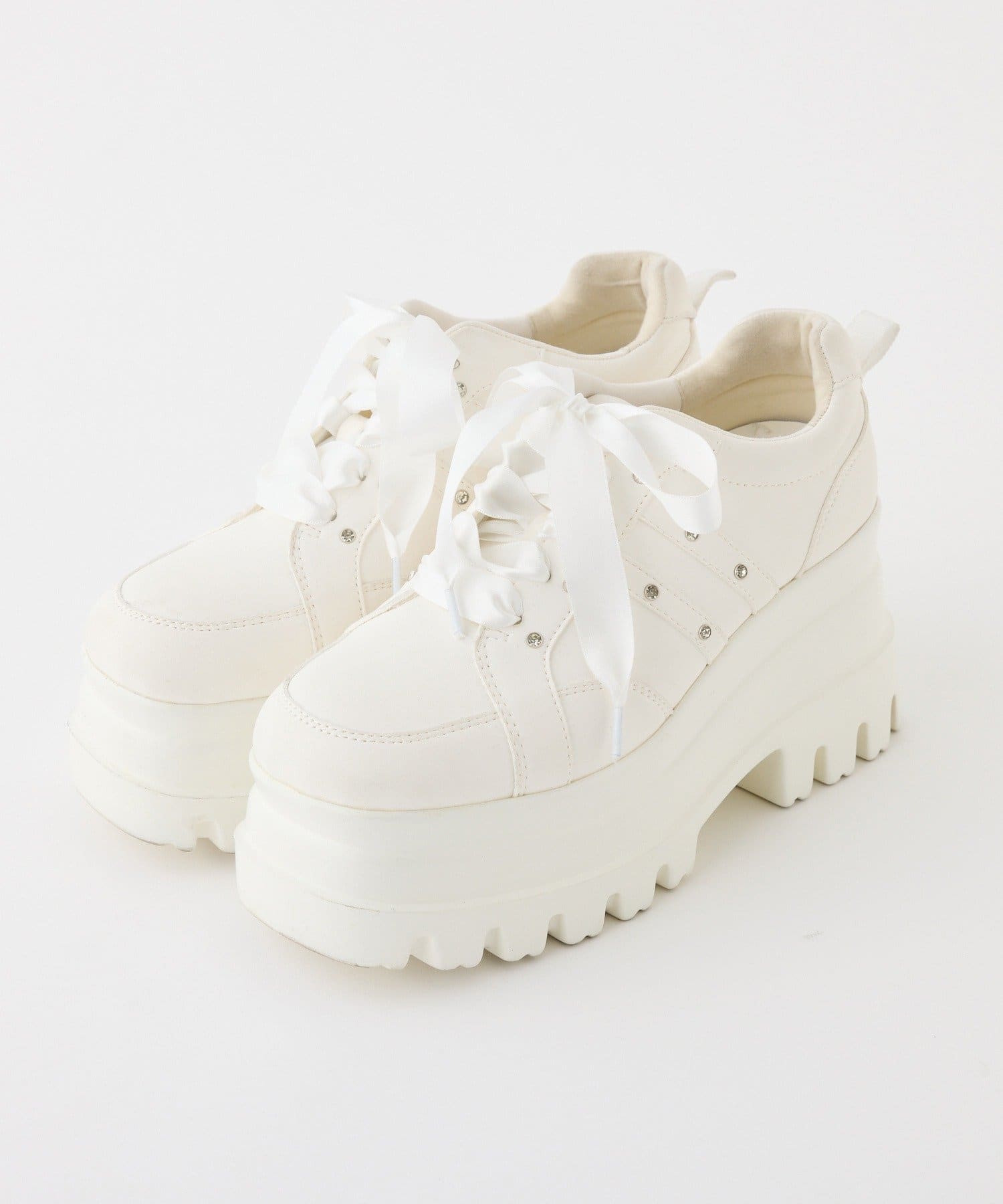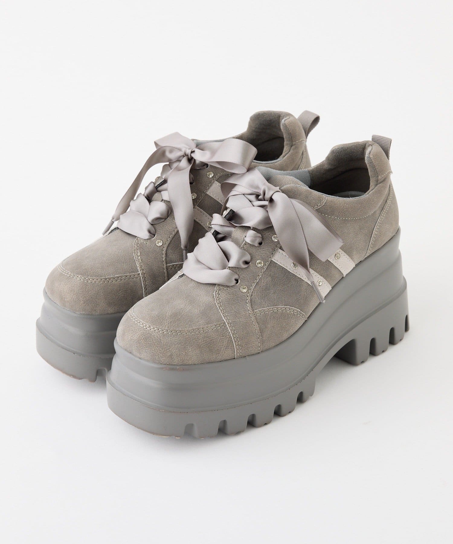 ボリューム感のあるトリプルソールが目を引くヒールスニーカー。