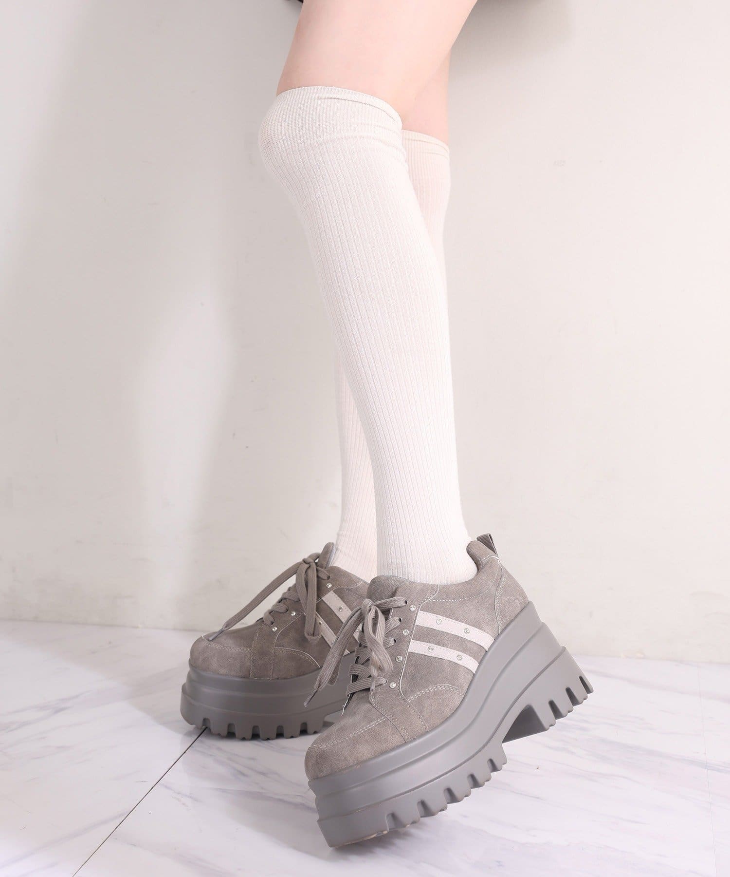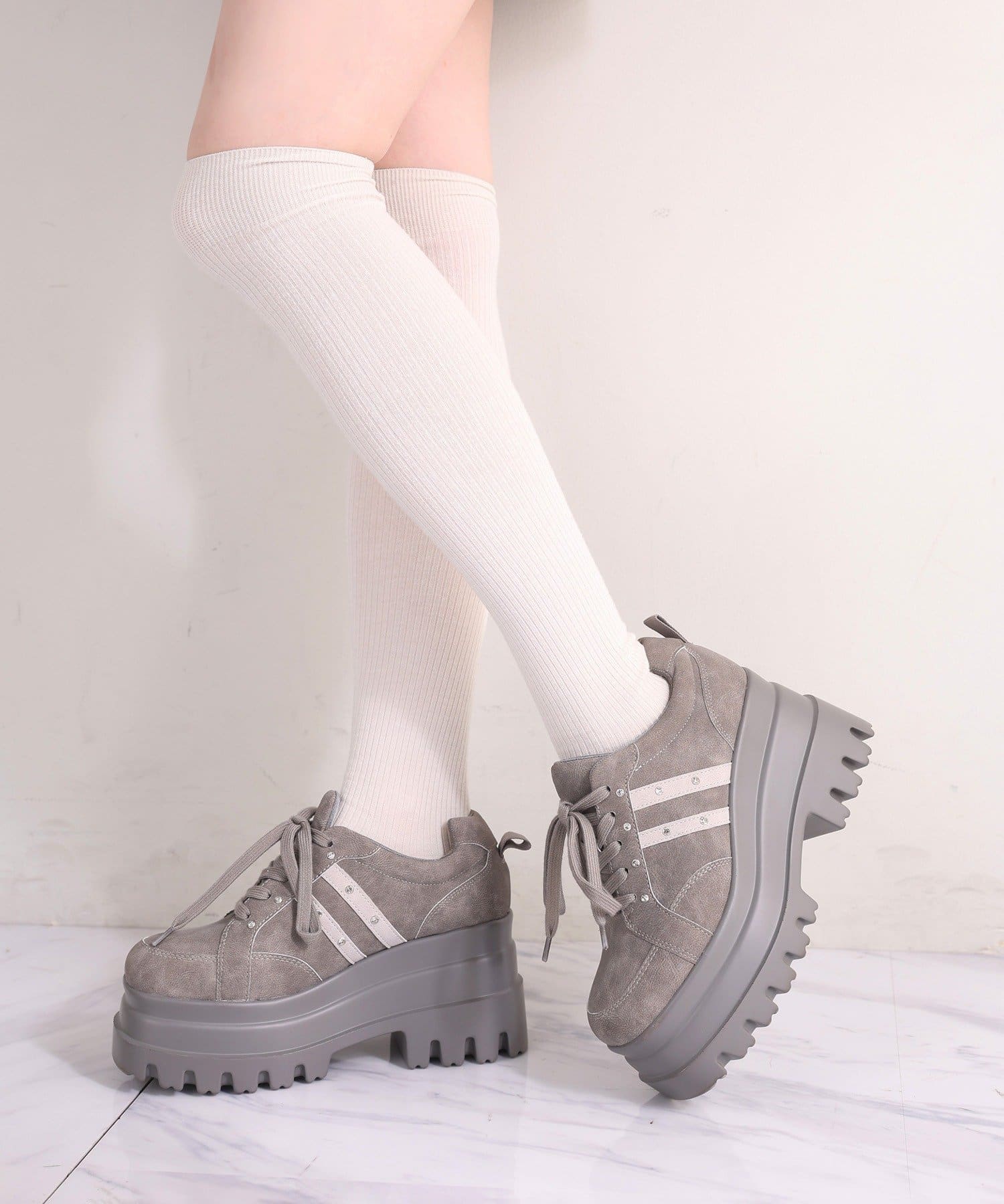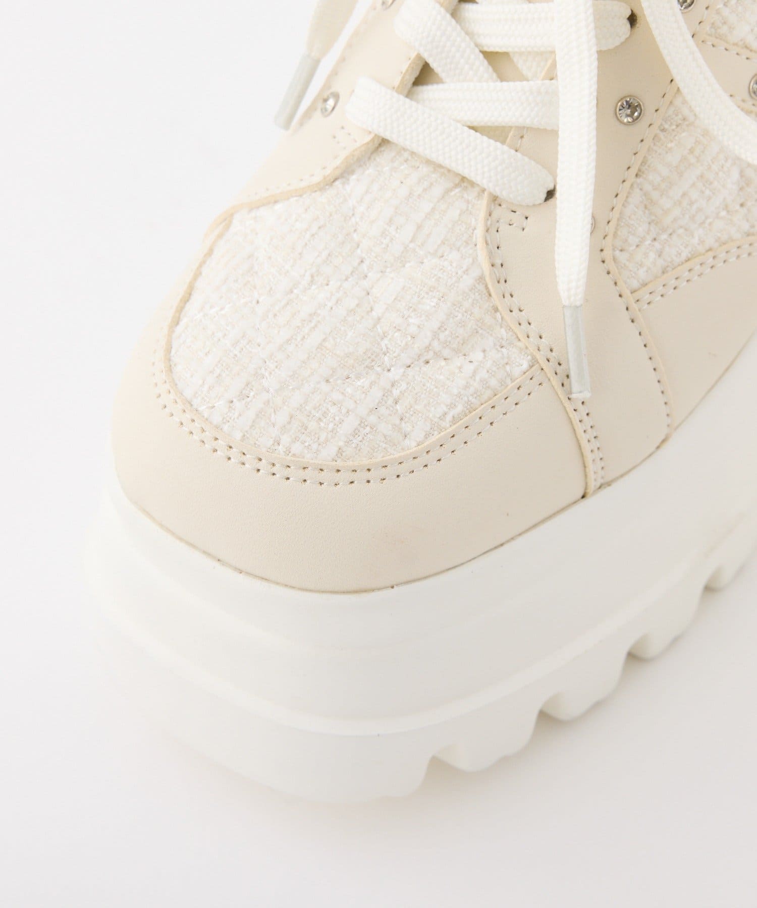 ボリューム感のあるトリプルソールが目を引くヒールスニーカー。