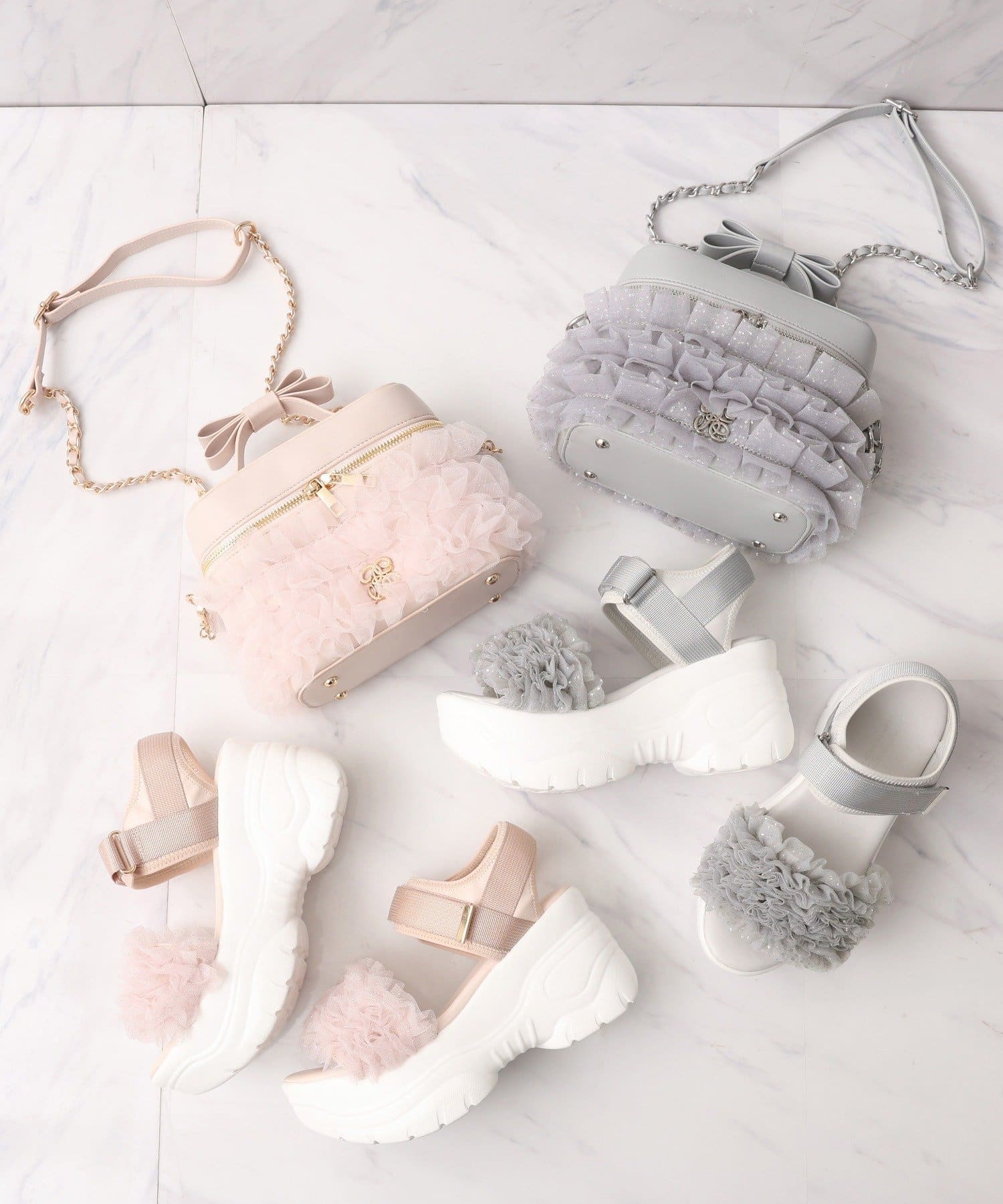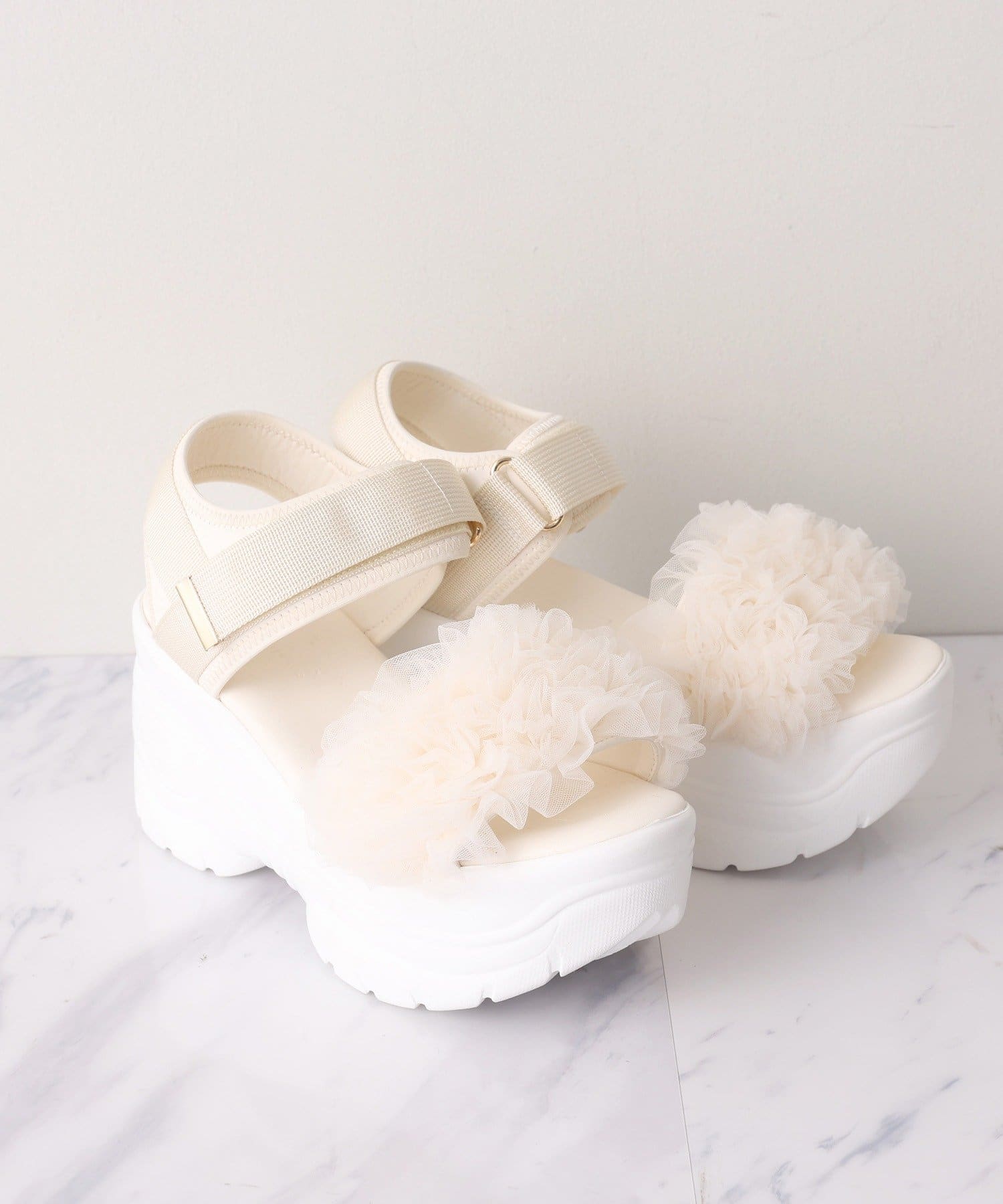 透け感のあるチュールで、スポーティーながらも女性らしい抜け感をプラスしました。