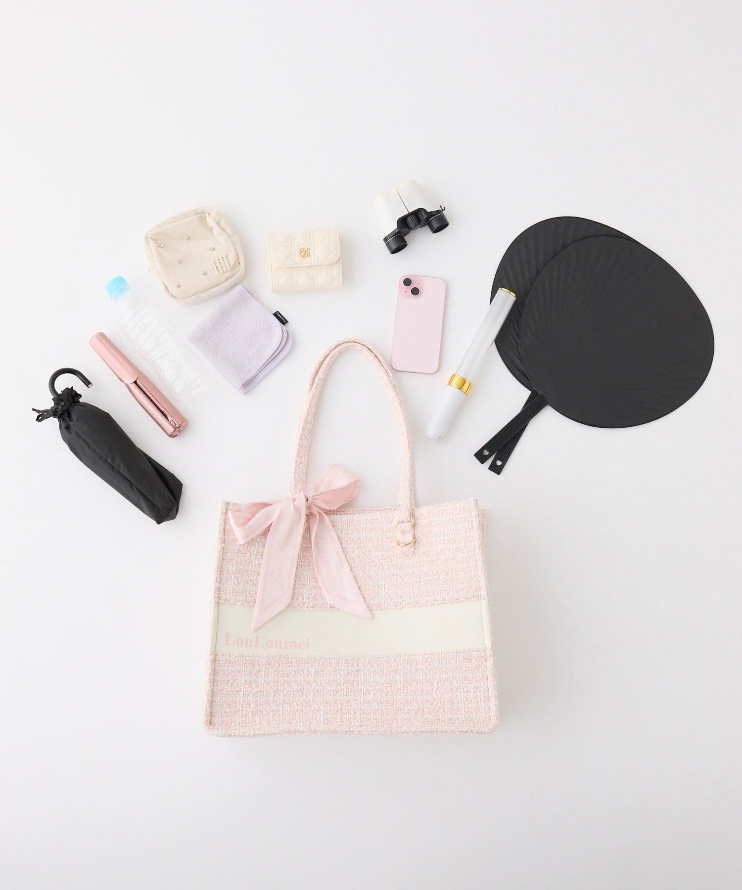 【LouLoumei】スカーフ付きツイードキャリーオントート/自立可能/推し活