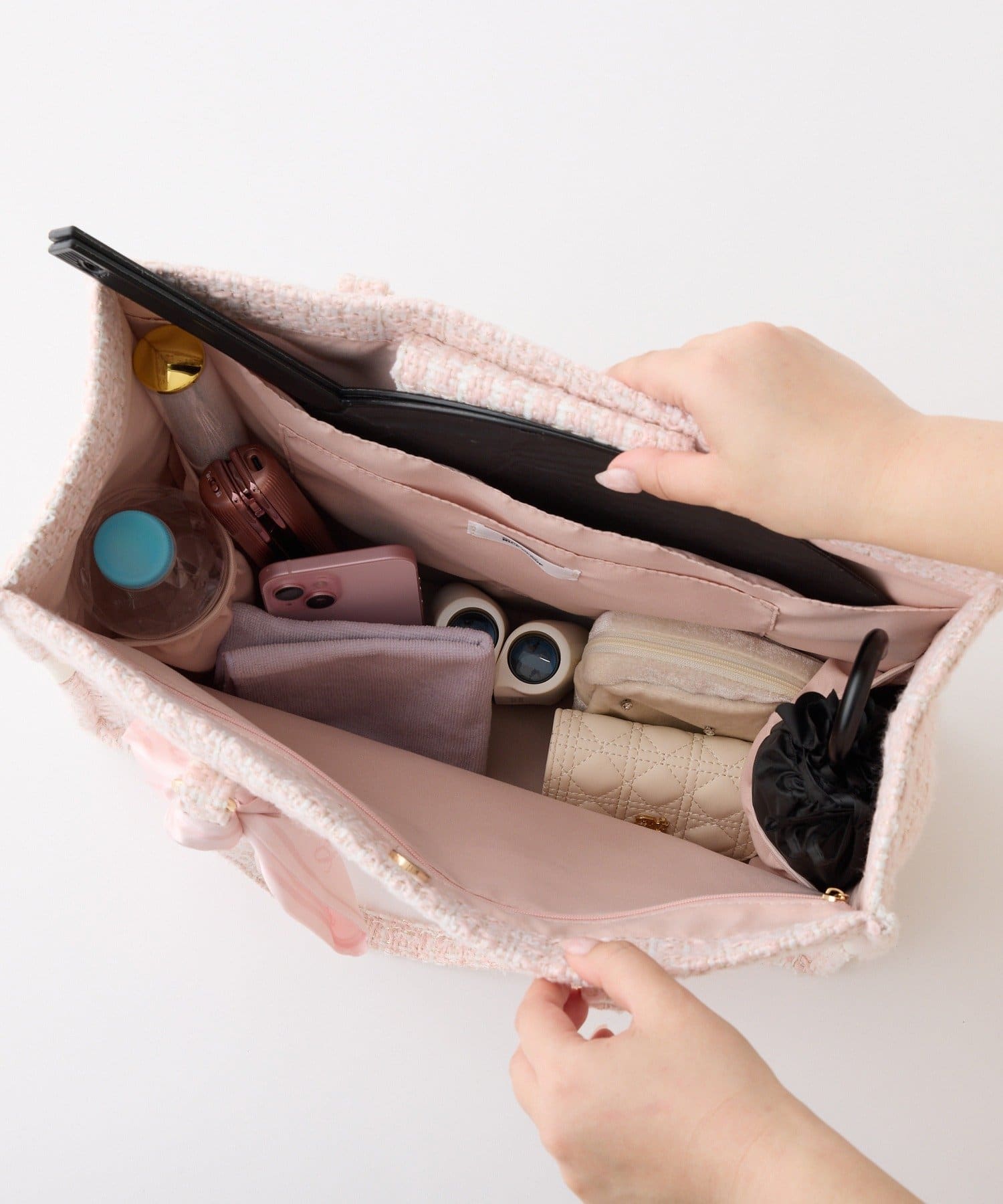 推し活に必須のうちわ、ペンライト、アクスタやトレカなどがすっぽり入る大きさのツイードバッグ◎