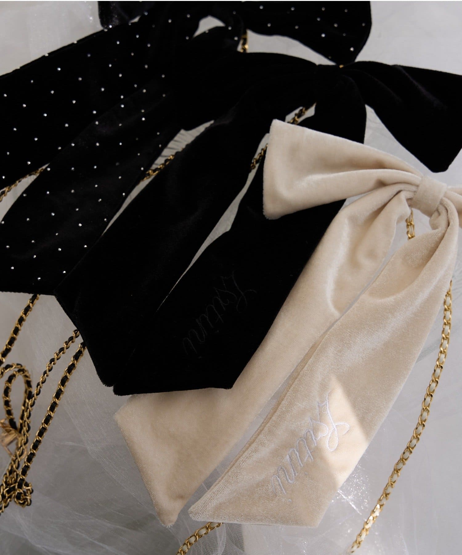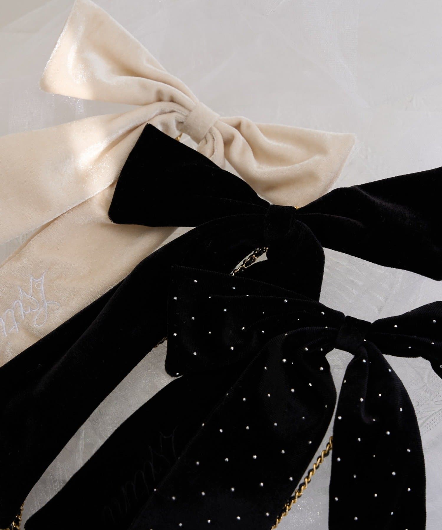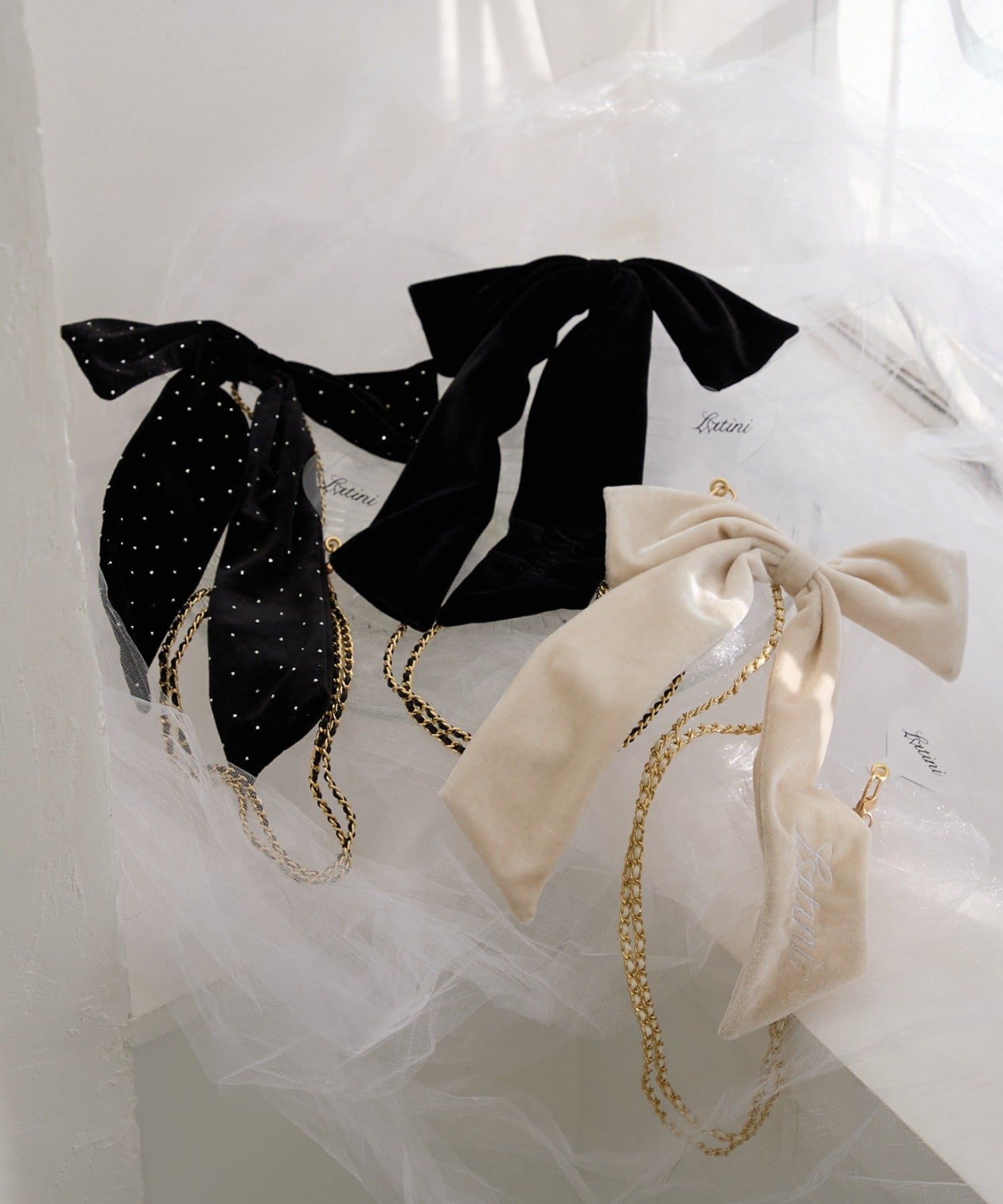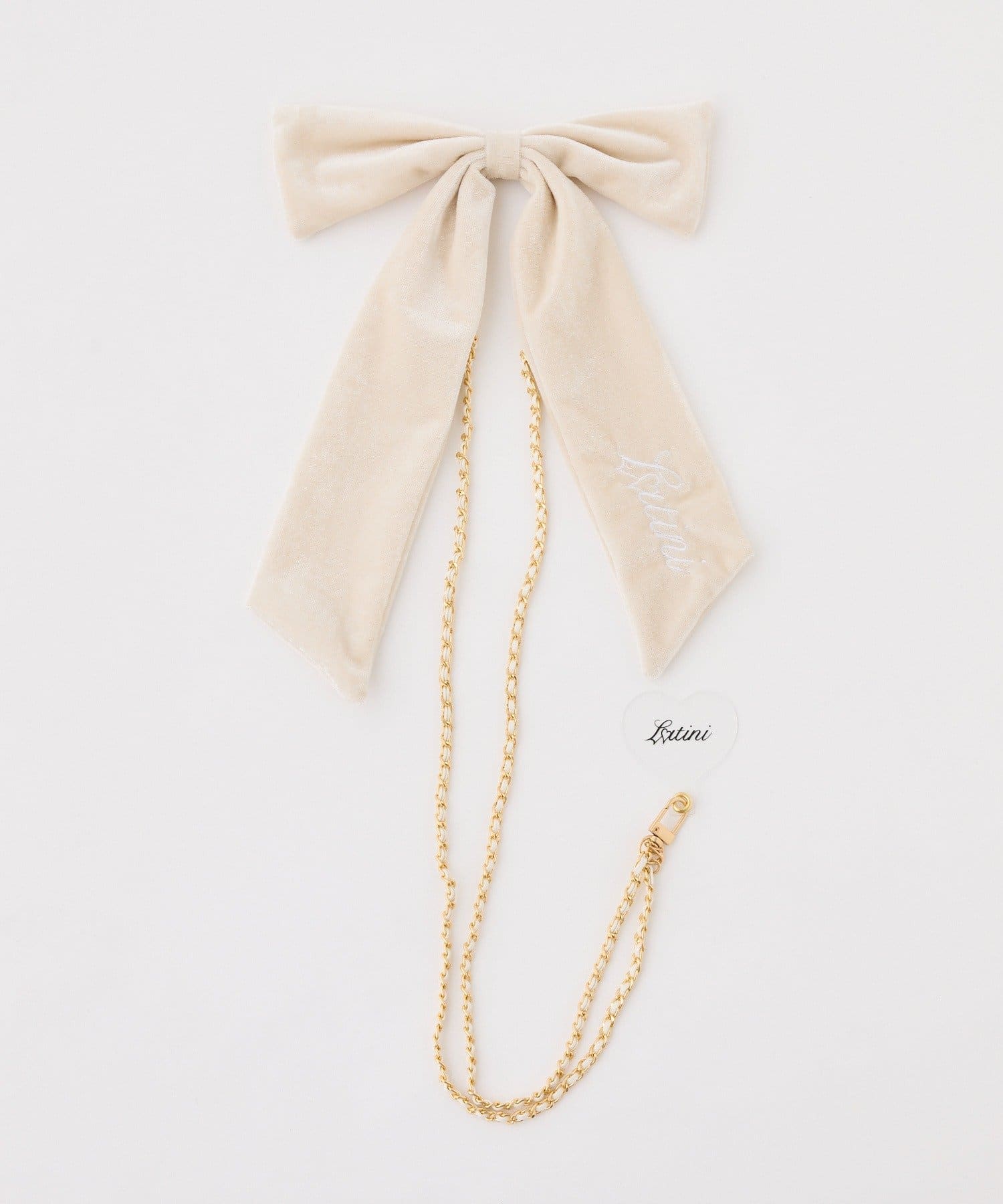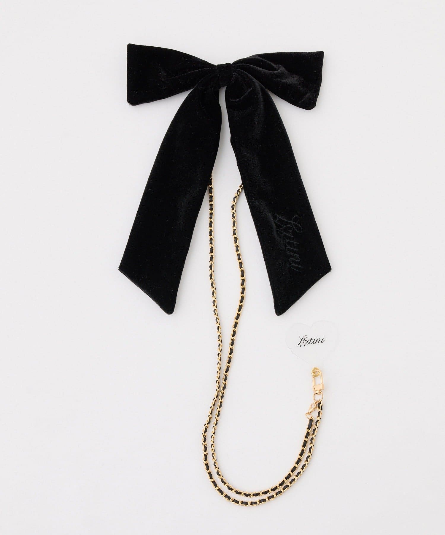 存在感たっぷりの大きめリボンが目を惹く、ガーリーなスマホショルダー。