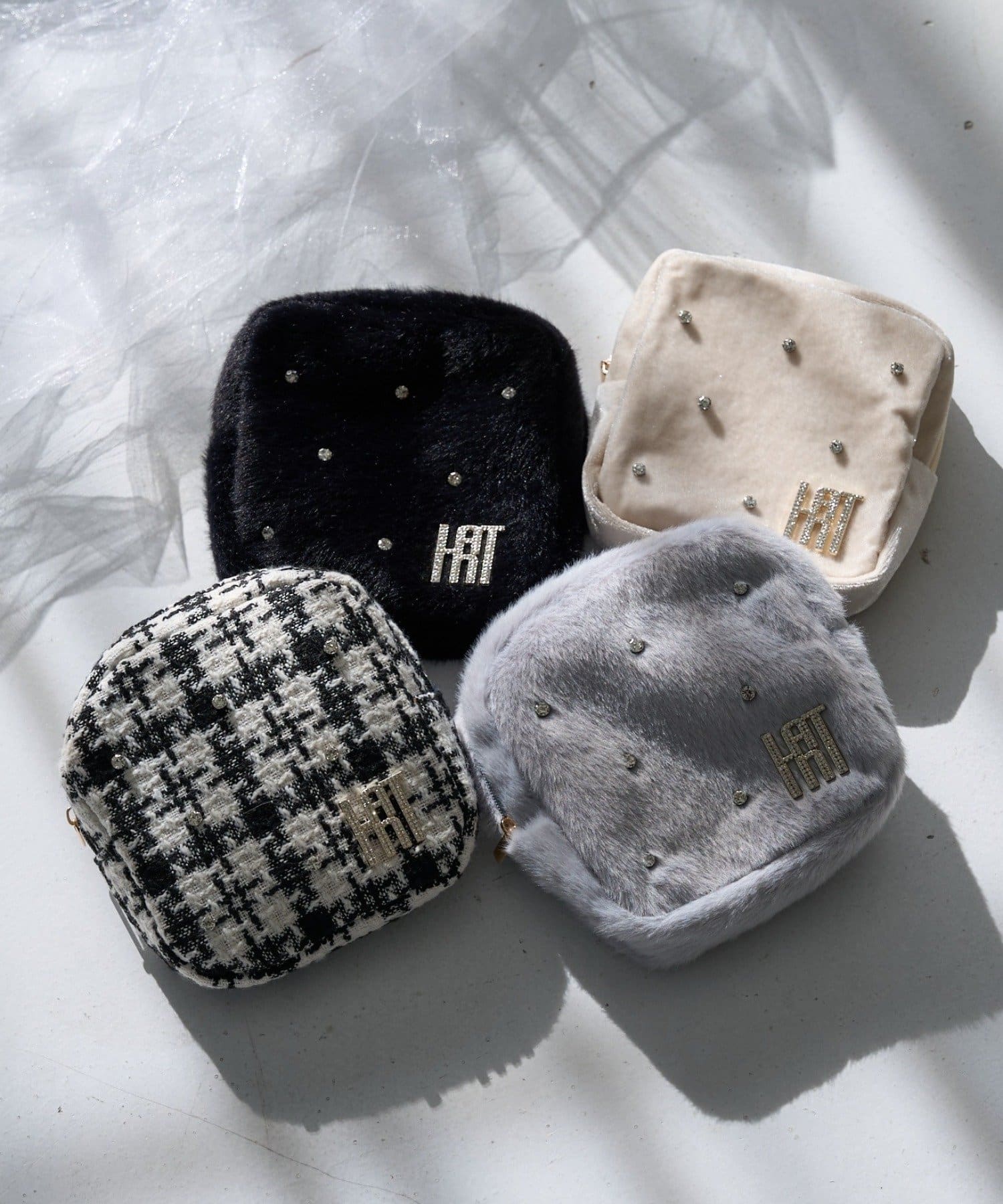 ふわふわのファー素材がシーズンムードを高めてくれるスクエア型ポーチ。