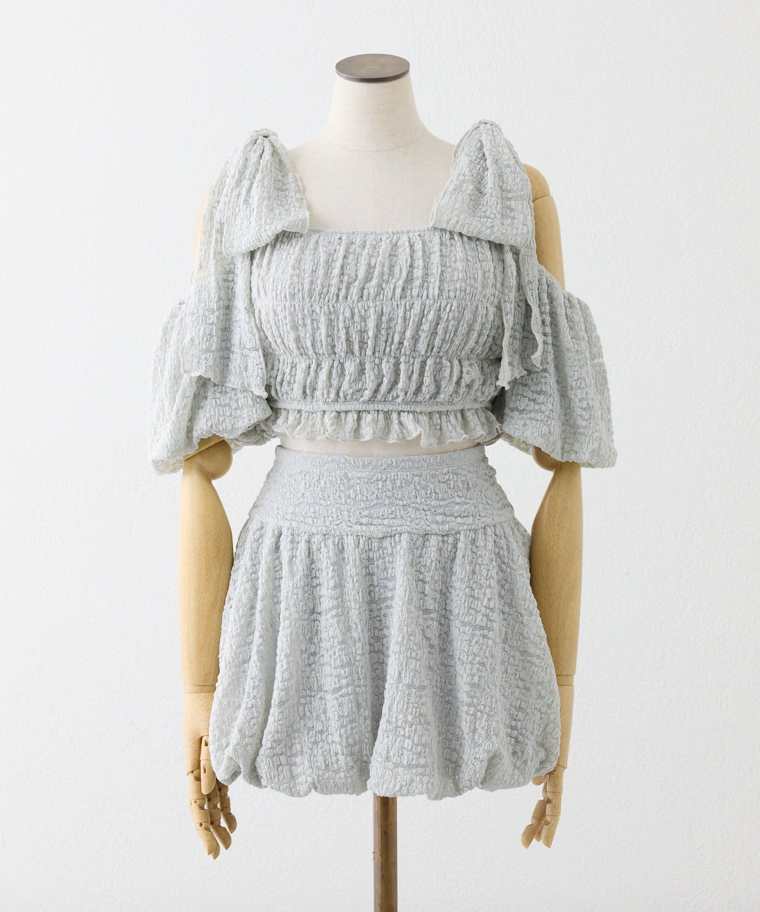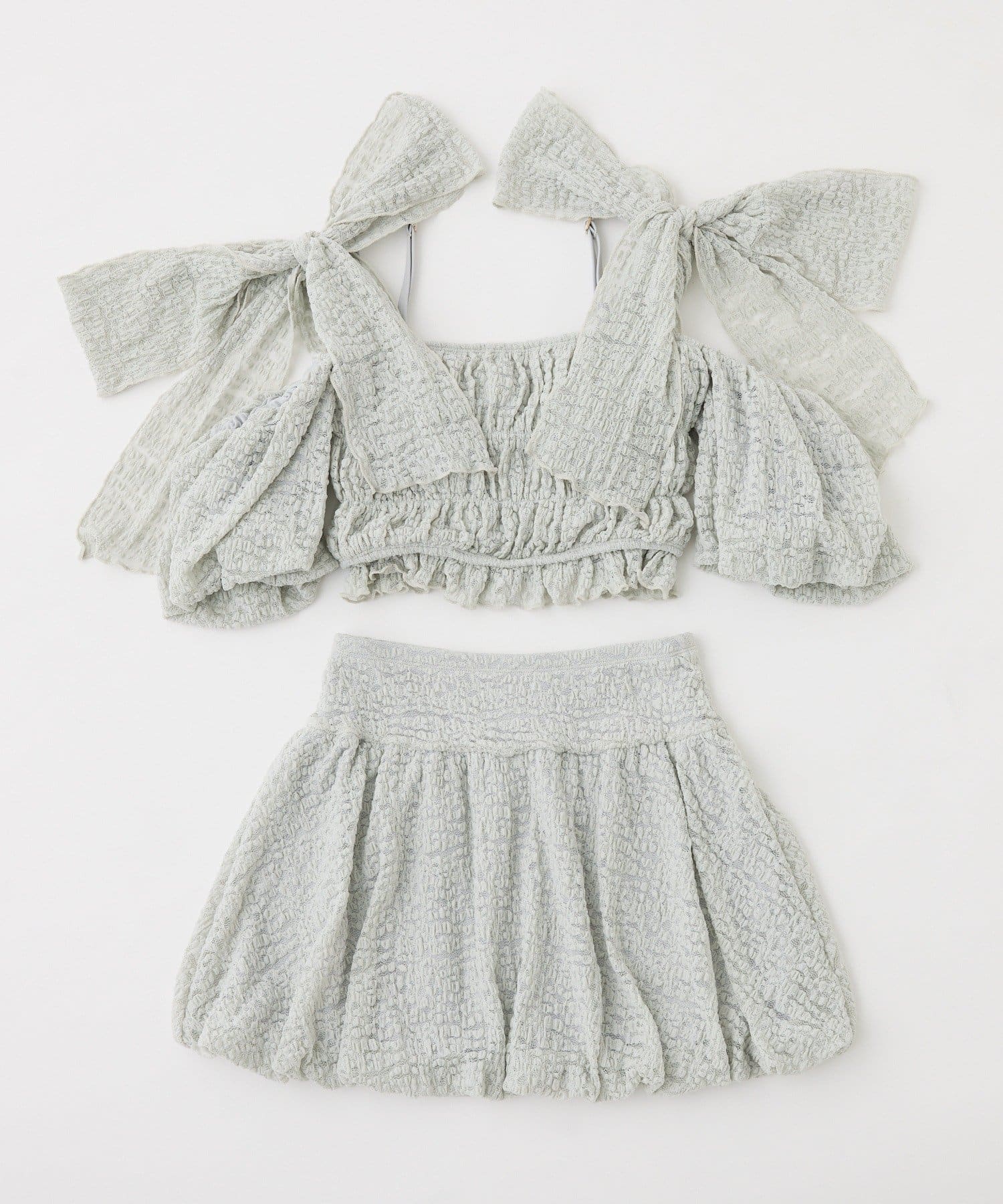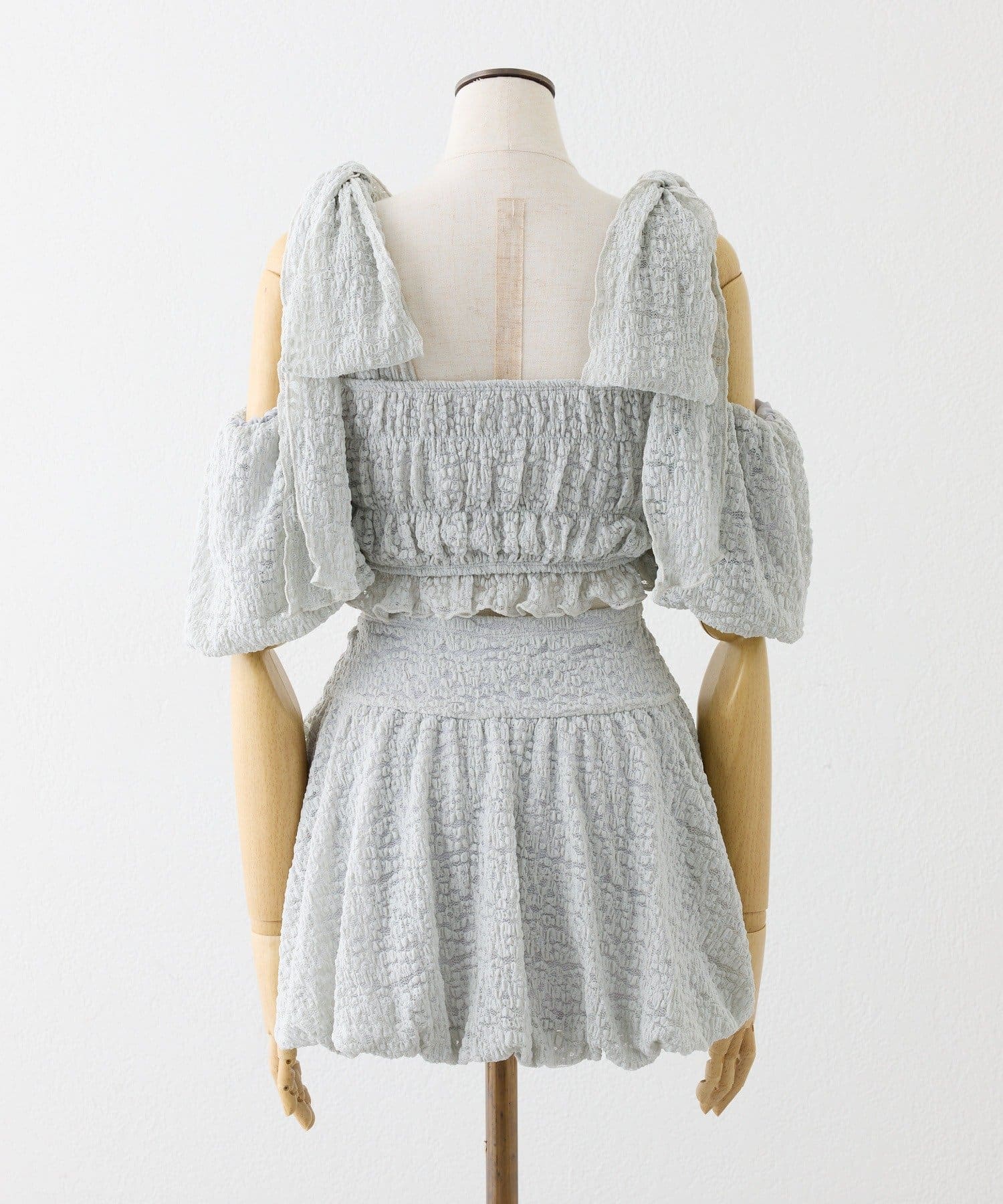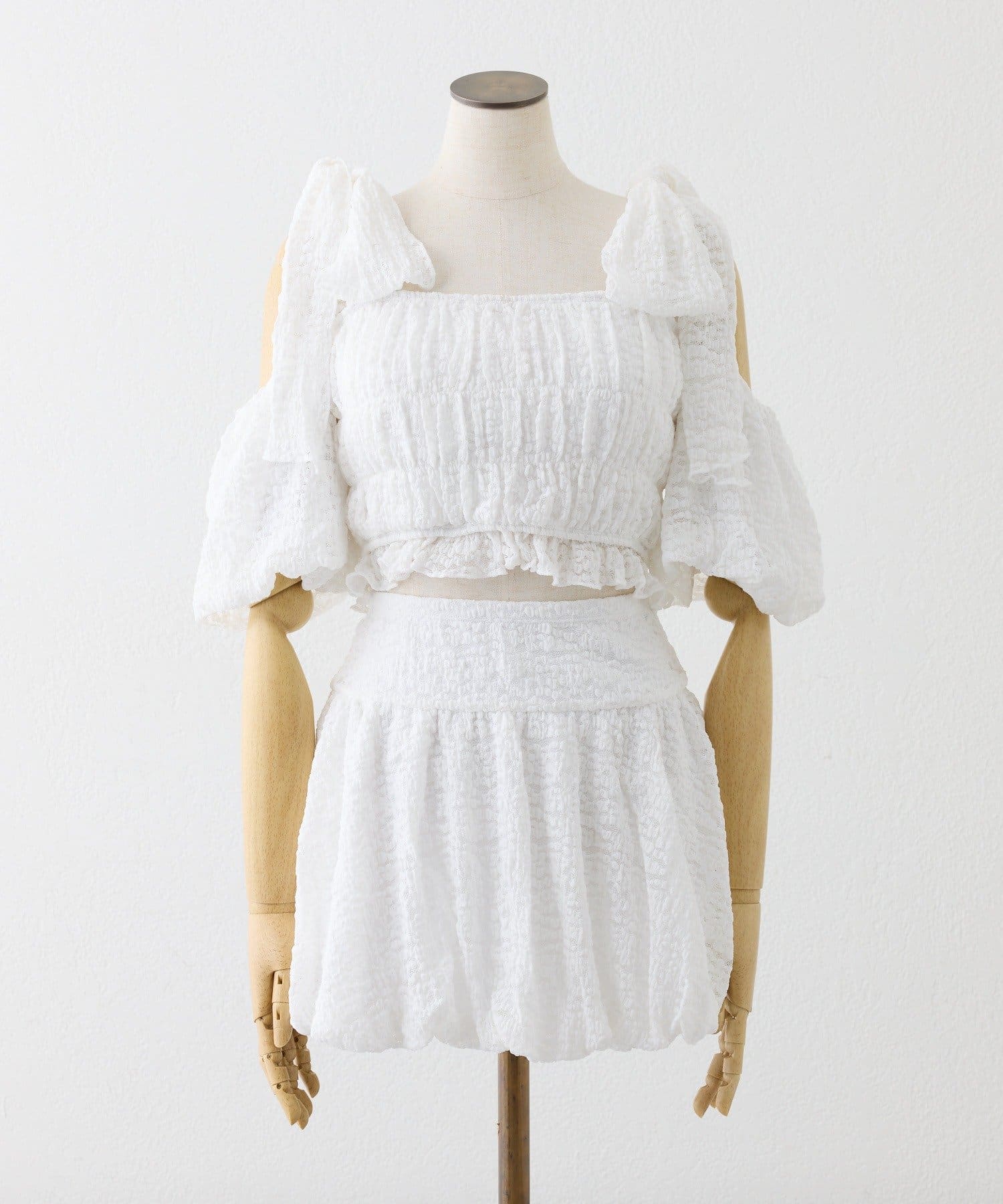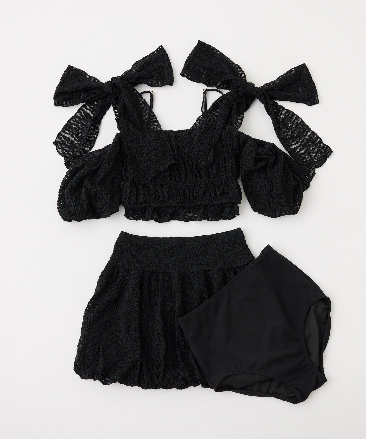 swimwear/シャーリングオフショル-バルーンミニスカート(3点セット)