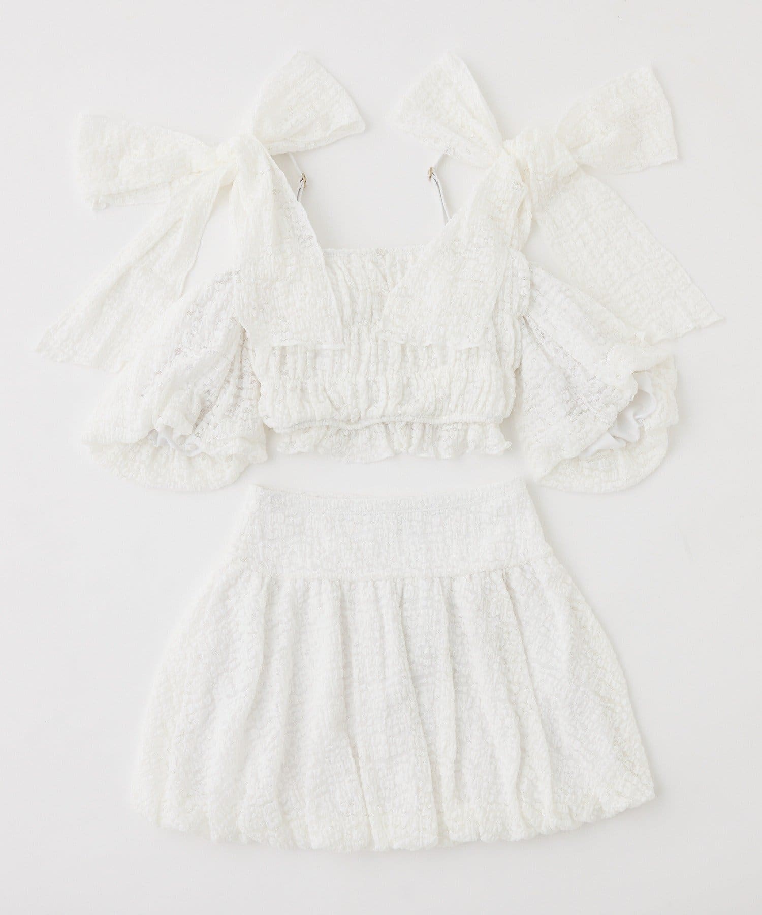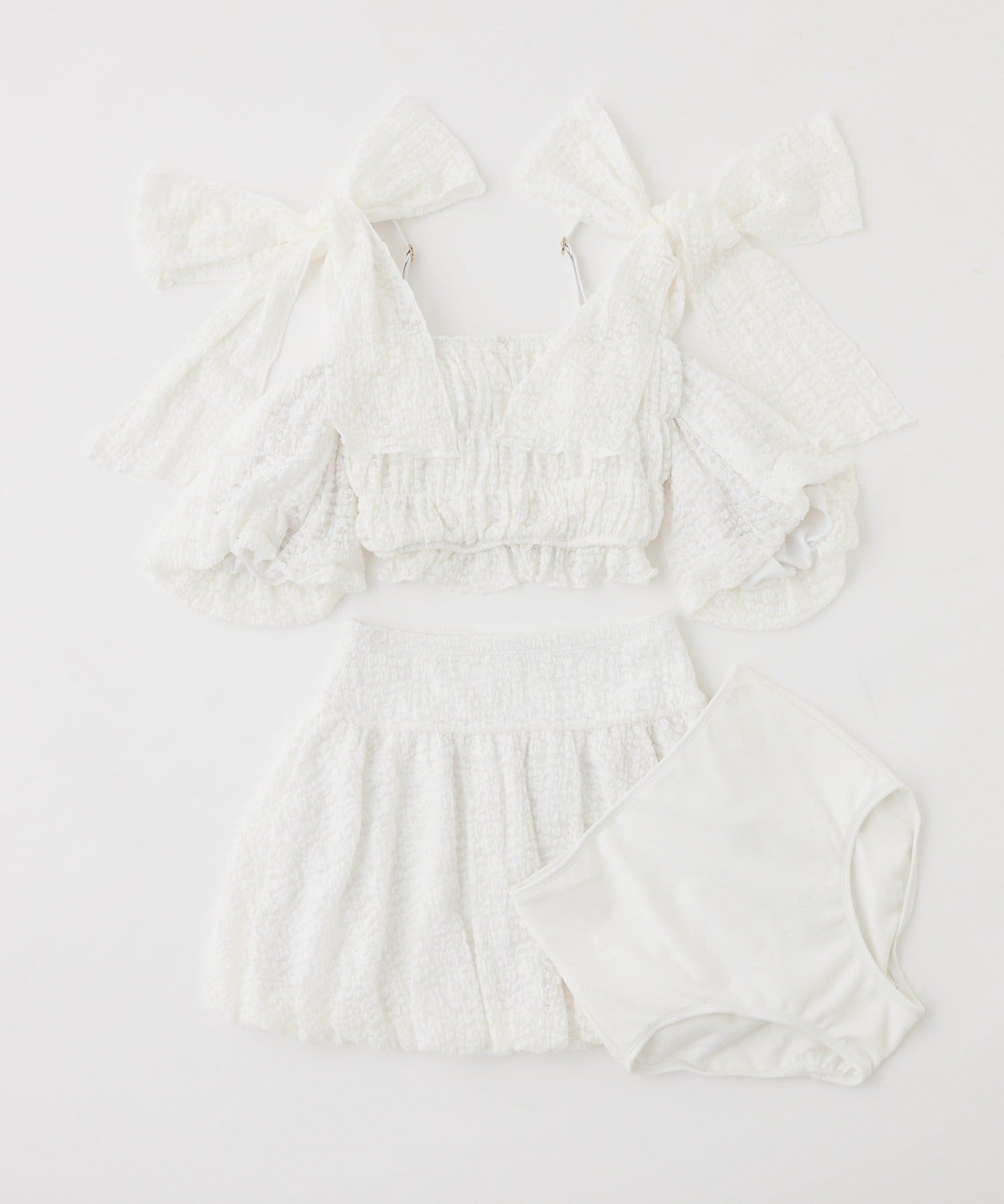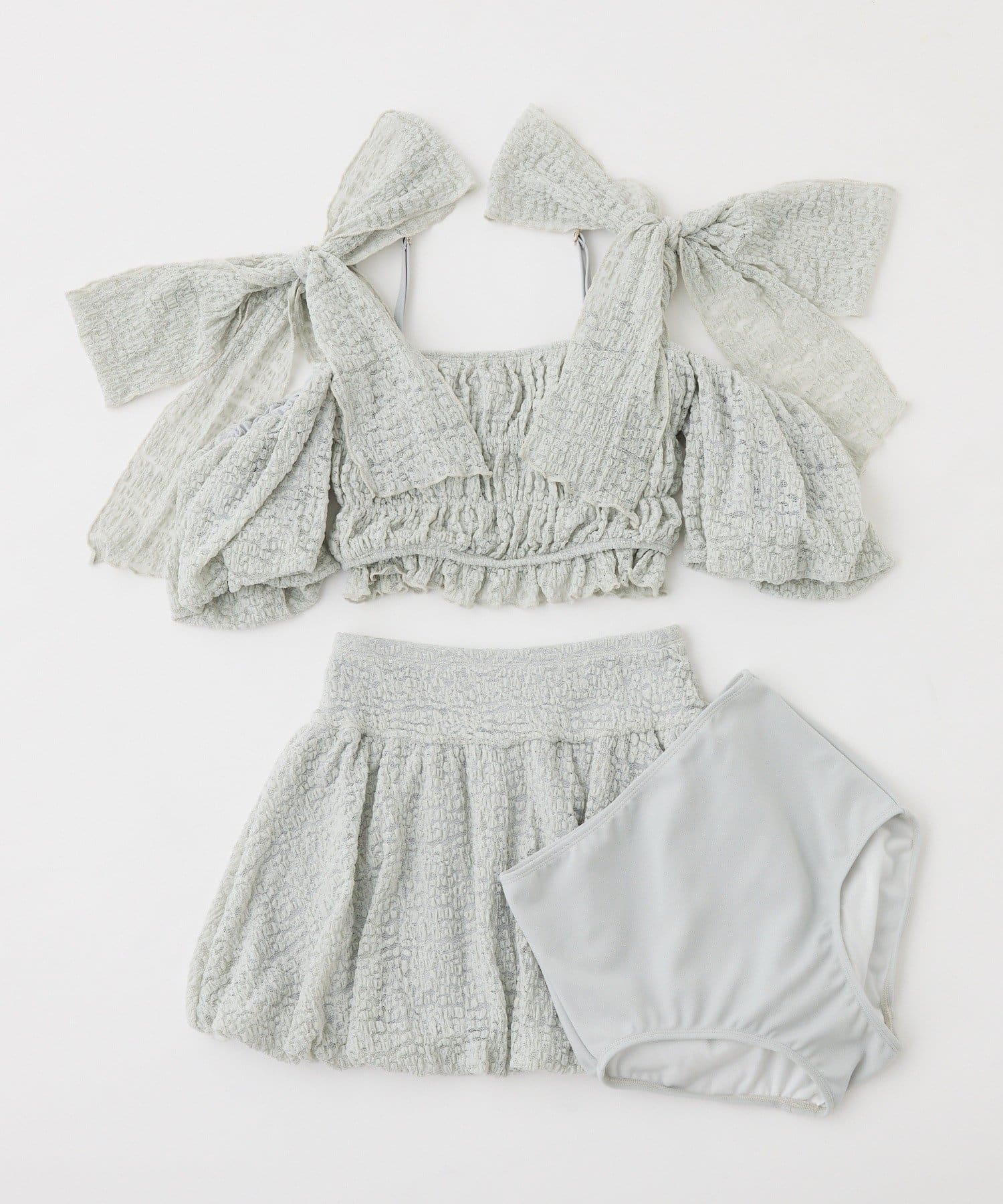 • one after another NICE CLAUP(ワンアフターアナザー ナイスクラップ) swimwear/シャーリングオフショル-バルーンミニスカート(3点セット)