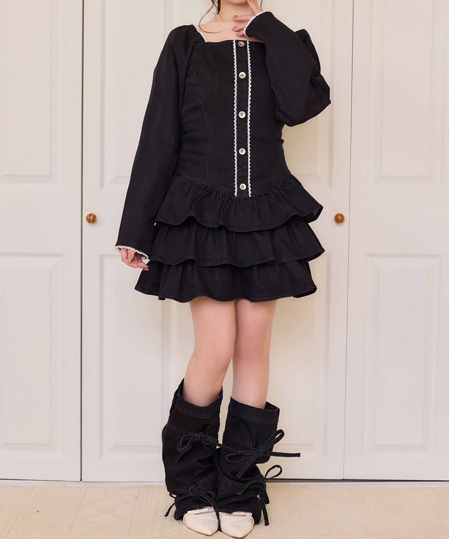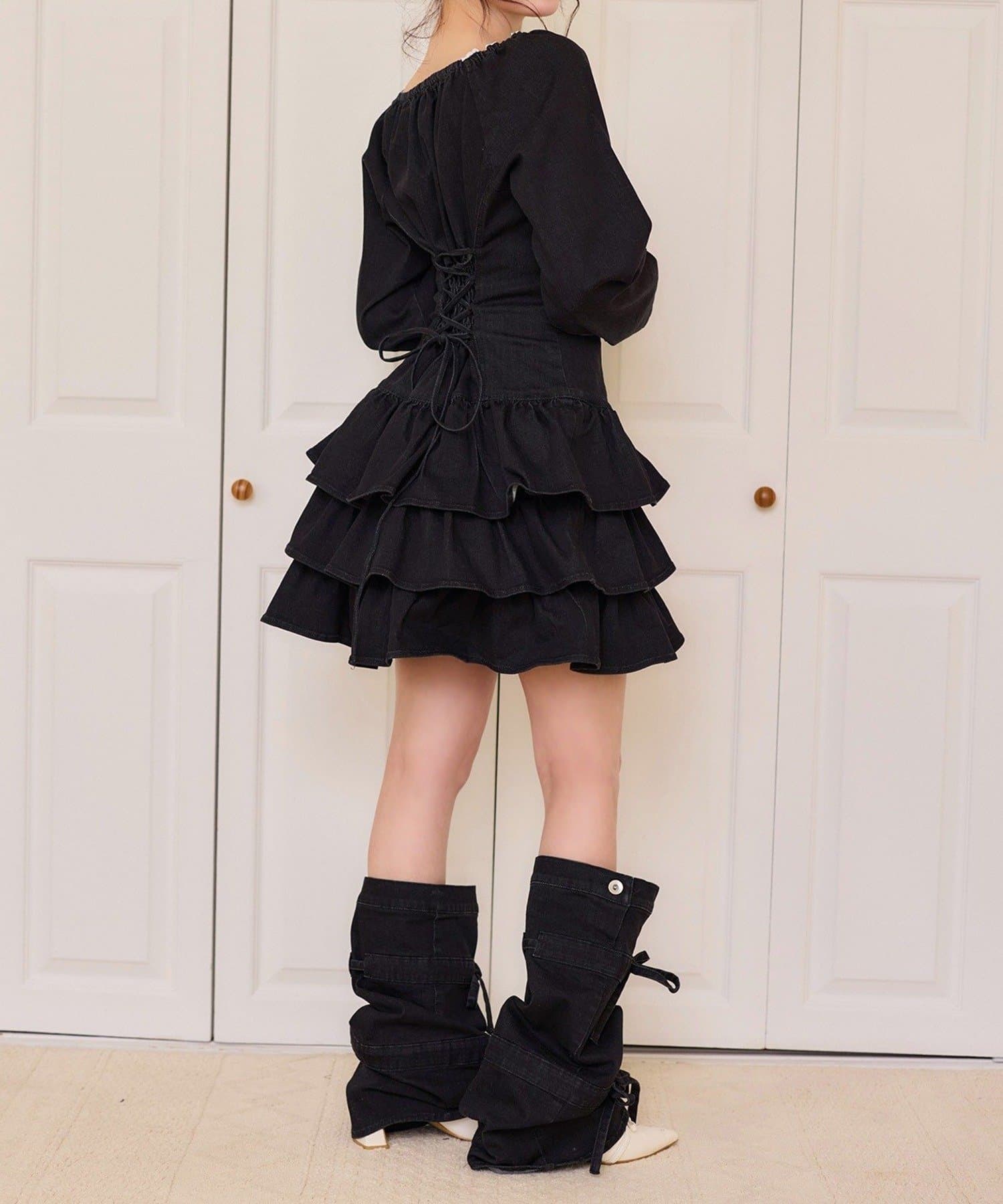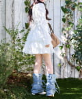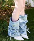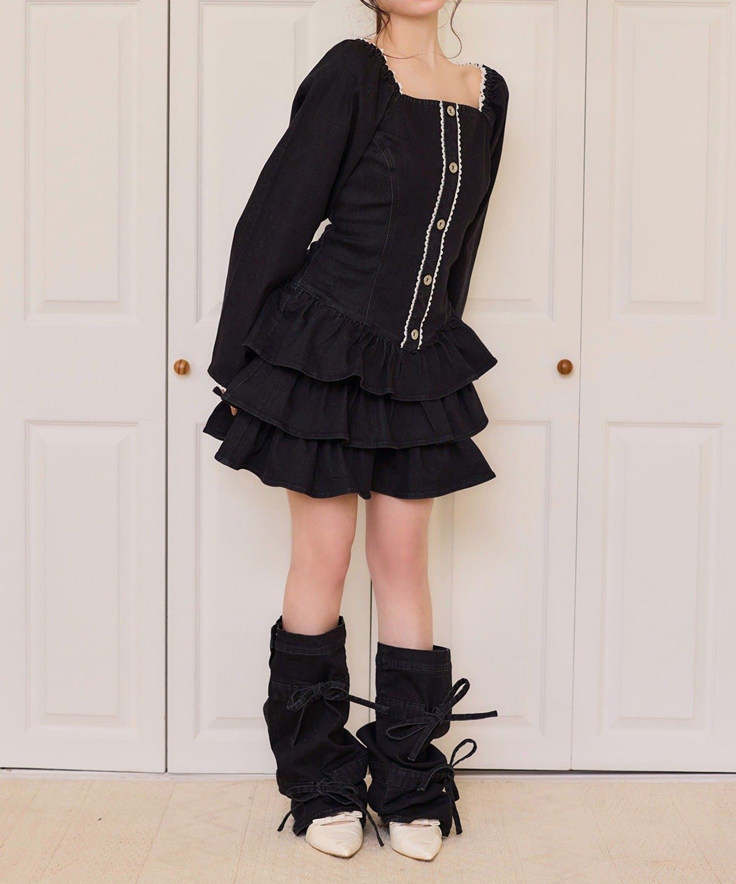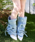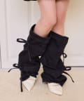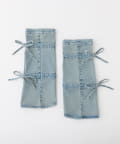 デニム素材にリボンデザインをプラスした、コーデのアクセントになるレッグウォーマー。