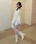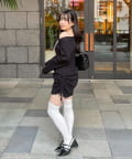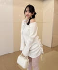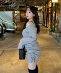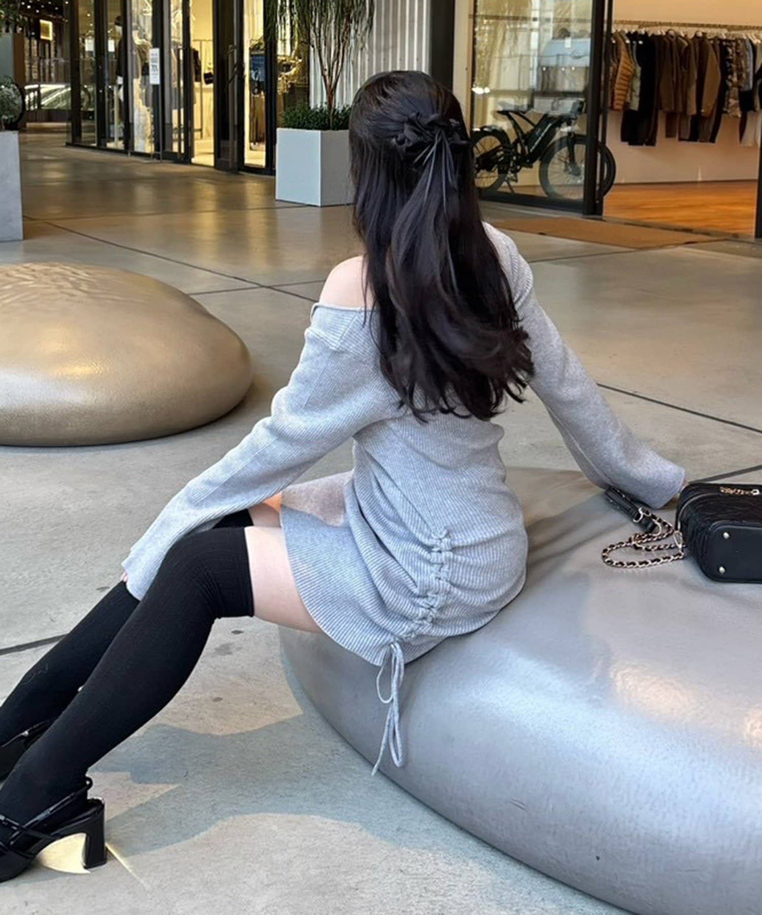 ワンピースはサイドのドロストでシルエット調整ができ、スタイルアップも叶います。