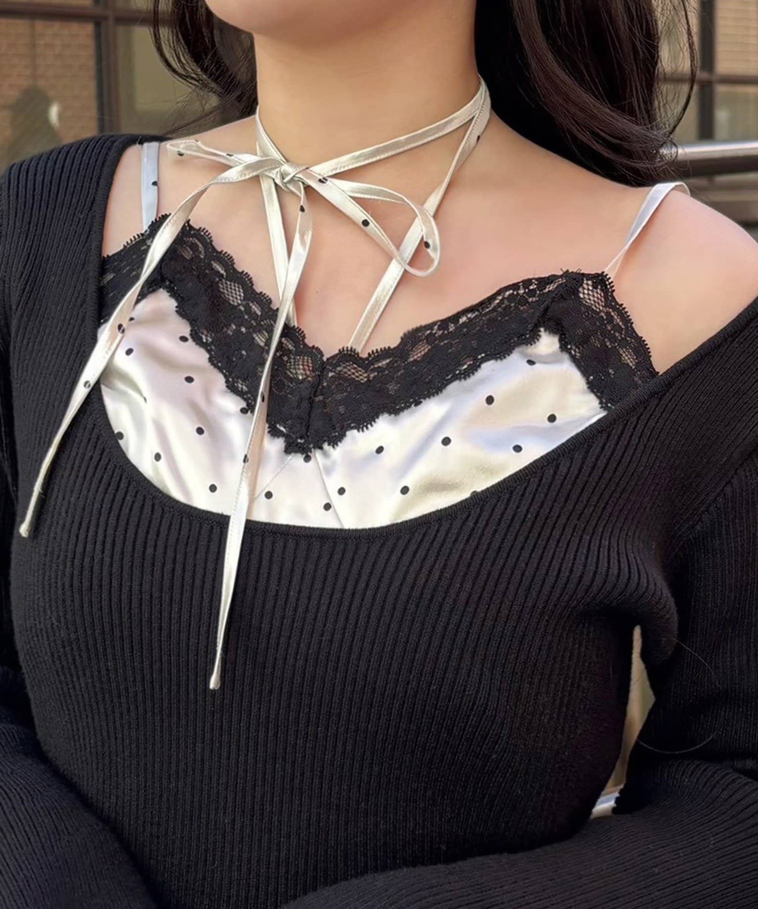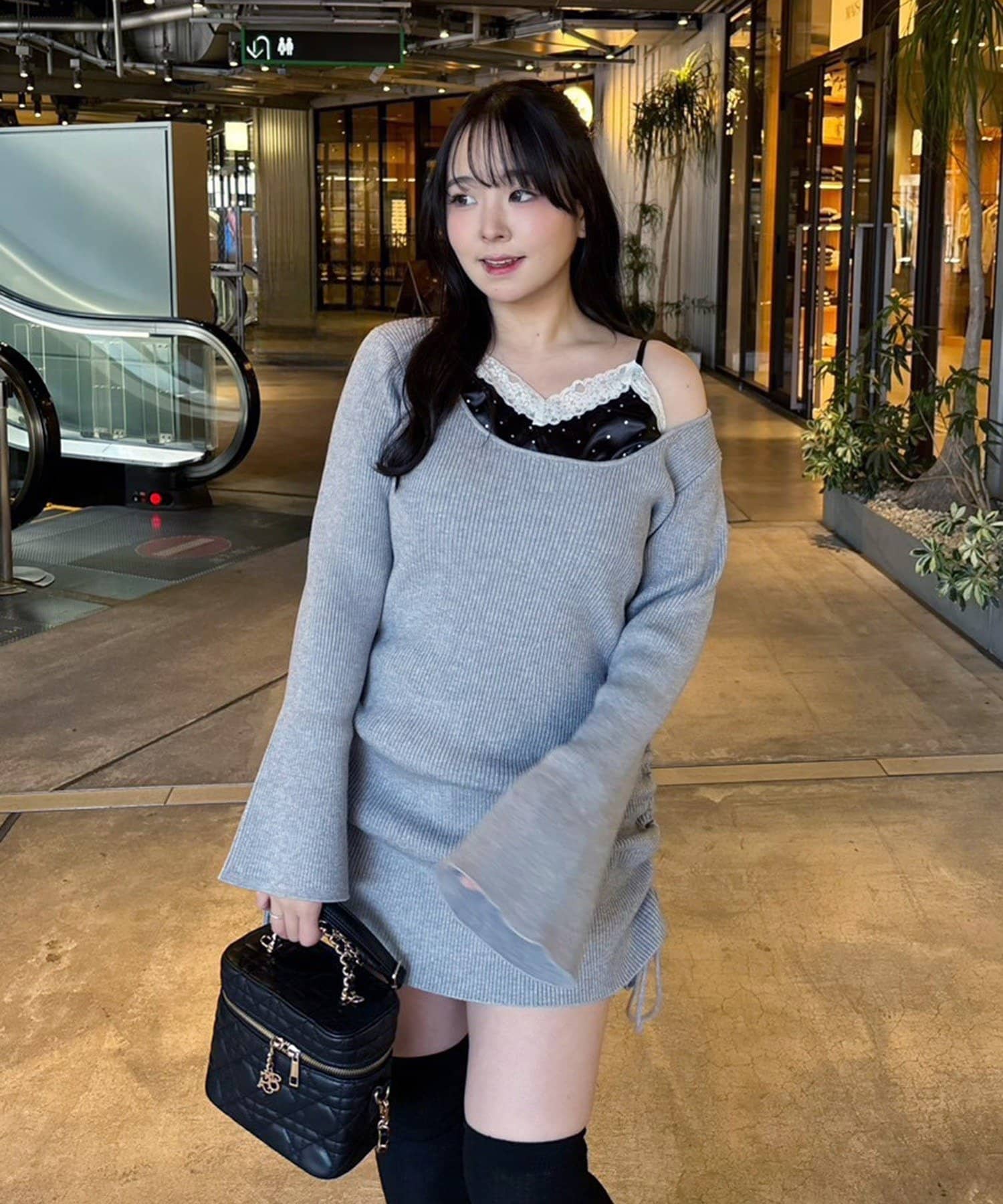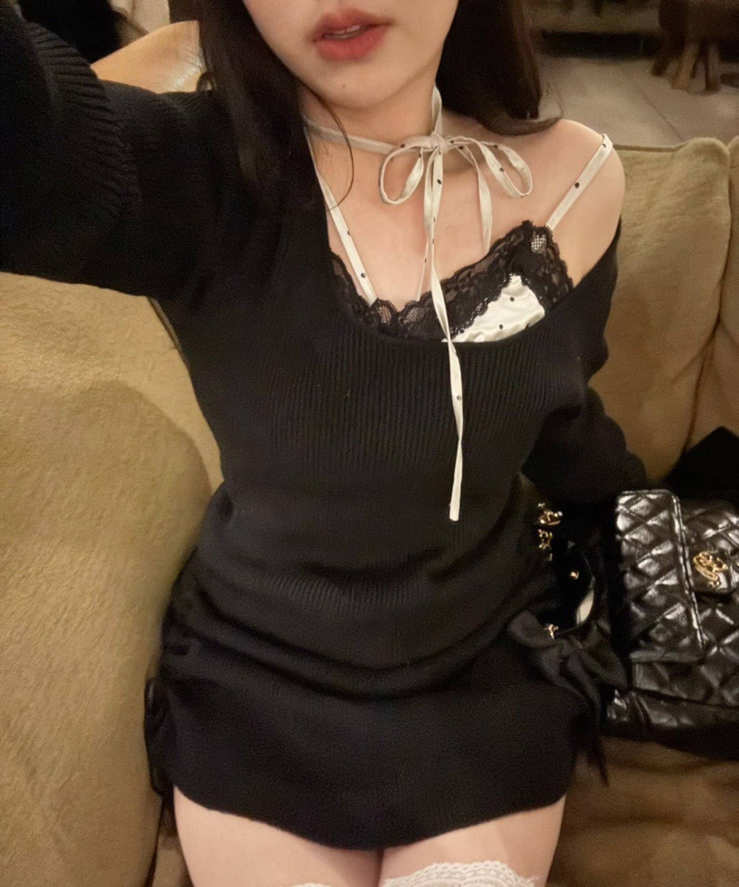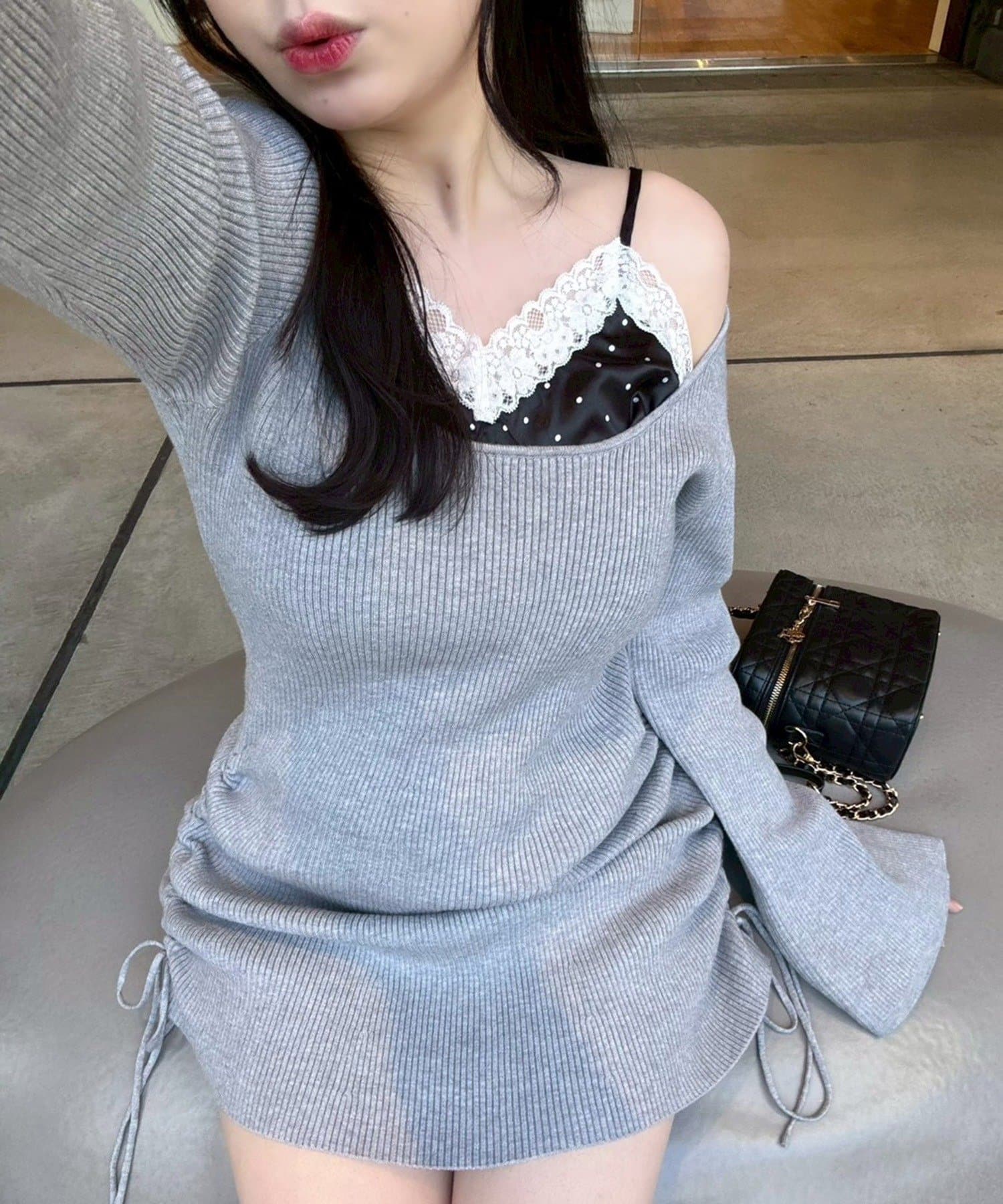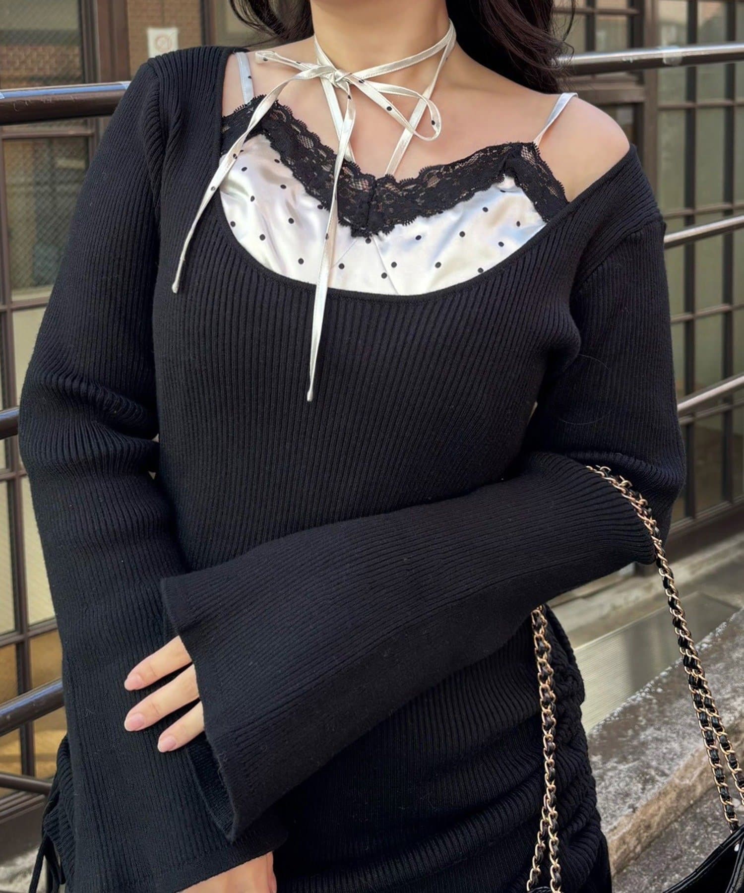 【omiyu企画】レースサテンキャミSETニットミニワンピ