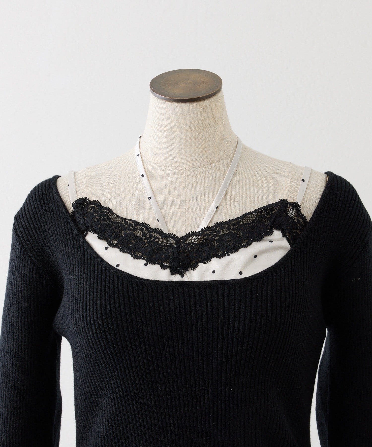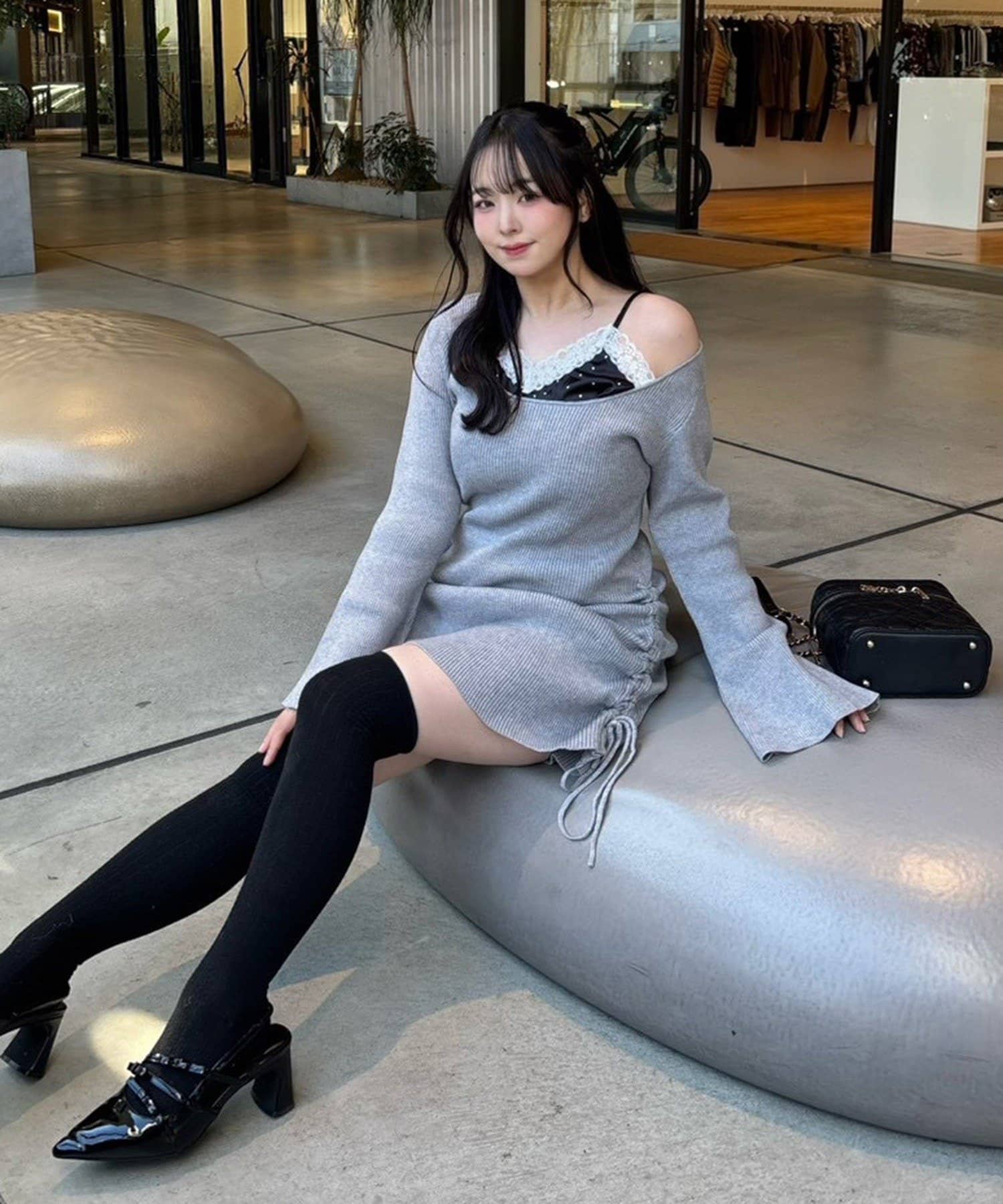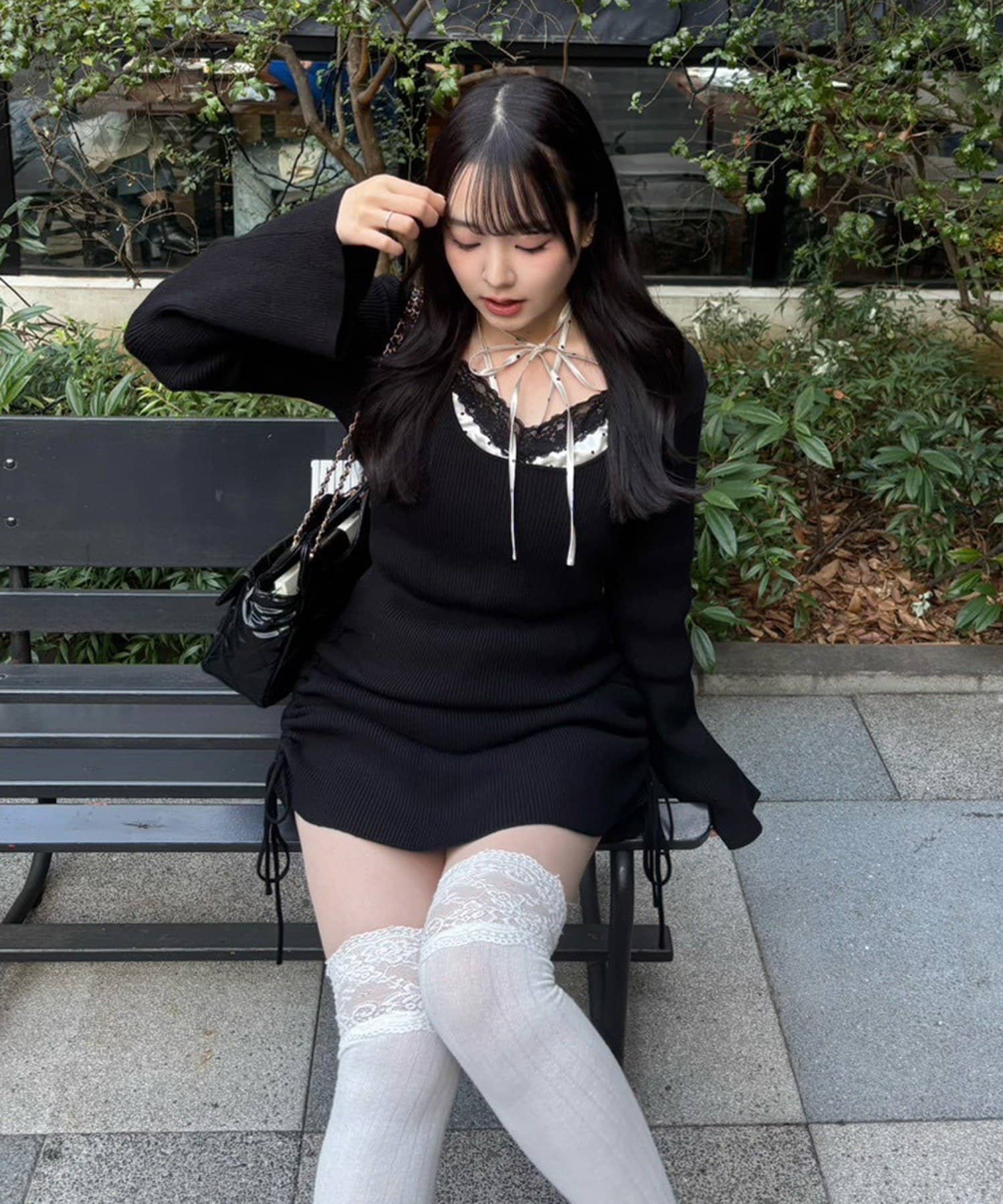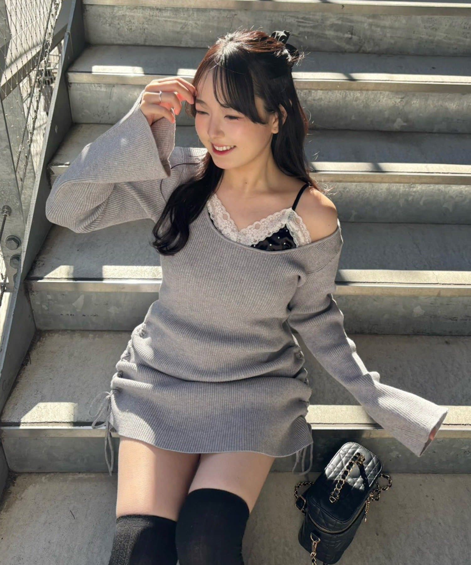 【omiyu企画】レースサテンキャミSETニットミニワンピ