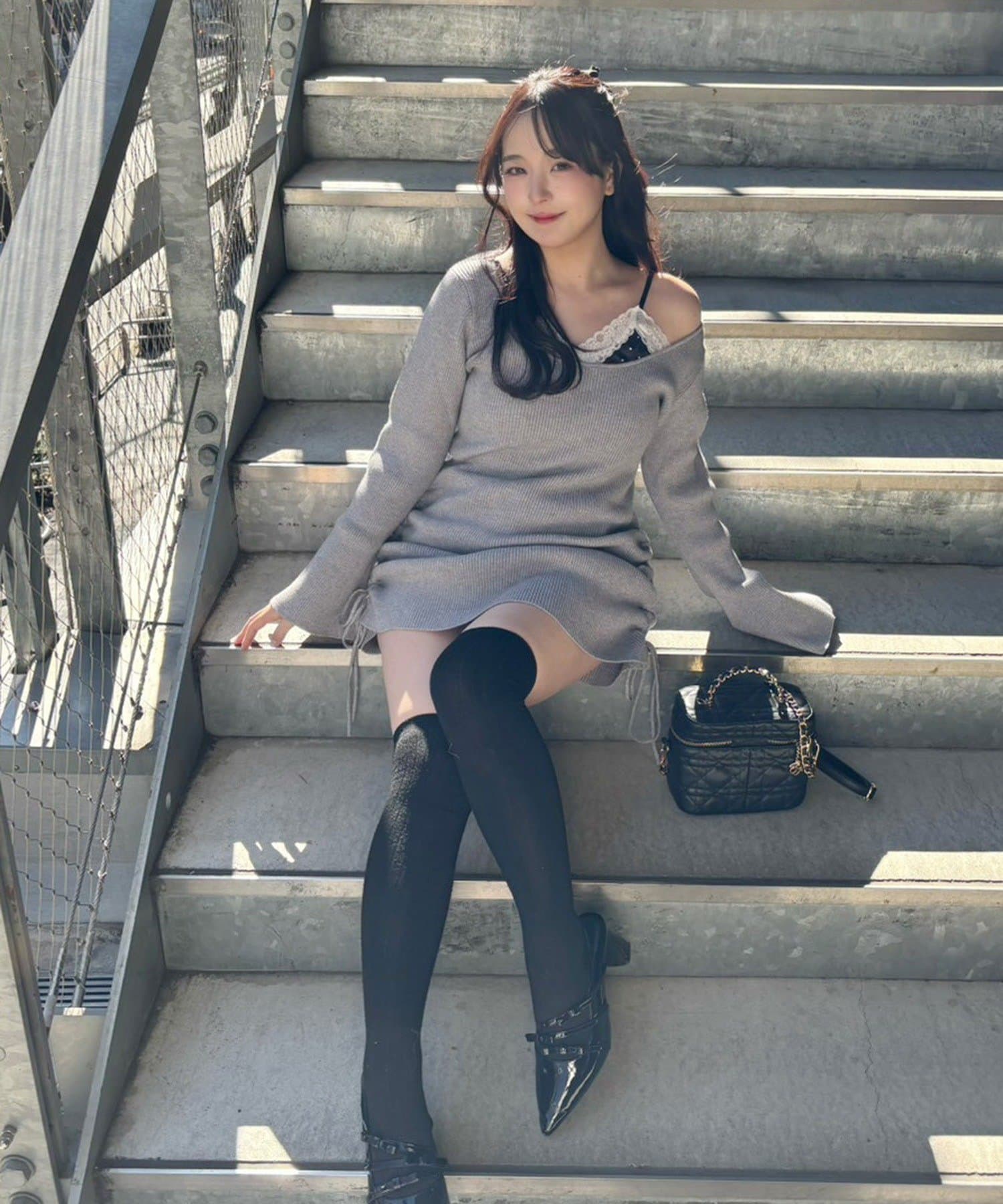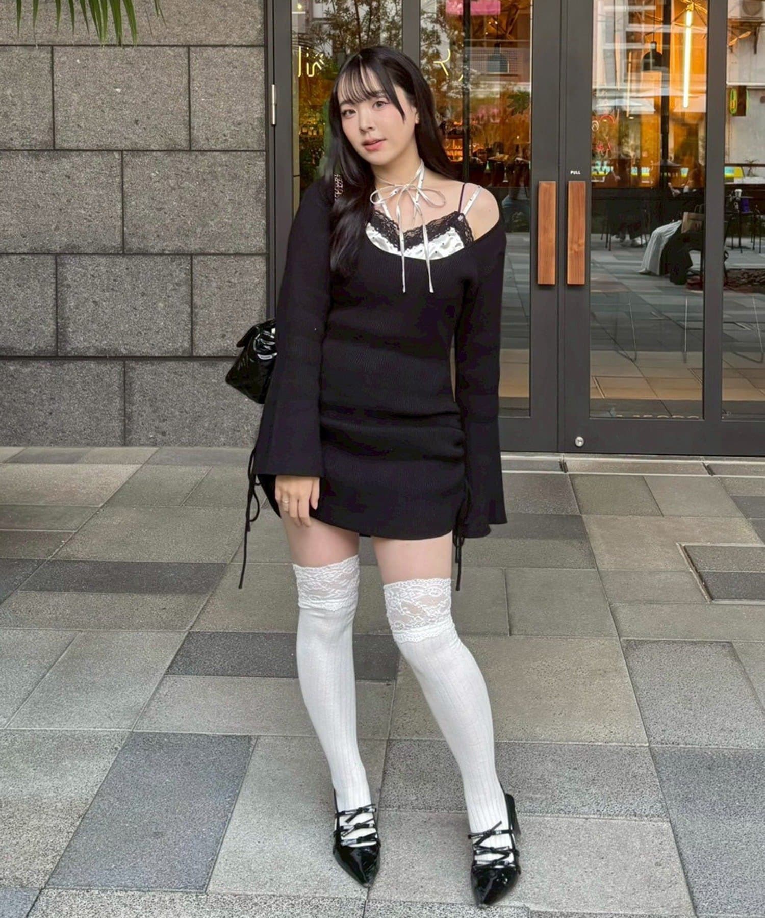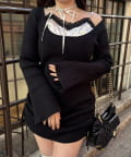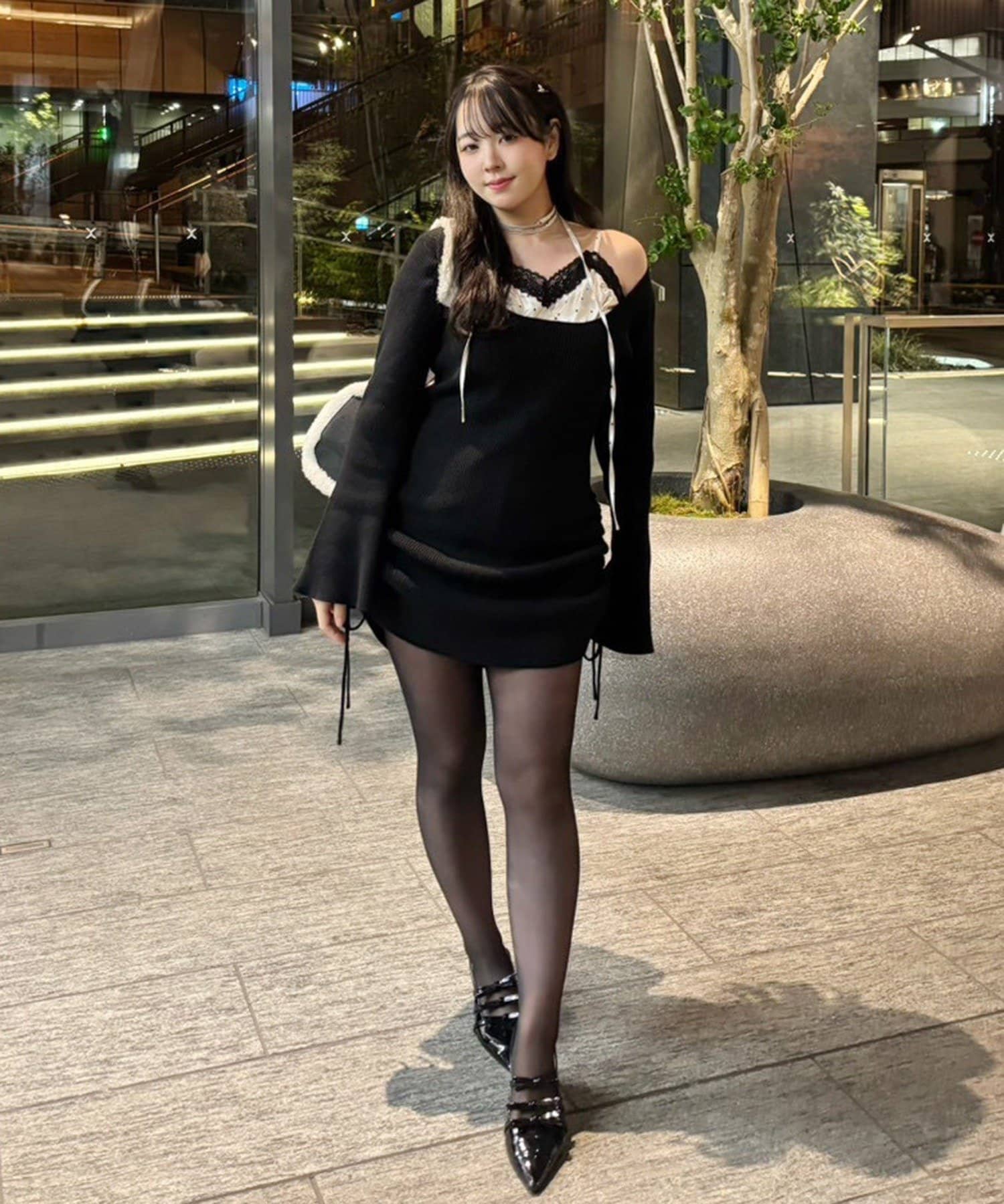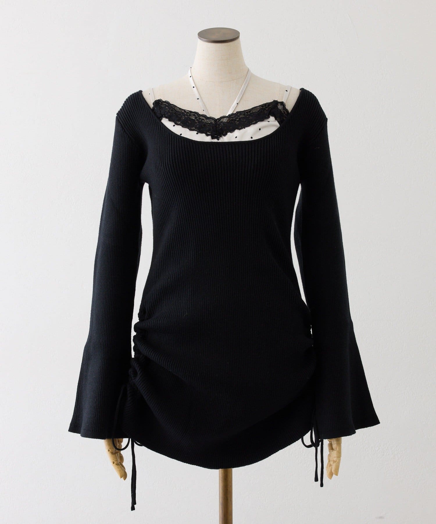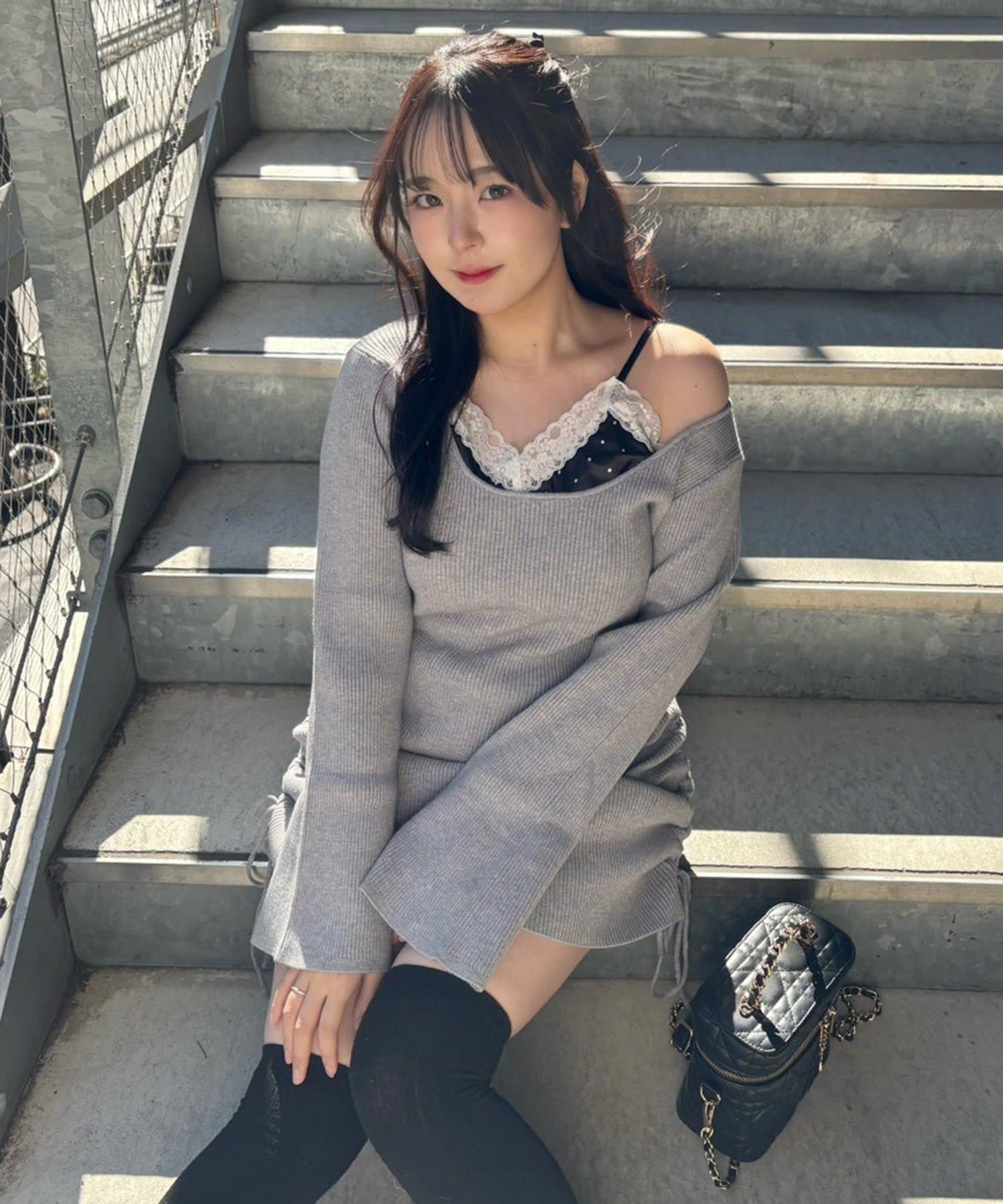【omiyu企画】レースサテンキャミSETニットミニワンピ
