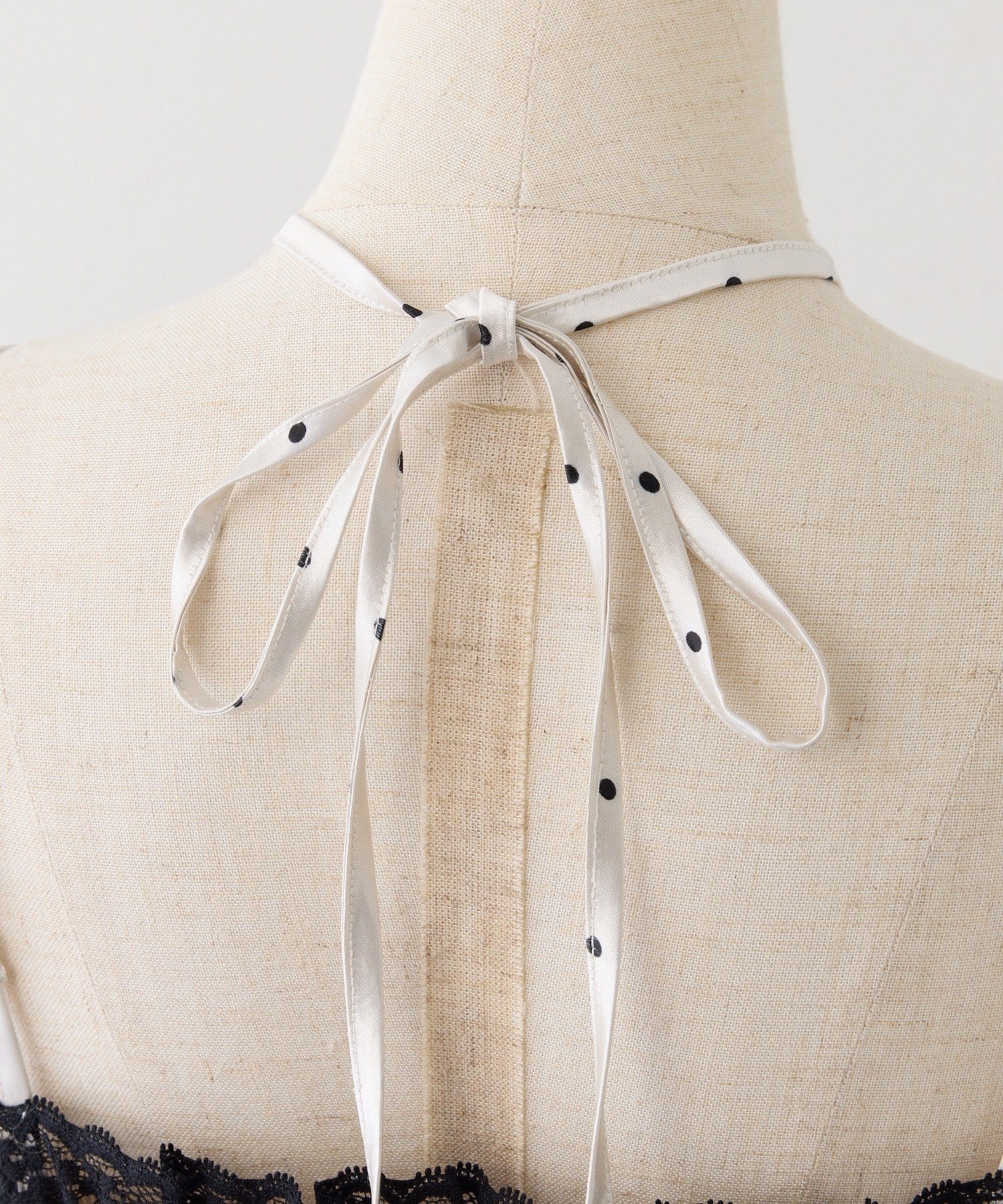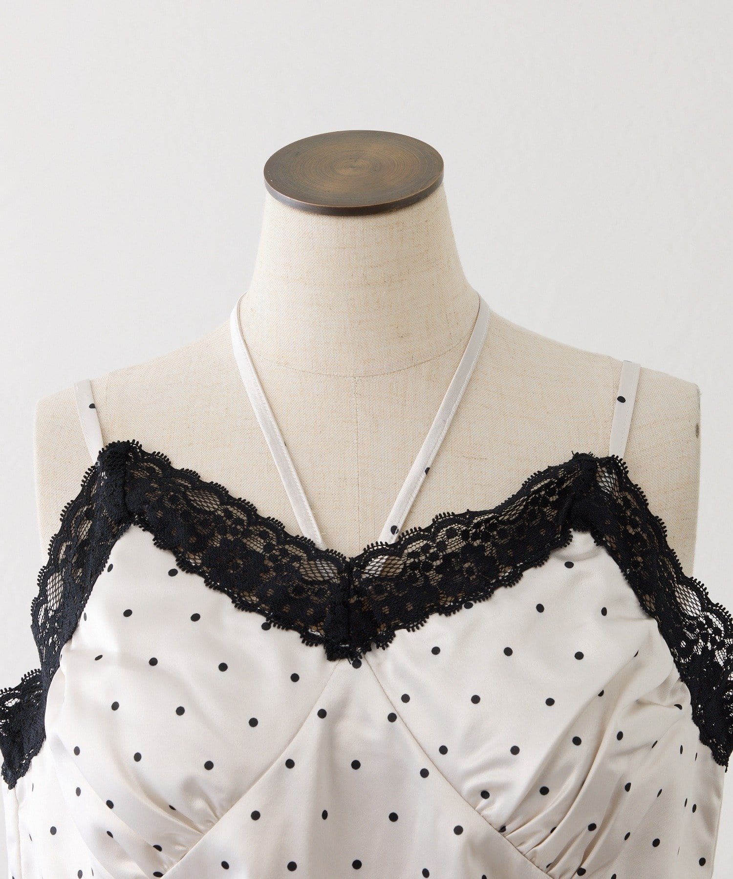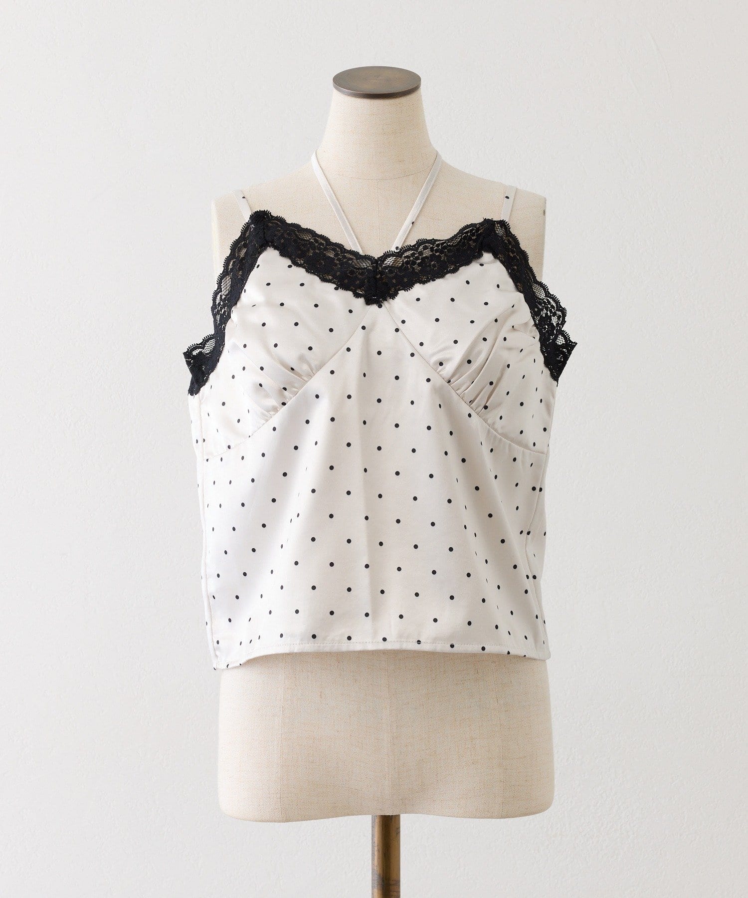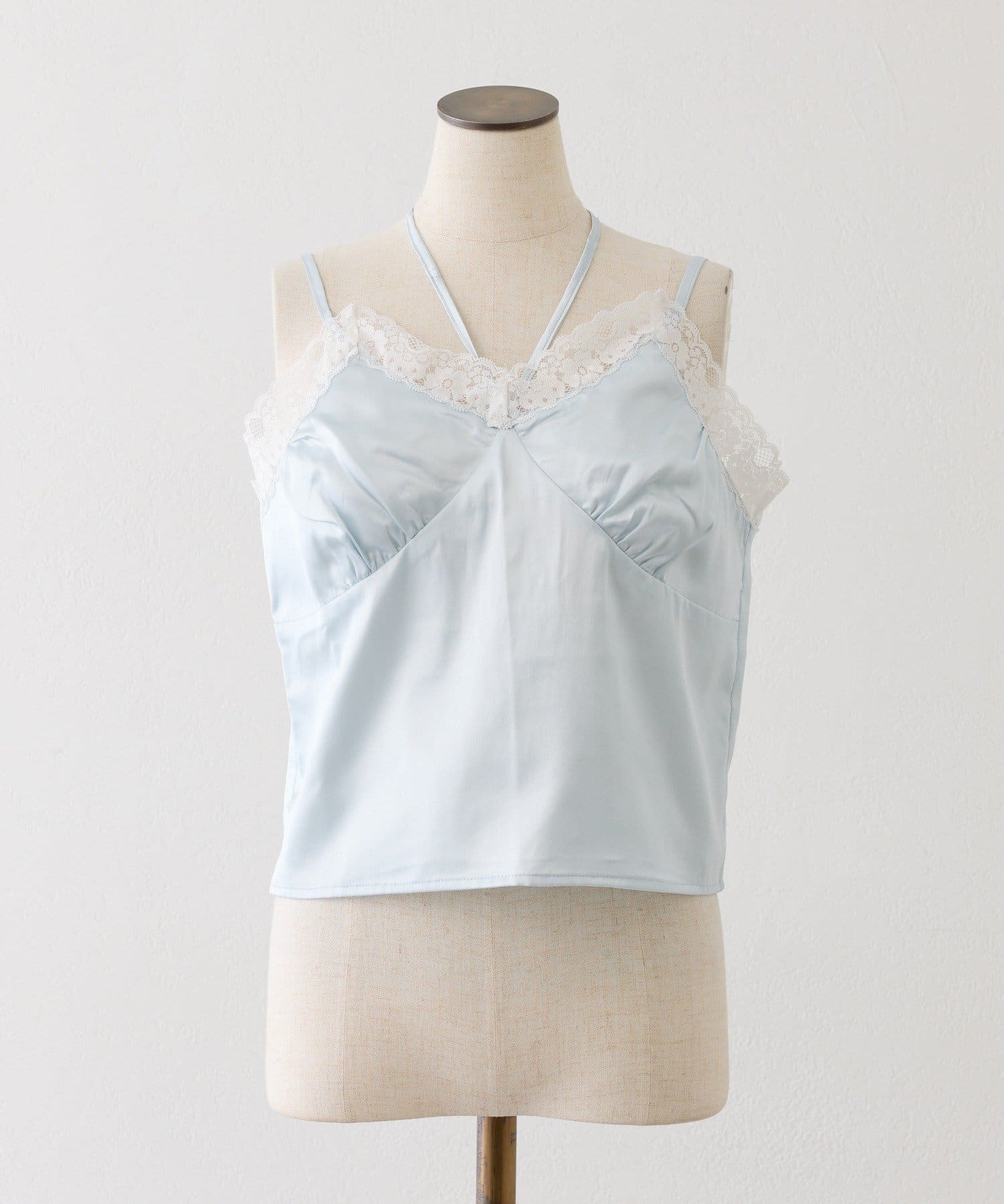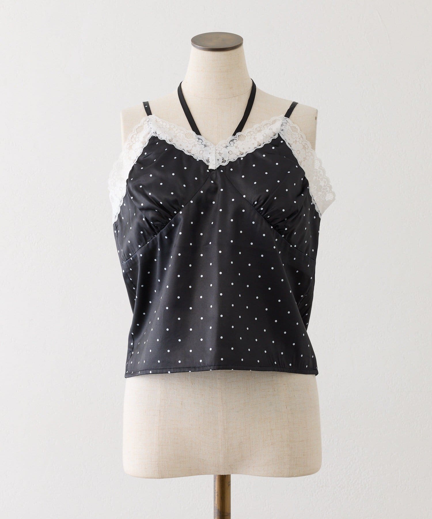 キャミはホルターネック仕様で、首元にさりげないアクセントをプラス。