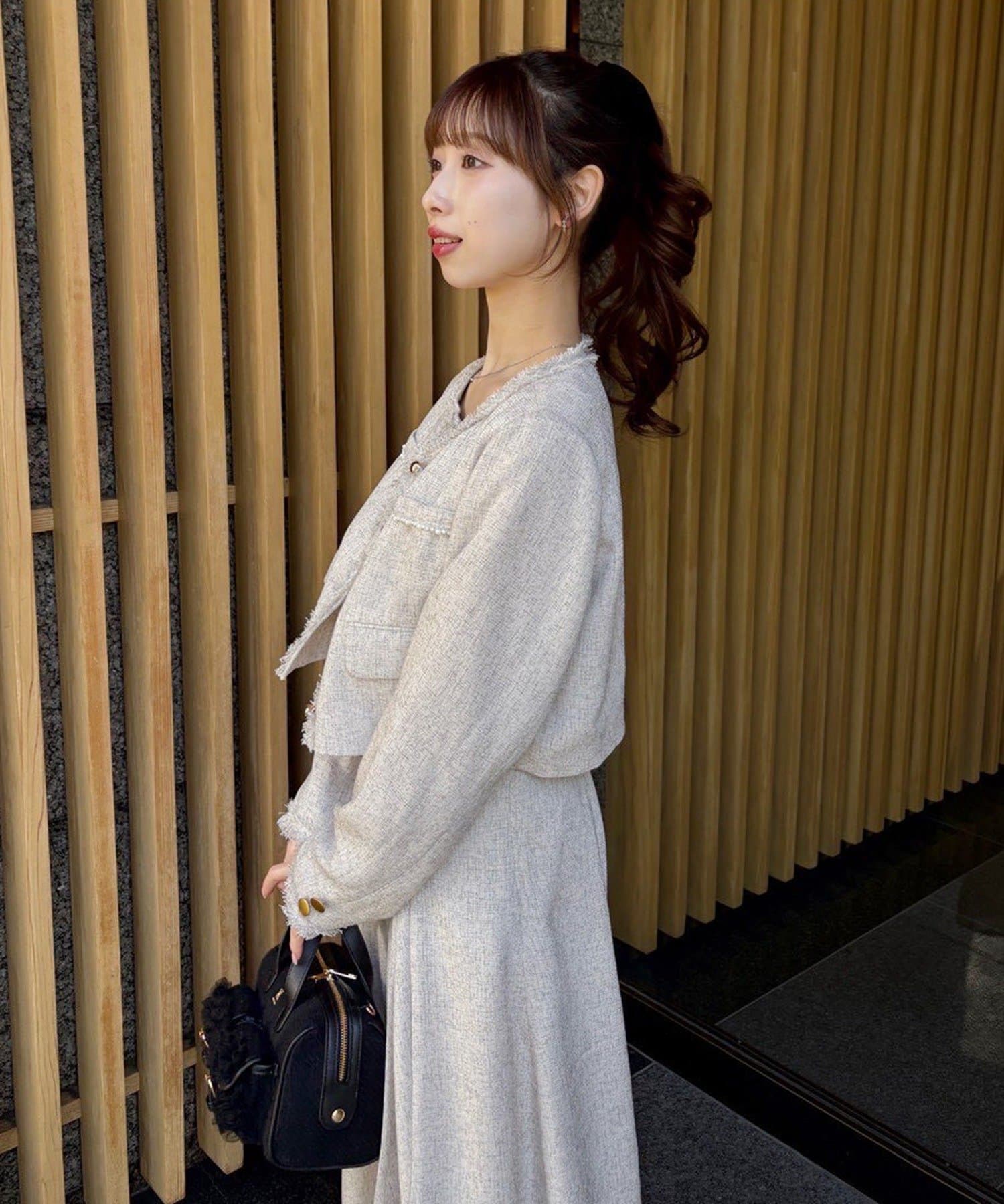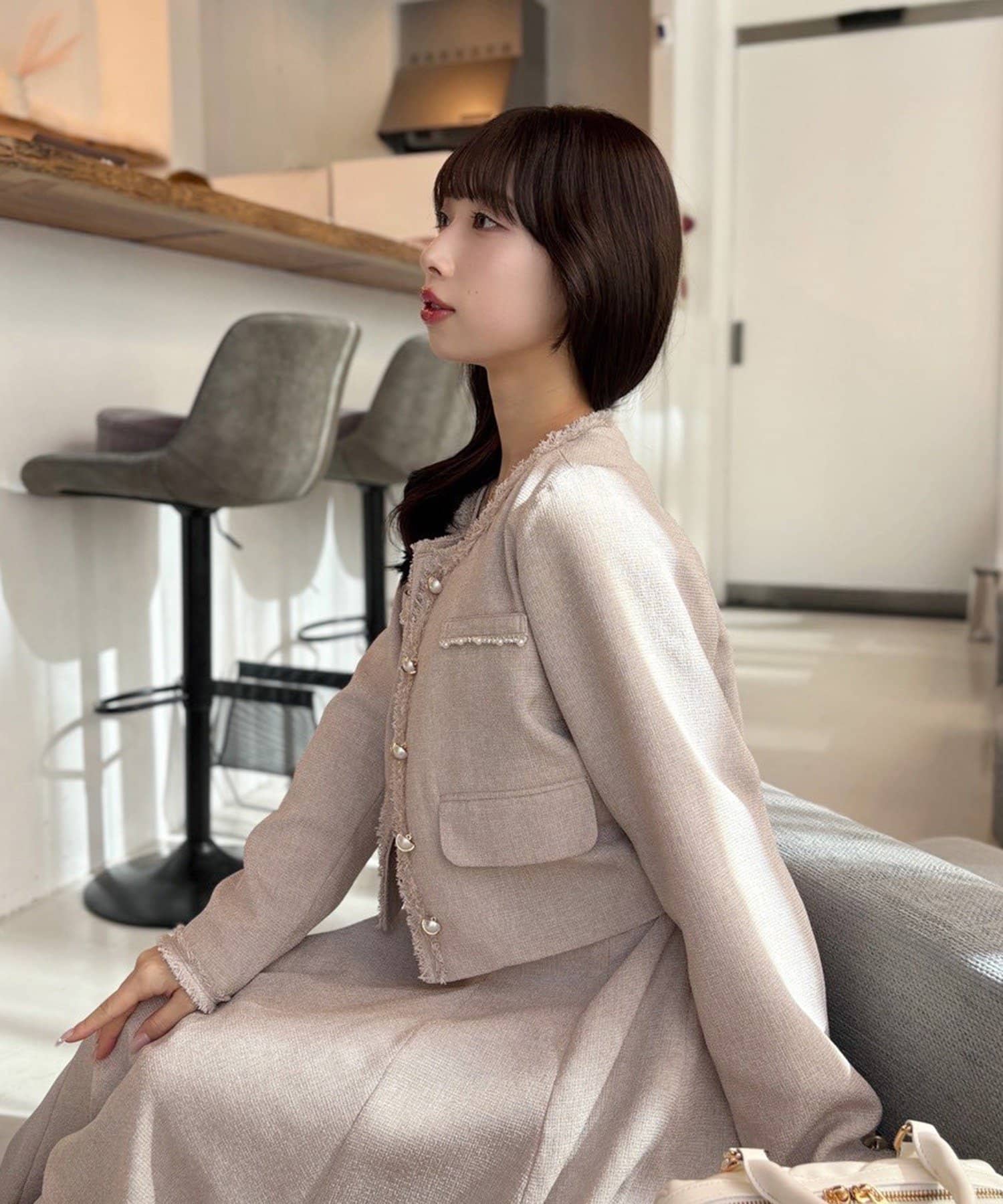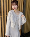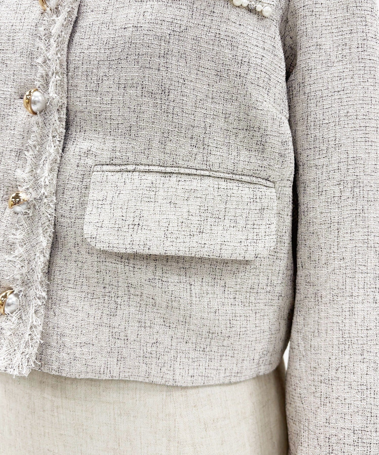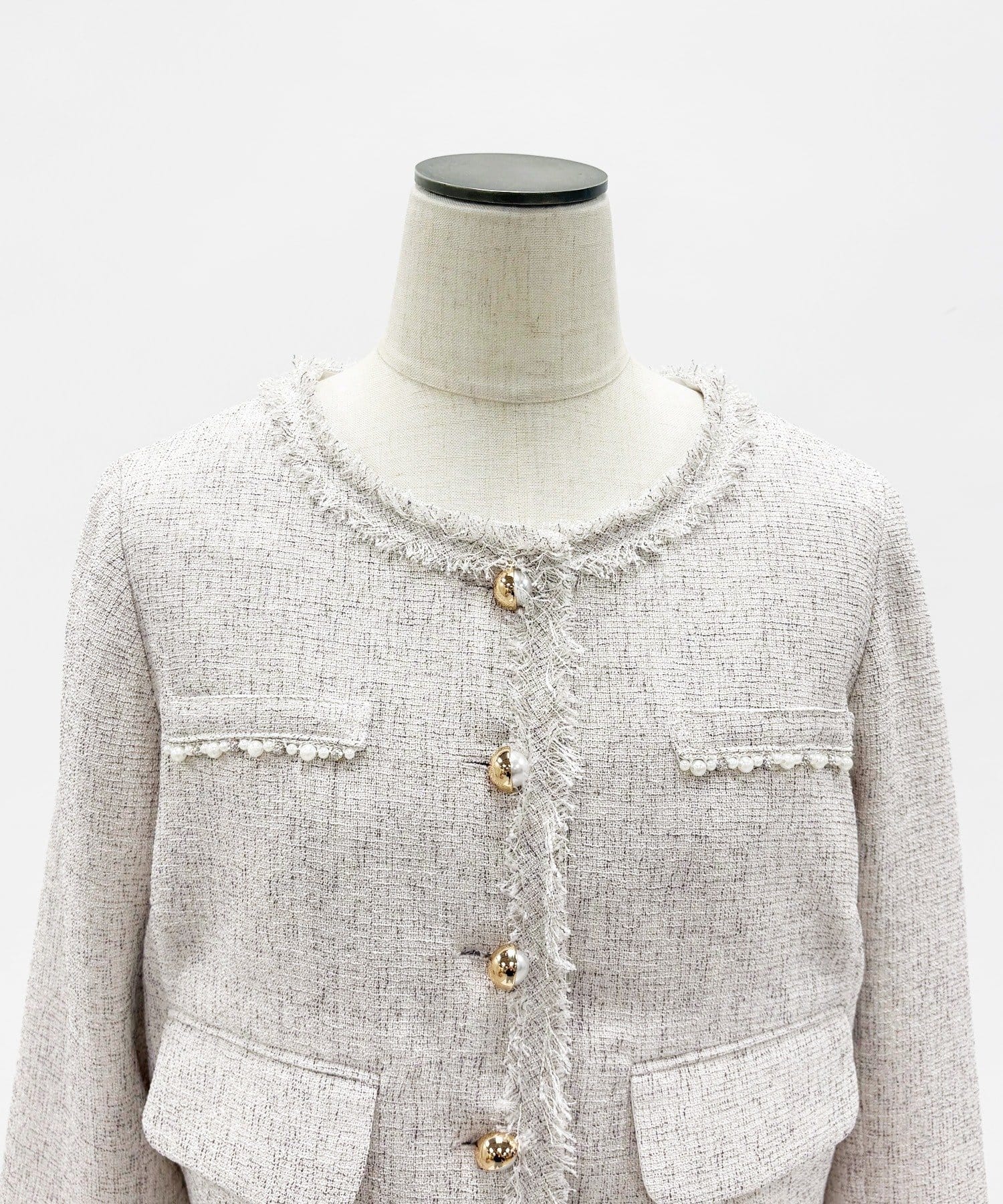 TOP > one after another NICE CLAUP > レディース > ジャケット/アウター > ノーカラージャケット > 【miyabi企画】パール釦ツイードノーカラージャケット