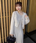 • one after another NICE CLAUP(ワンアフターアナザー ナイスクラップ) 【miyabi企画】パール釦ツイードノーカラージャケット