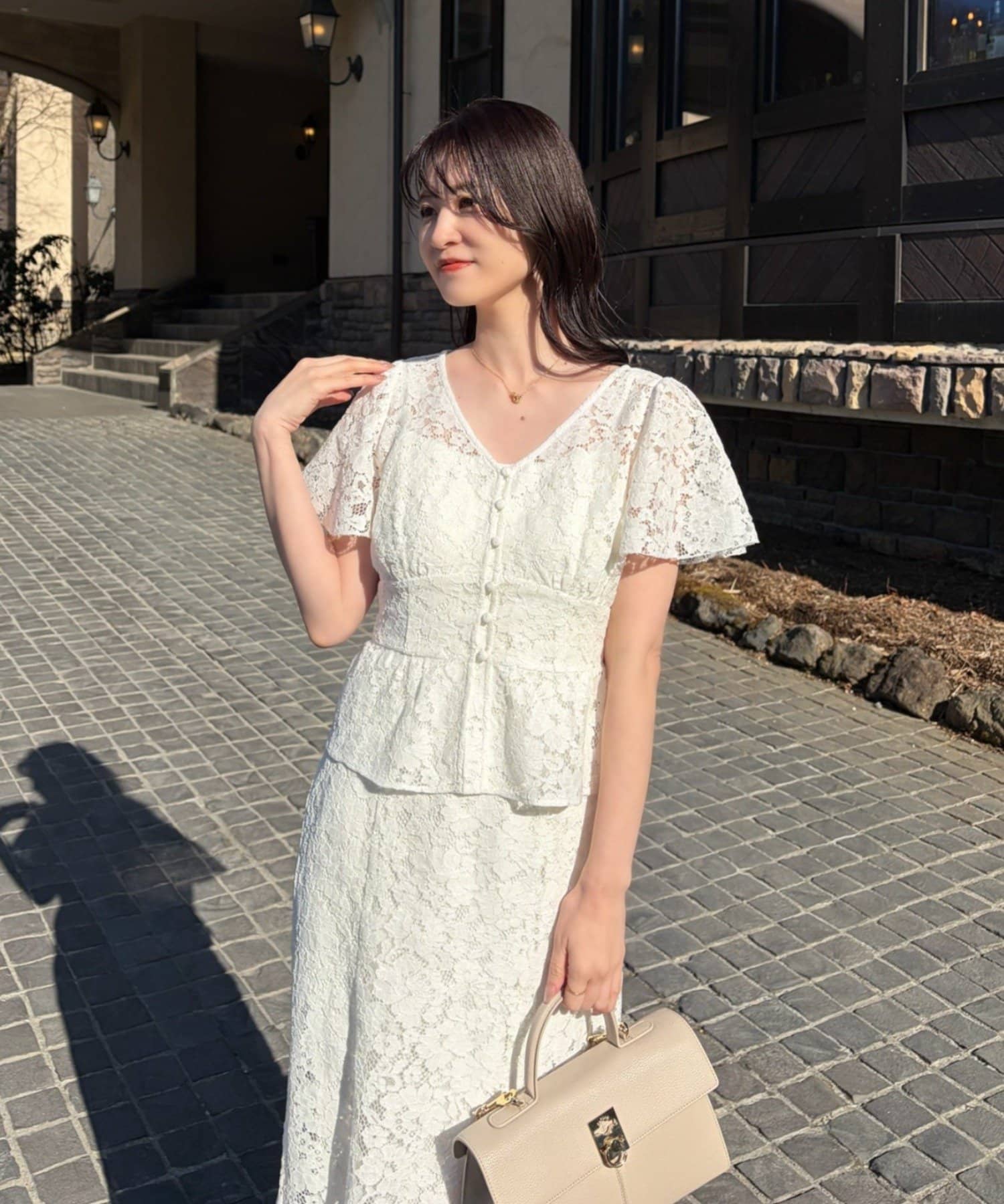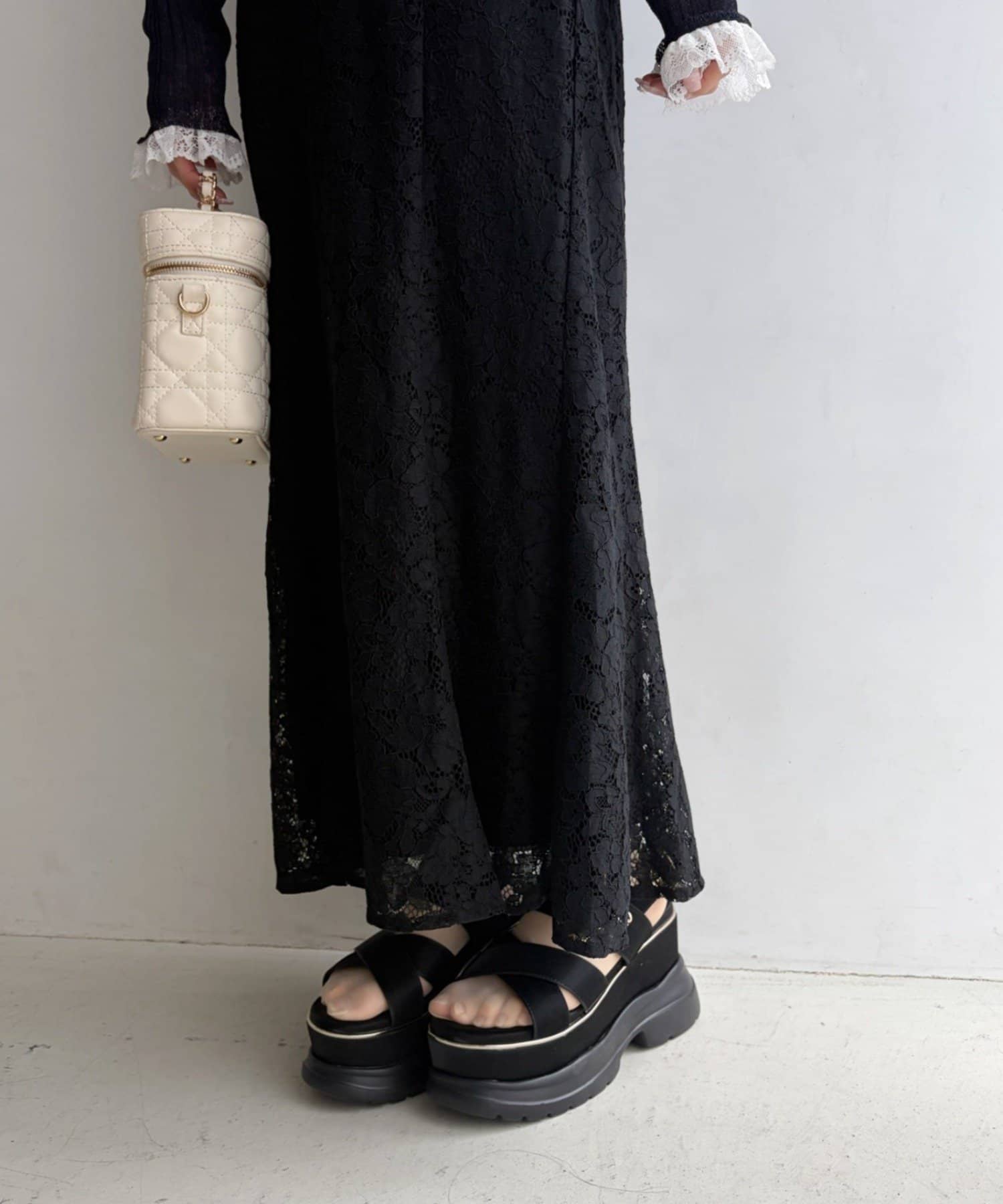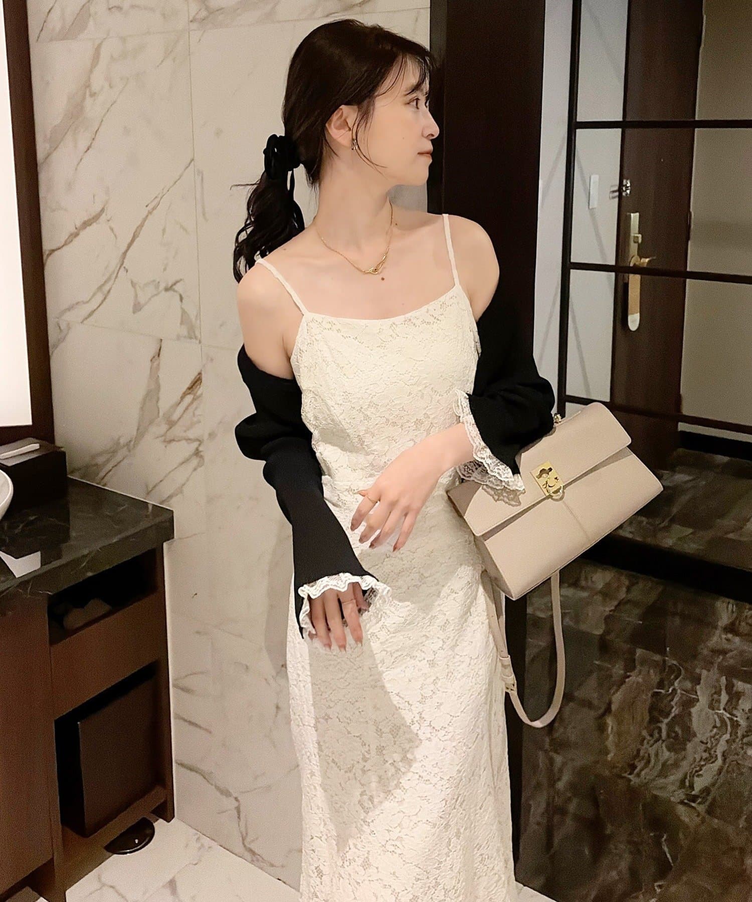 品番 0161180510 素材 【アイボリー/ブラック】表地:コットン55% ナイロン45% 裏地:ポリエステル100% 【ホワイト系】表地:レーヨン85% ポリエステル15% 裏地:ポリエステル100% レース:ナイロン92% ポリウレタン8%