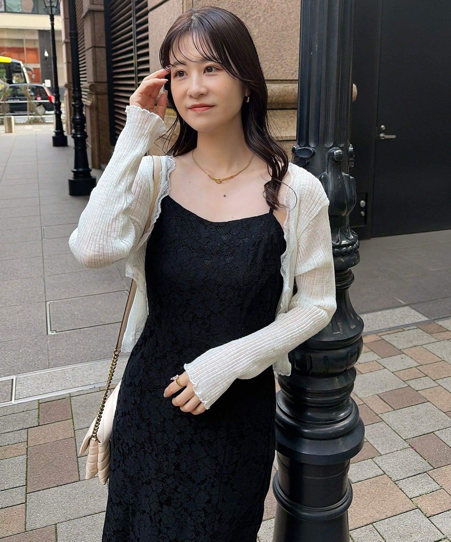 カーディガンやジャケットを羽織って、きれいめカジュアルな着こなしも◎。