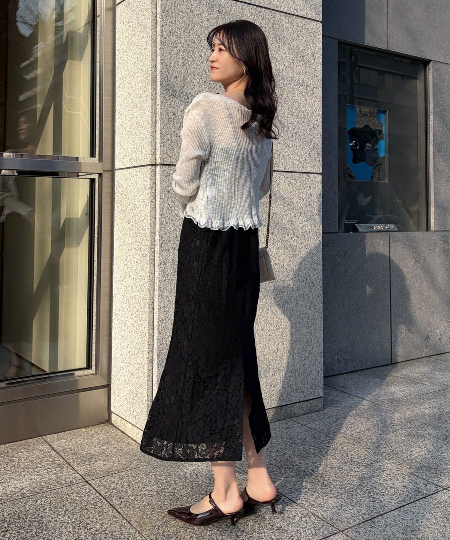 サンダルやミュールを合わせて、女性らしいスタイリングに仕上げるのもおすすめです。