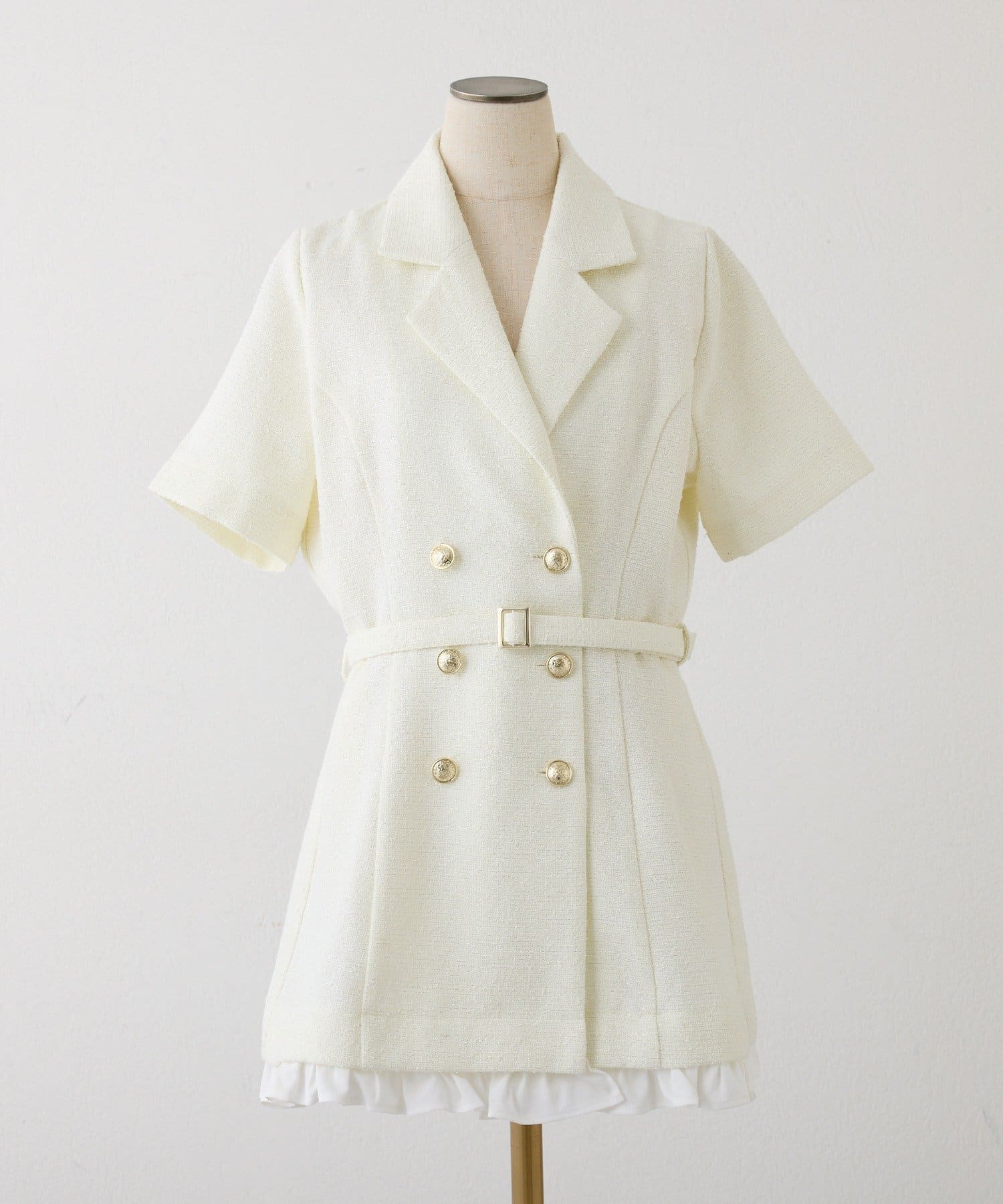 ダブルボタンデザインがポイントのミニジャケットワンピース。