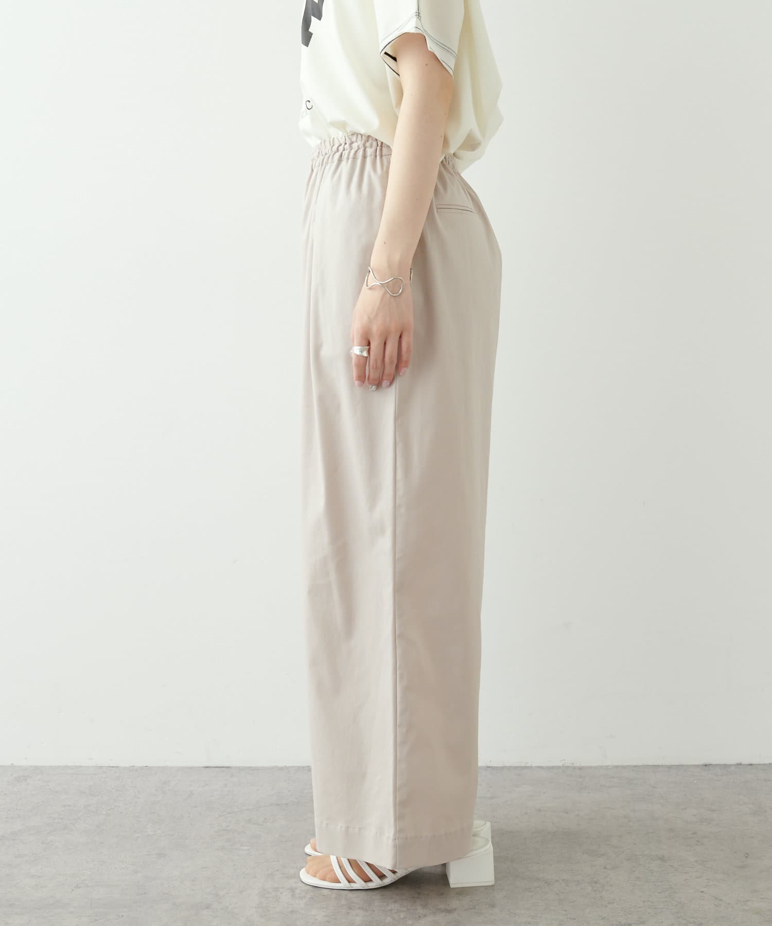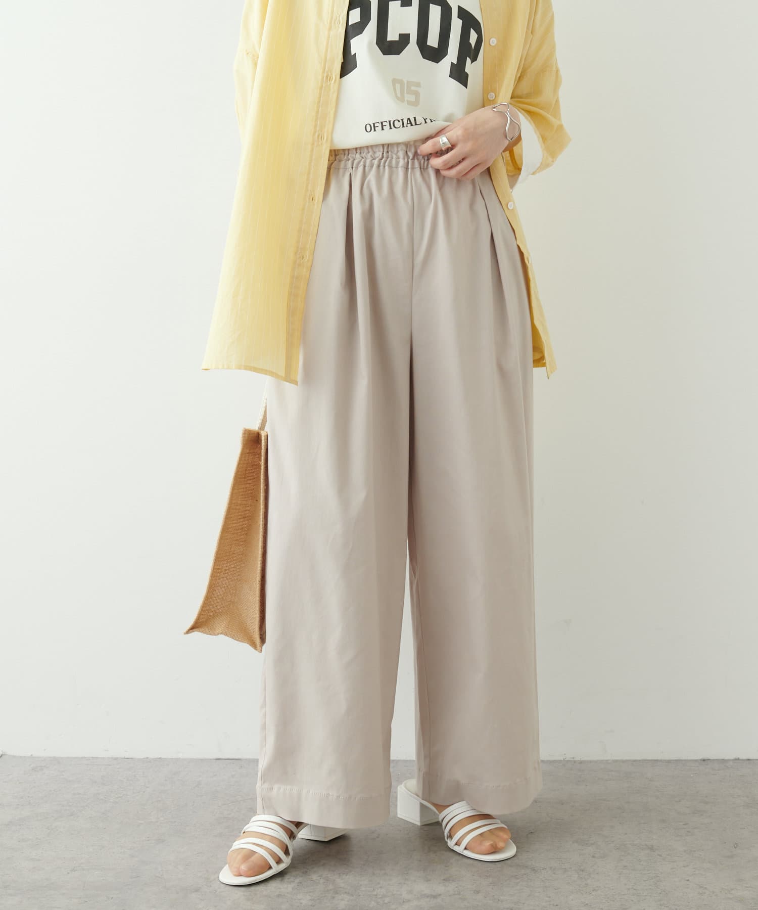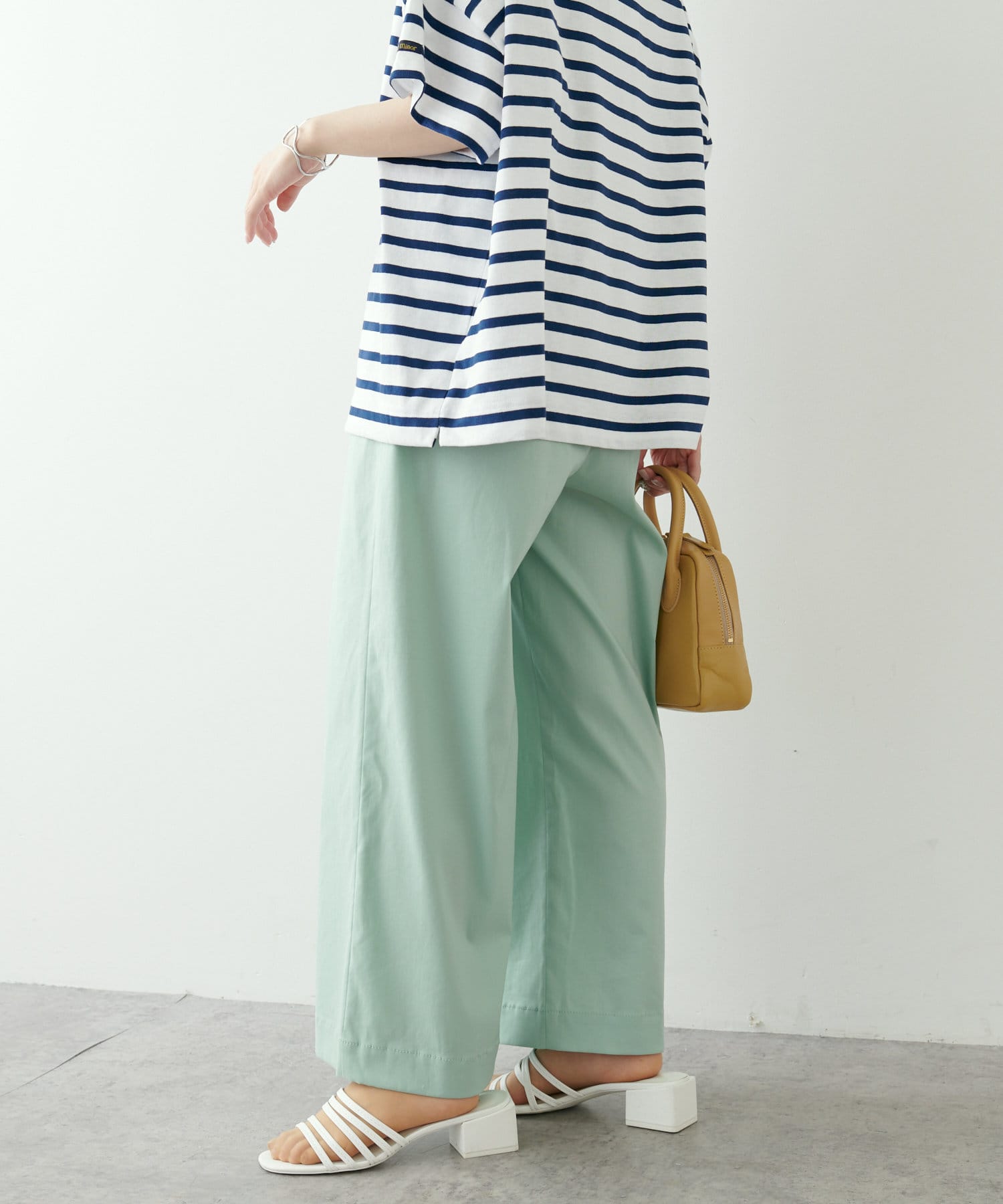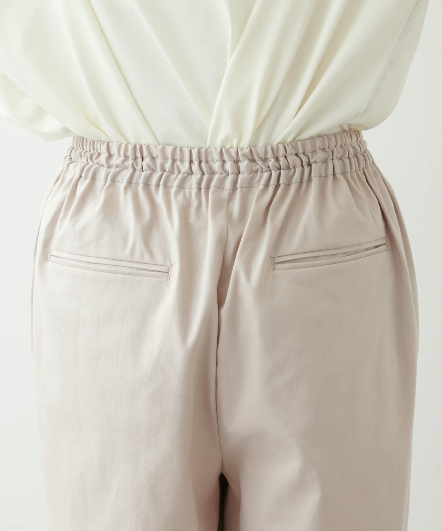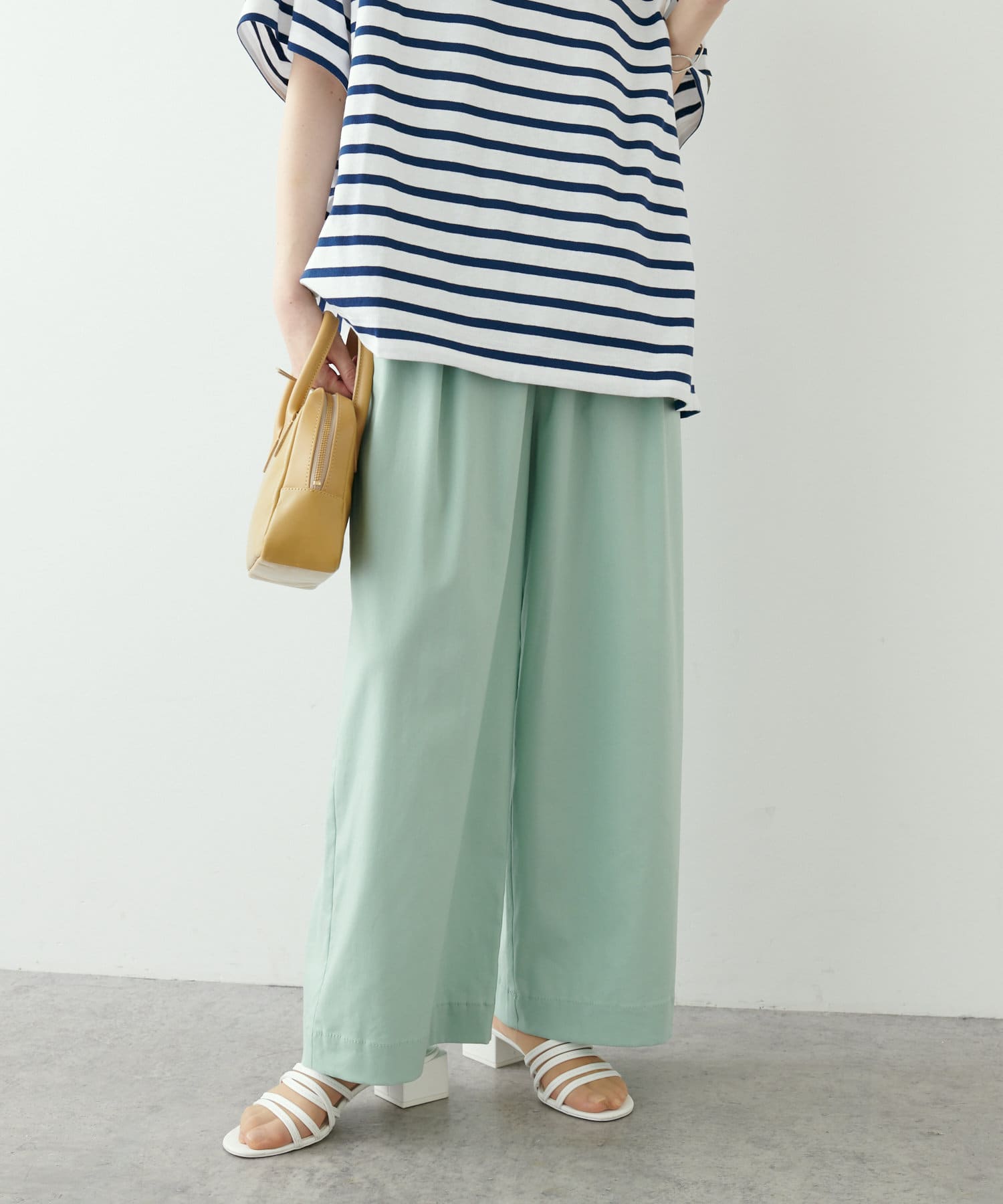 ポリエステル×リネン素材で、さらりと綺麗見えしつつ、ドライタッチでシーズンムード高まるストレートパンツ。