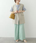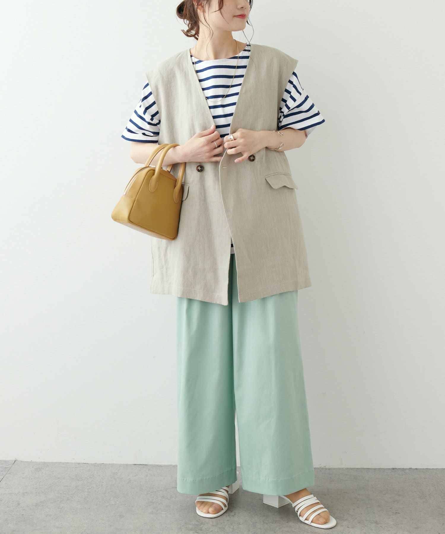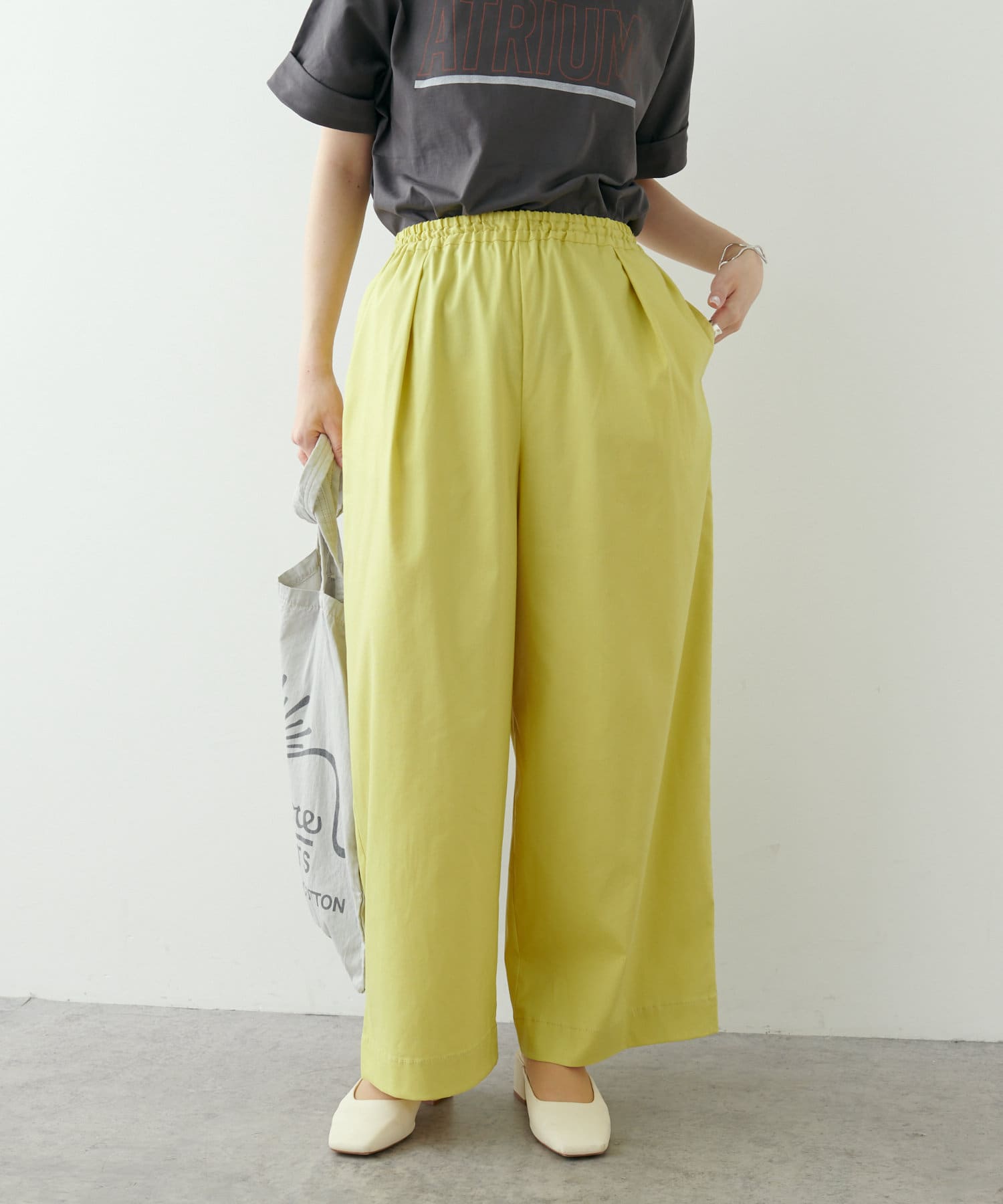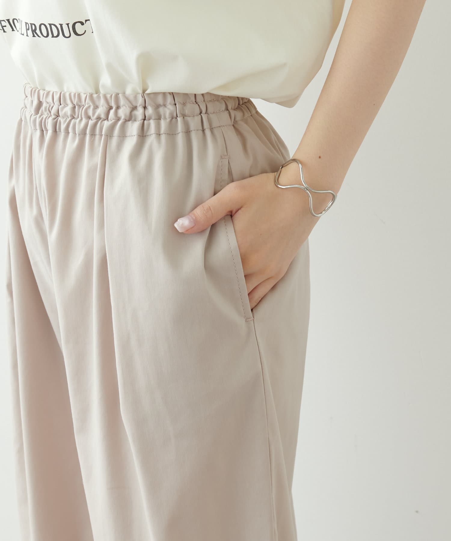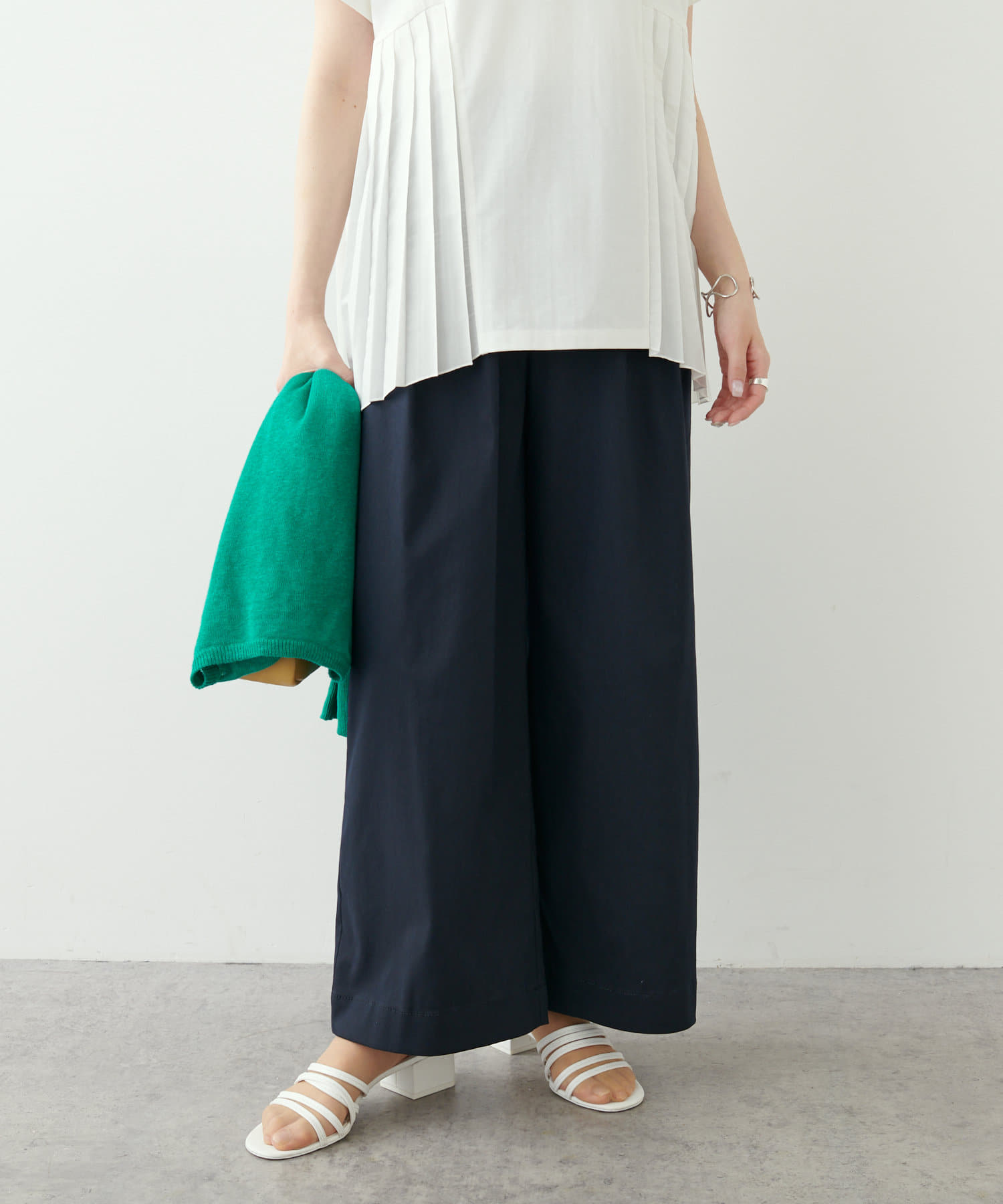 ポリエステル×リネン素材で、さらりと綺麗見えしつつ、ドライタッチでシーズンムード高まるストレートパンツ。