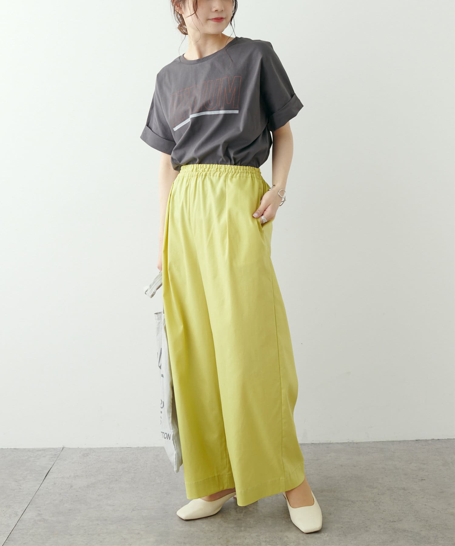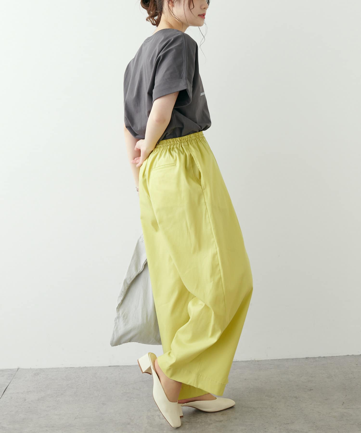 総ゴム仕様のウエストとヒップ周りにゆとりを持たせたデザインで、イージーな着心地を叶えます。