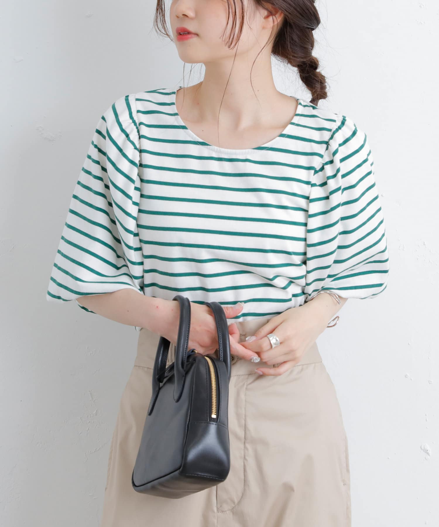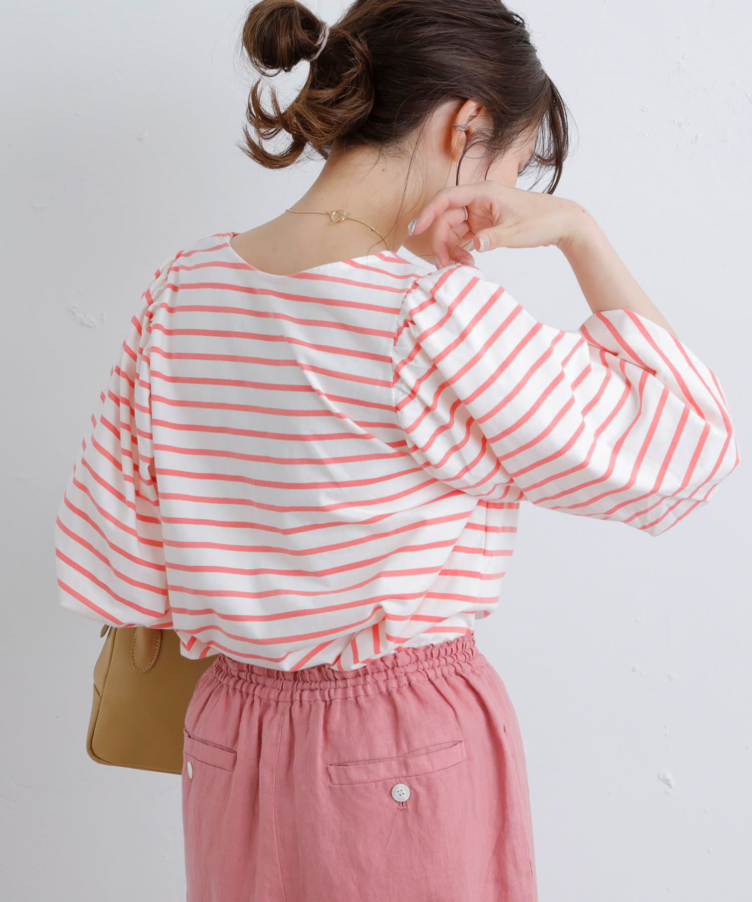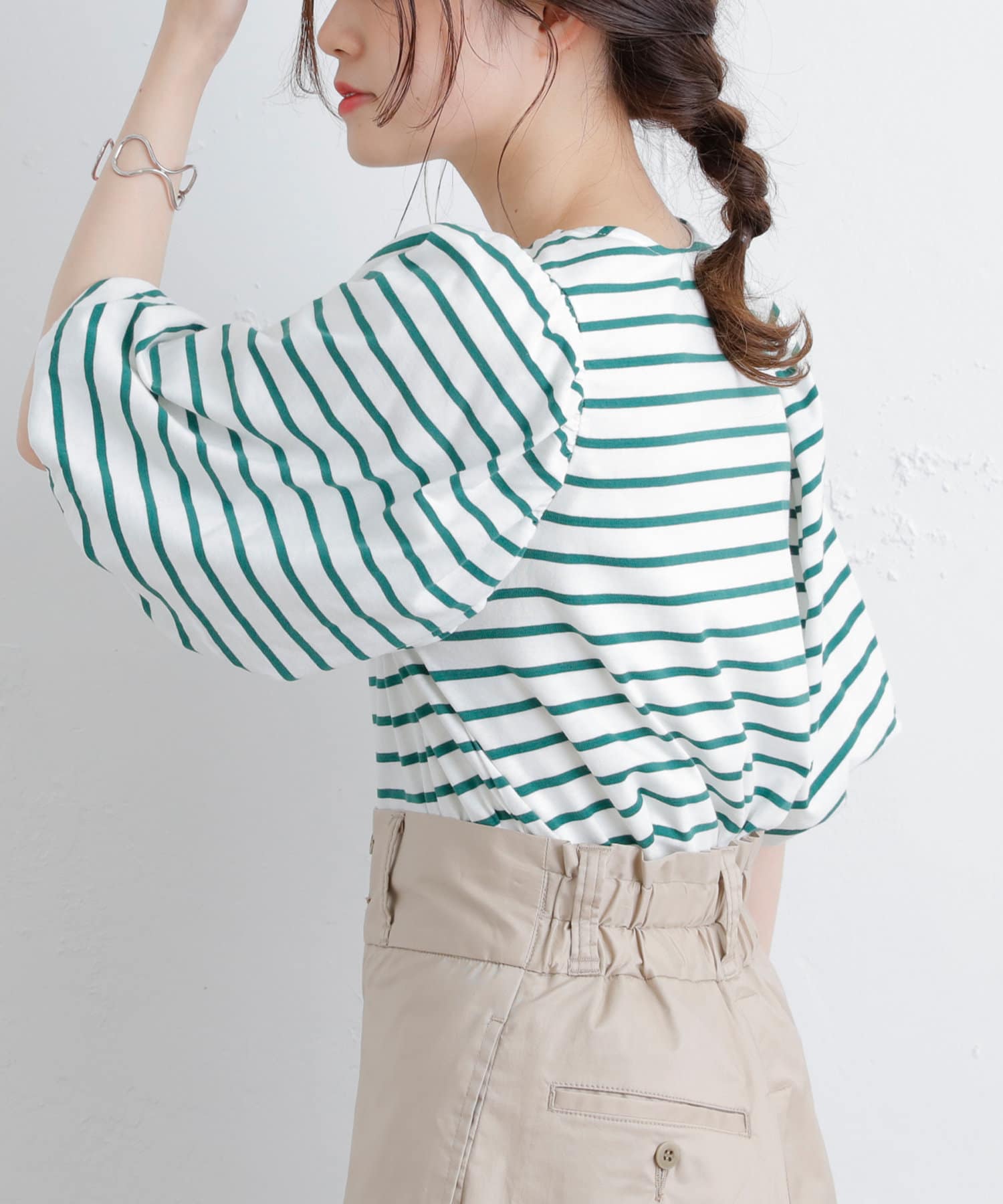 【Du noir】ボーダーボリュームスリーブTシャツ