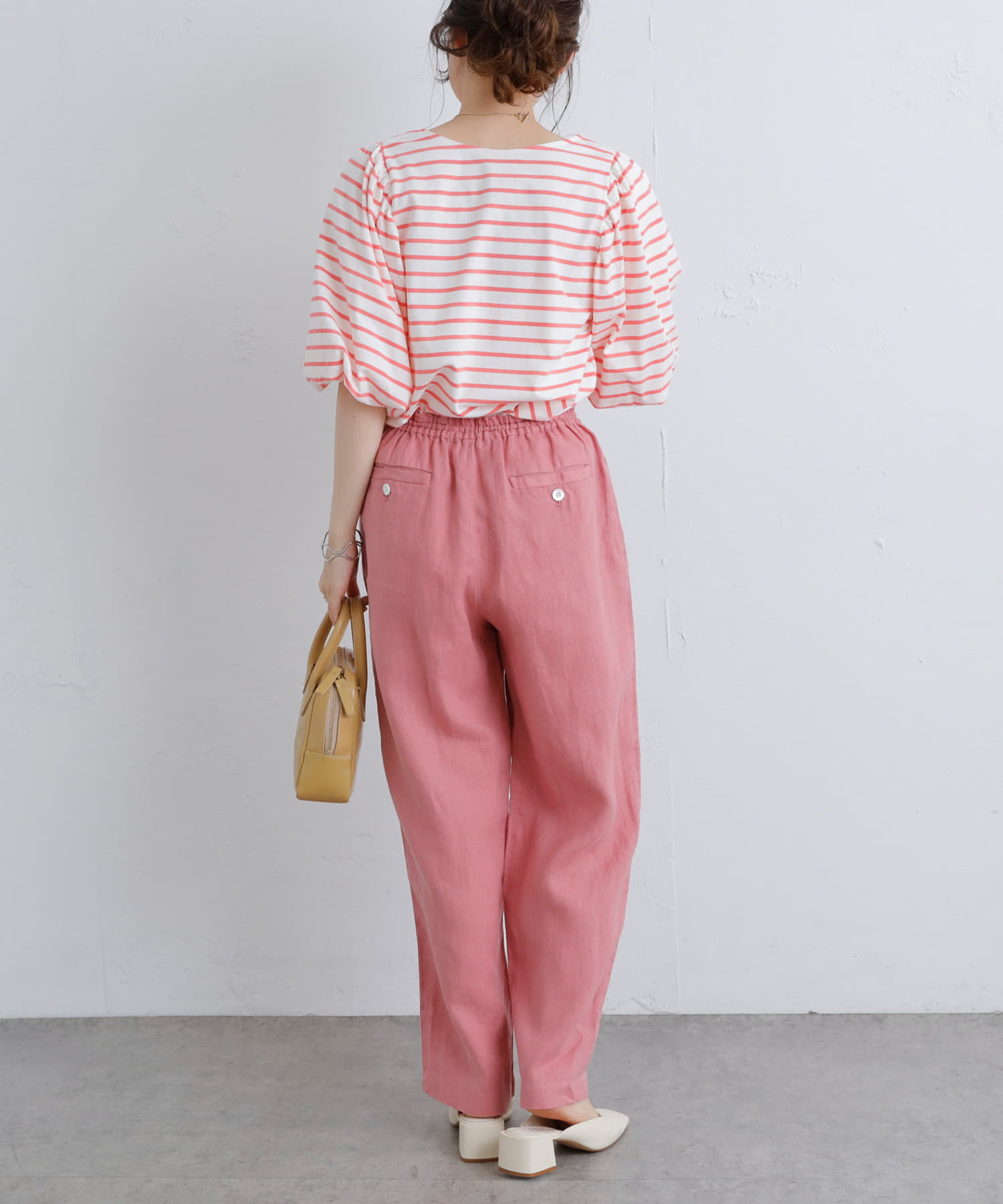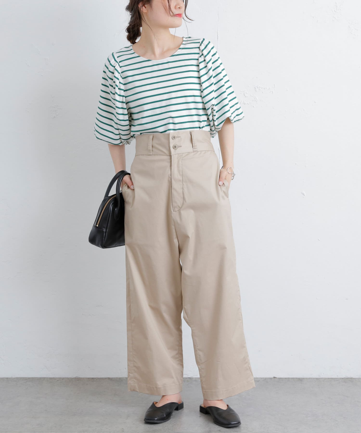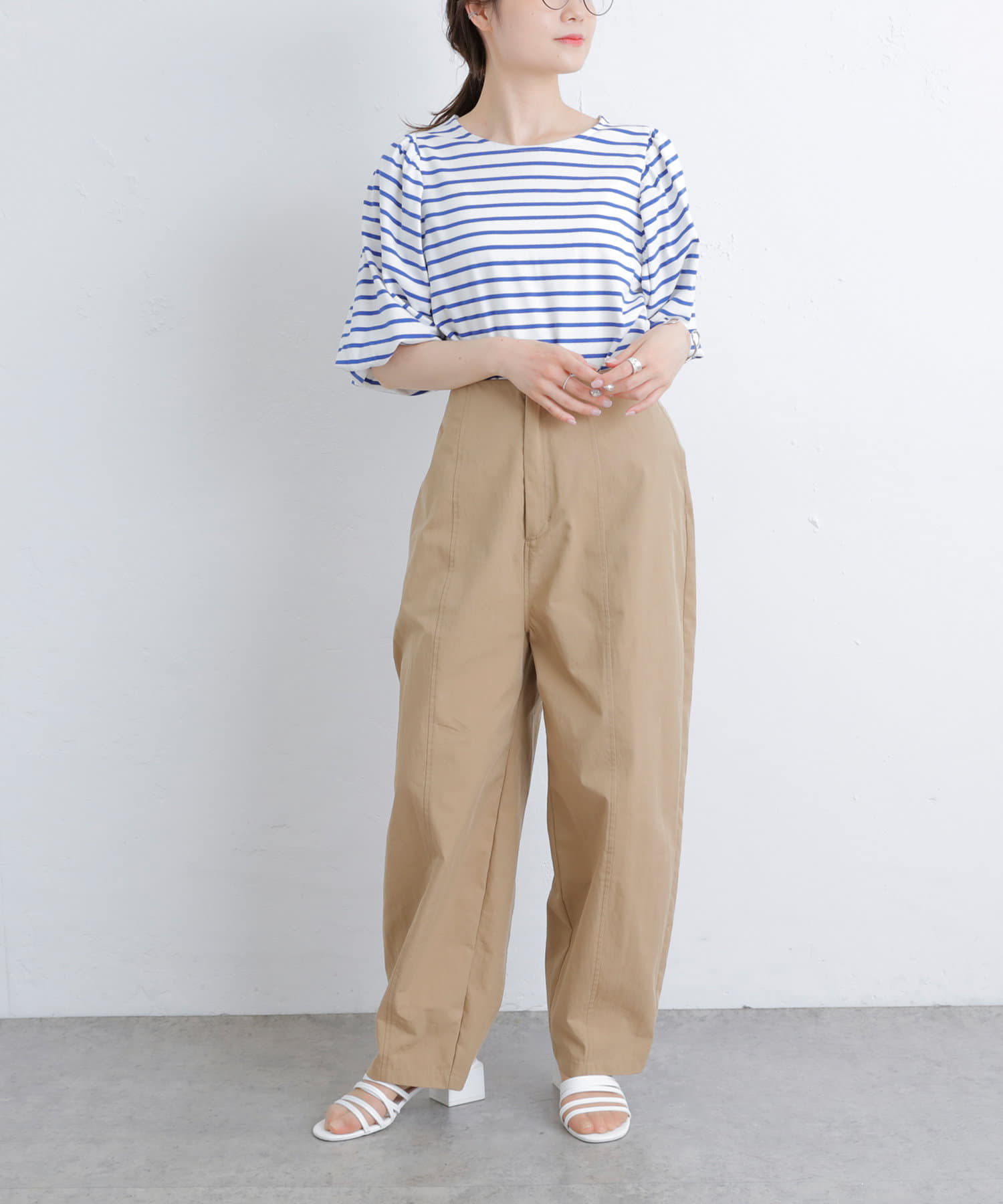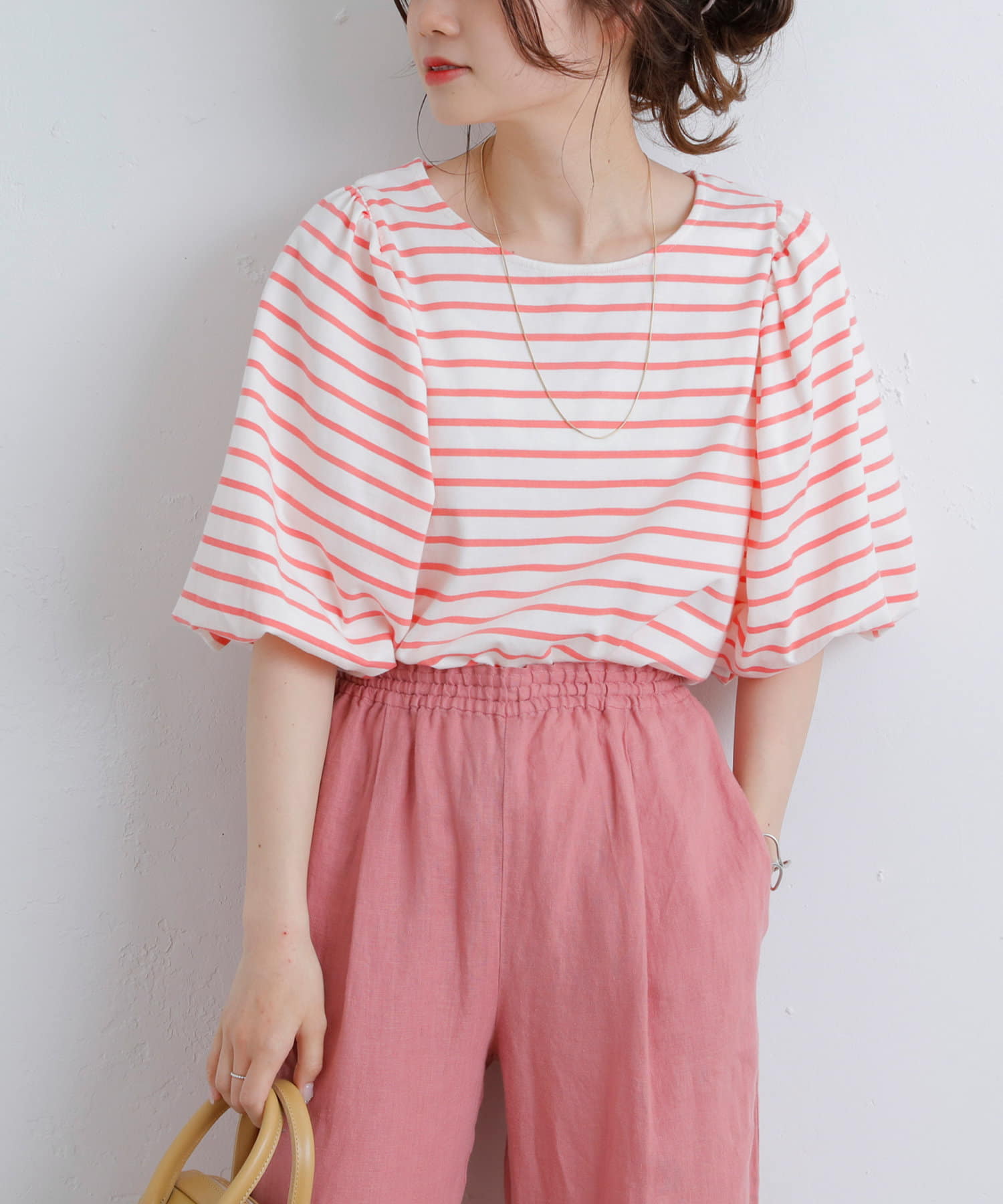 【Du noir】ボーダーボリュームスリーブTシャツ